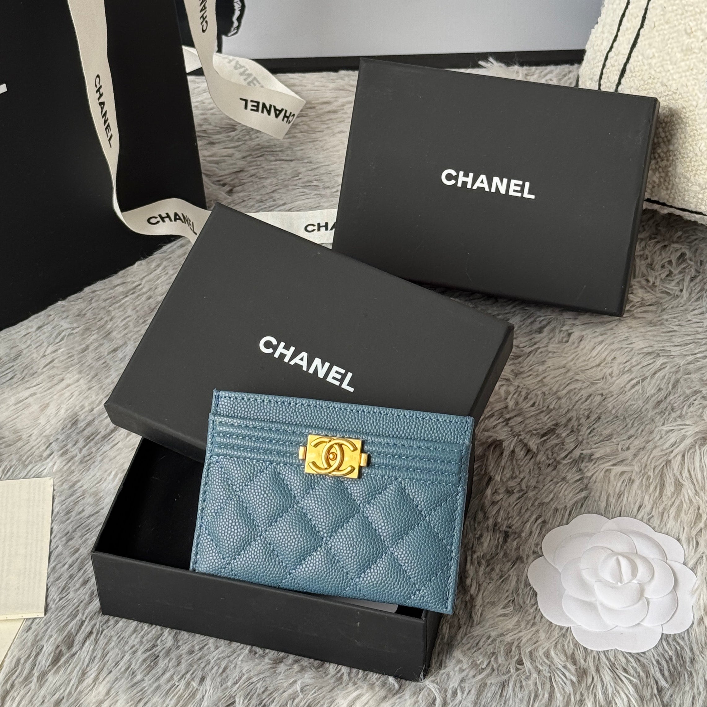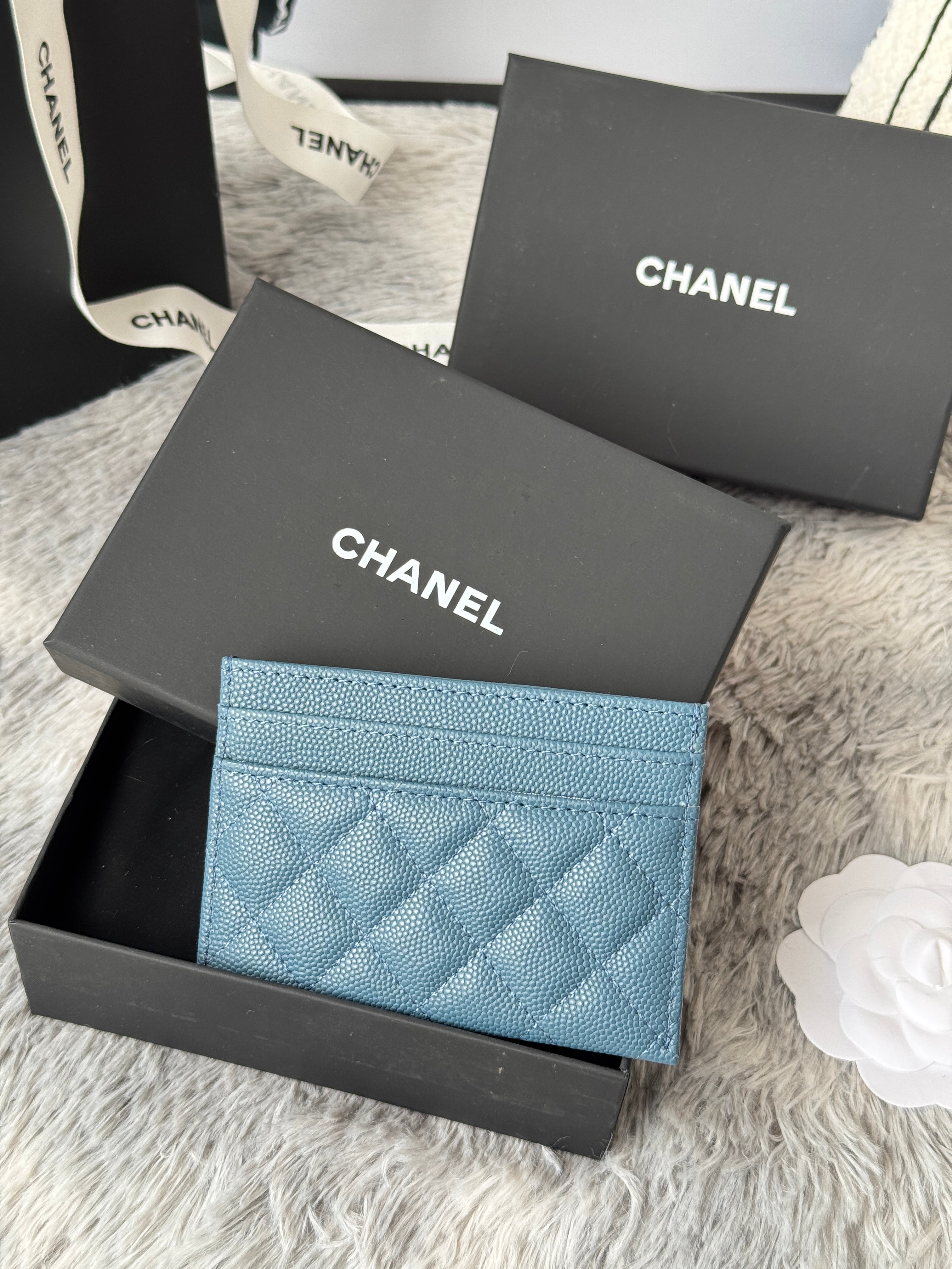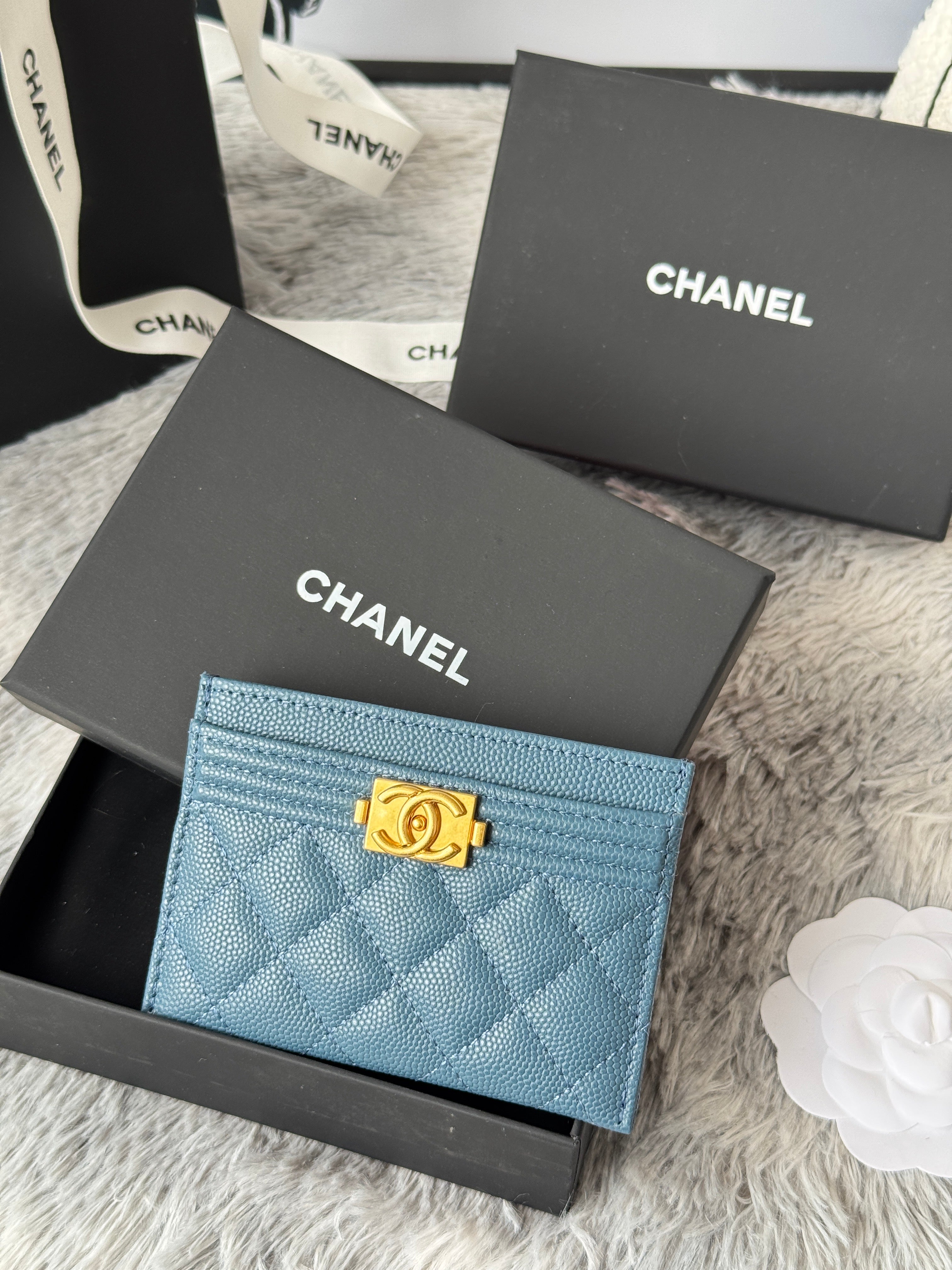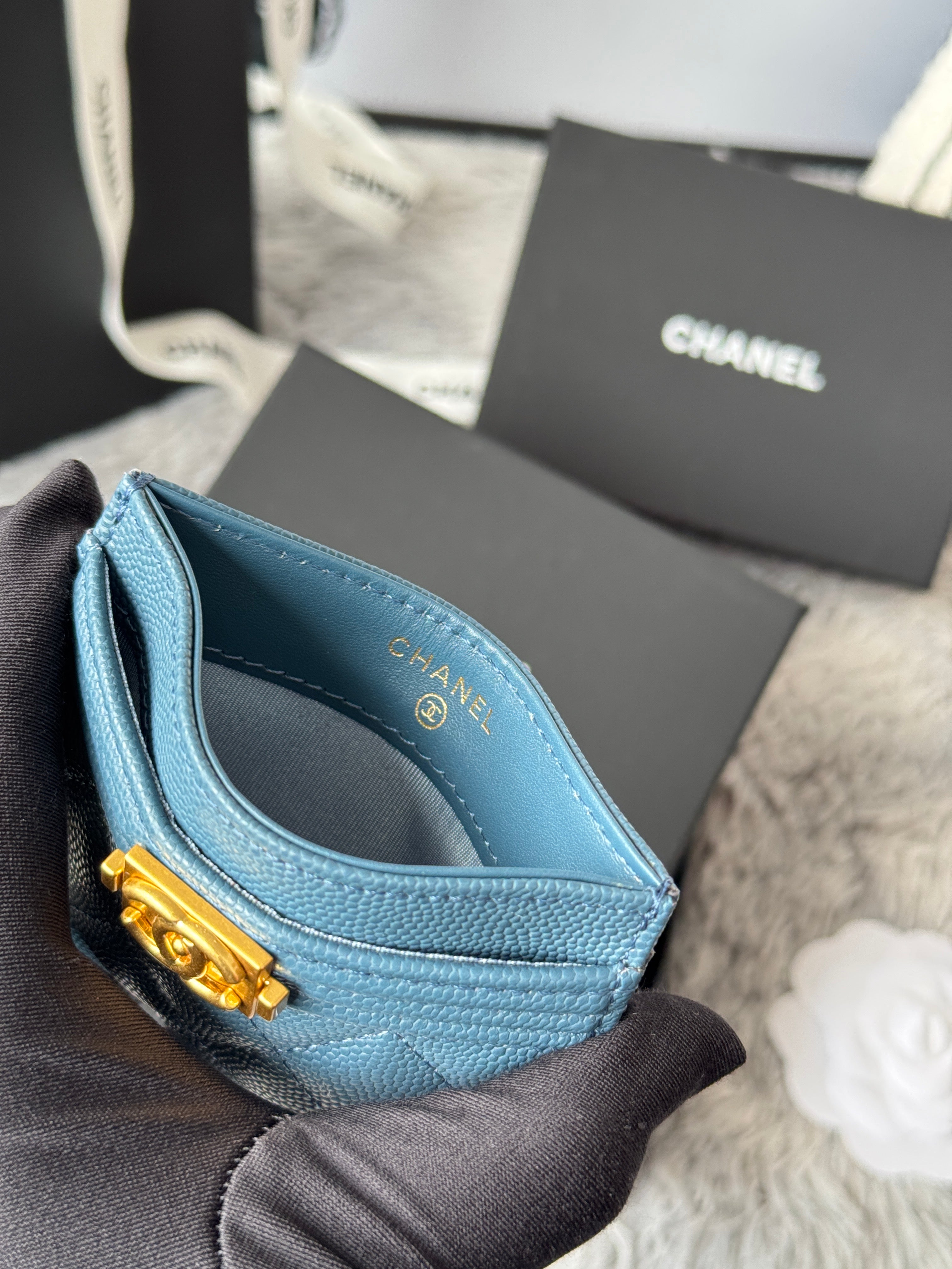 LEBOY CARD HOLDER 11 IN NEPAL BLUE GRAINED CALFSKIN GOLD-TONE HARDWARE