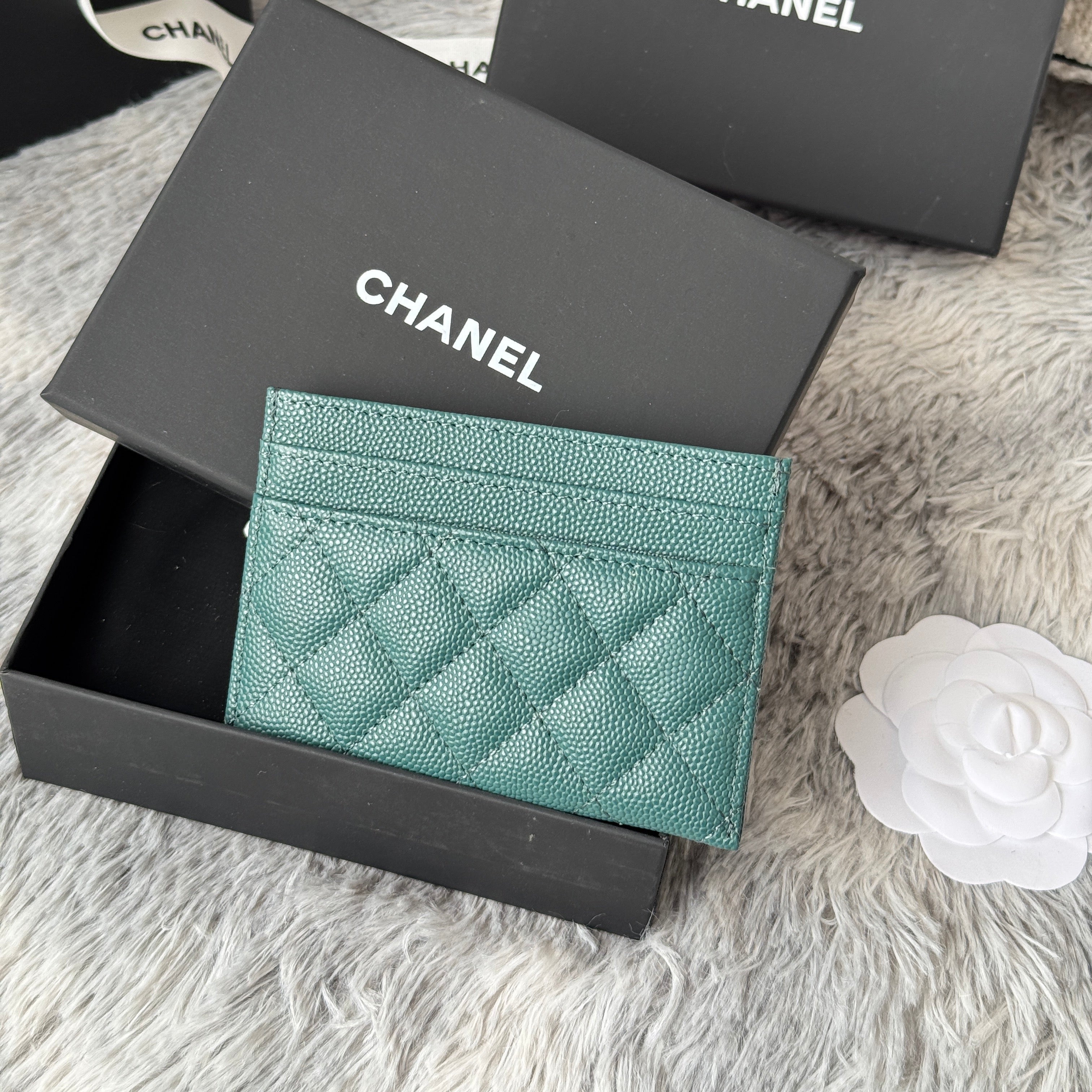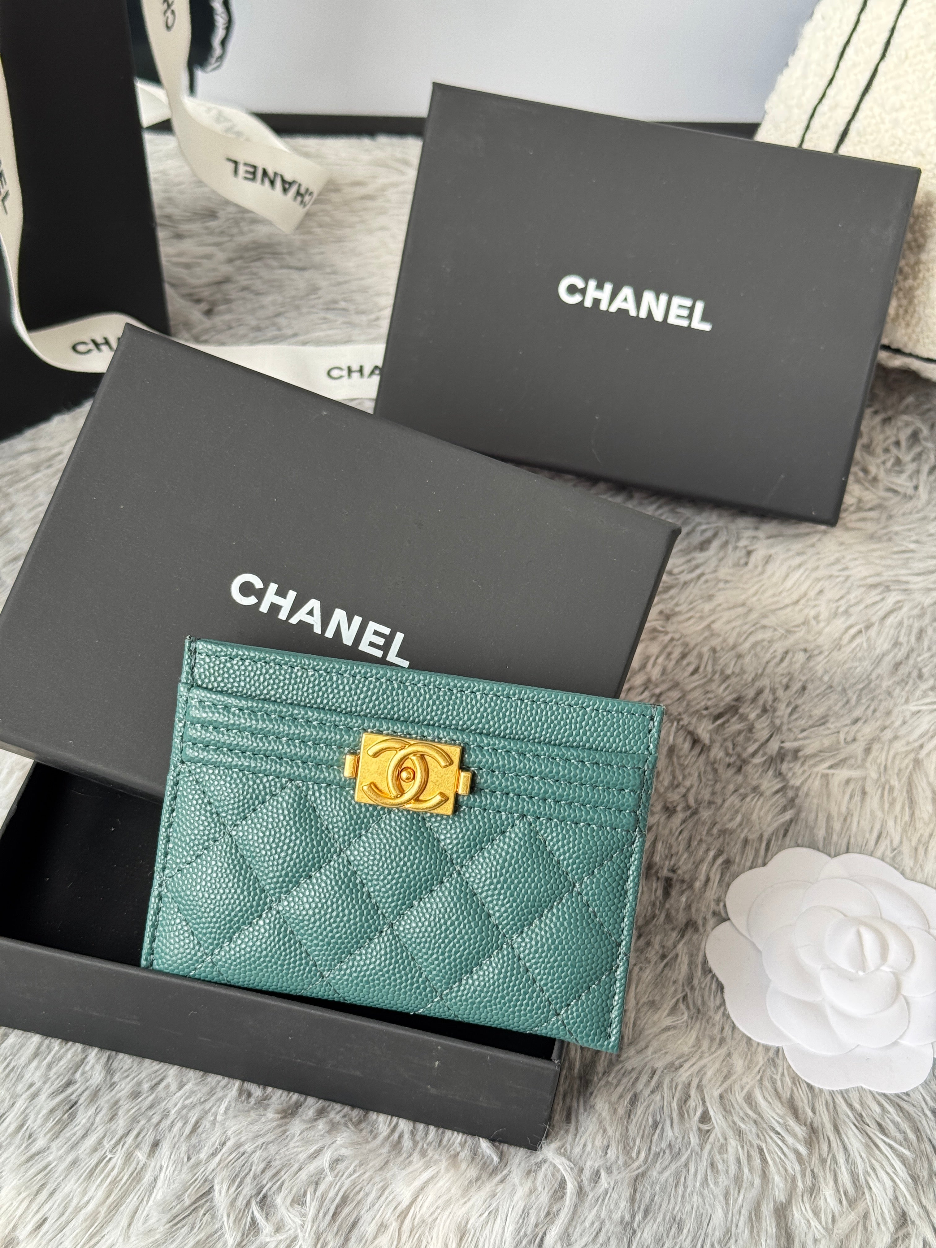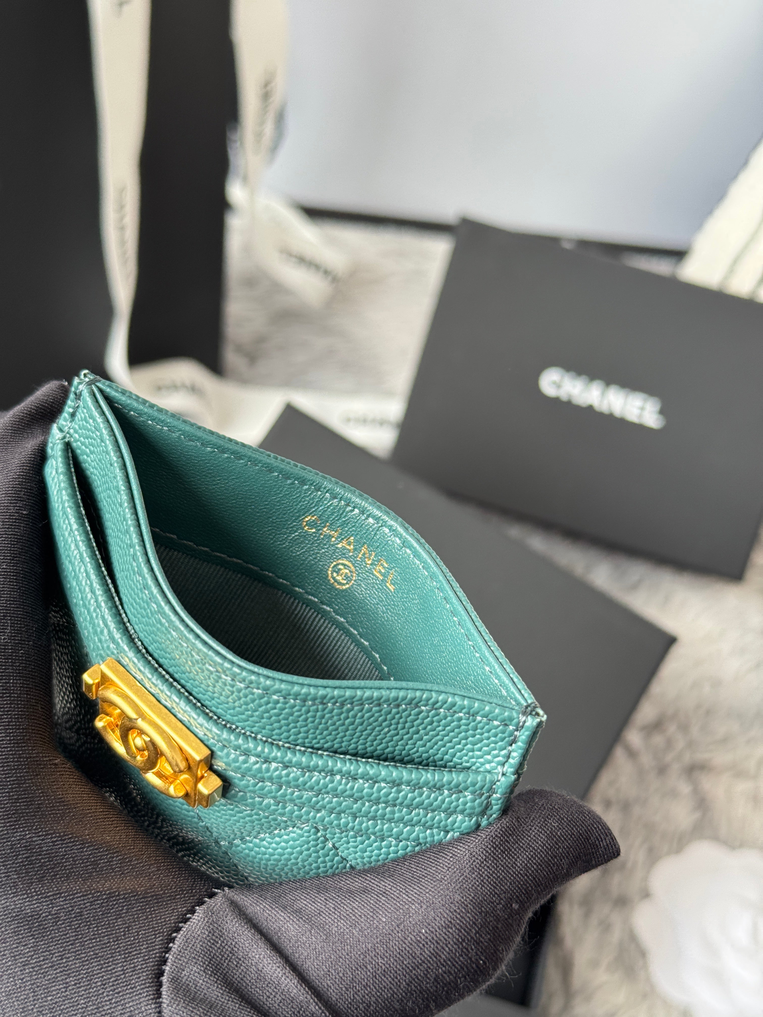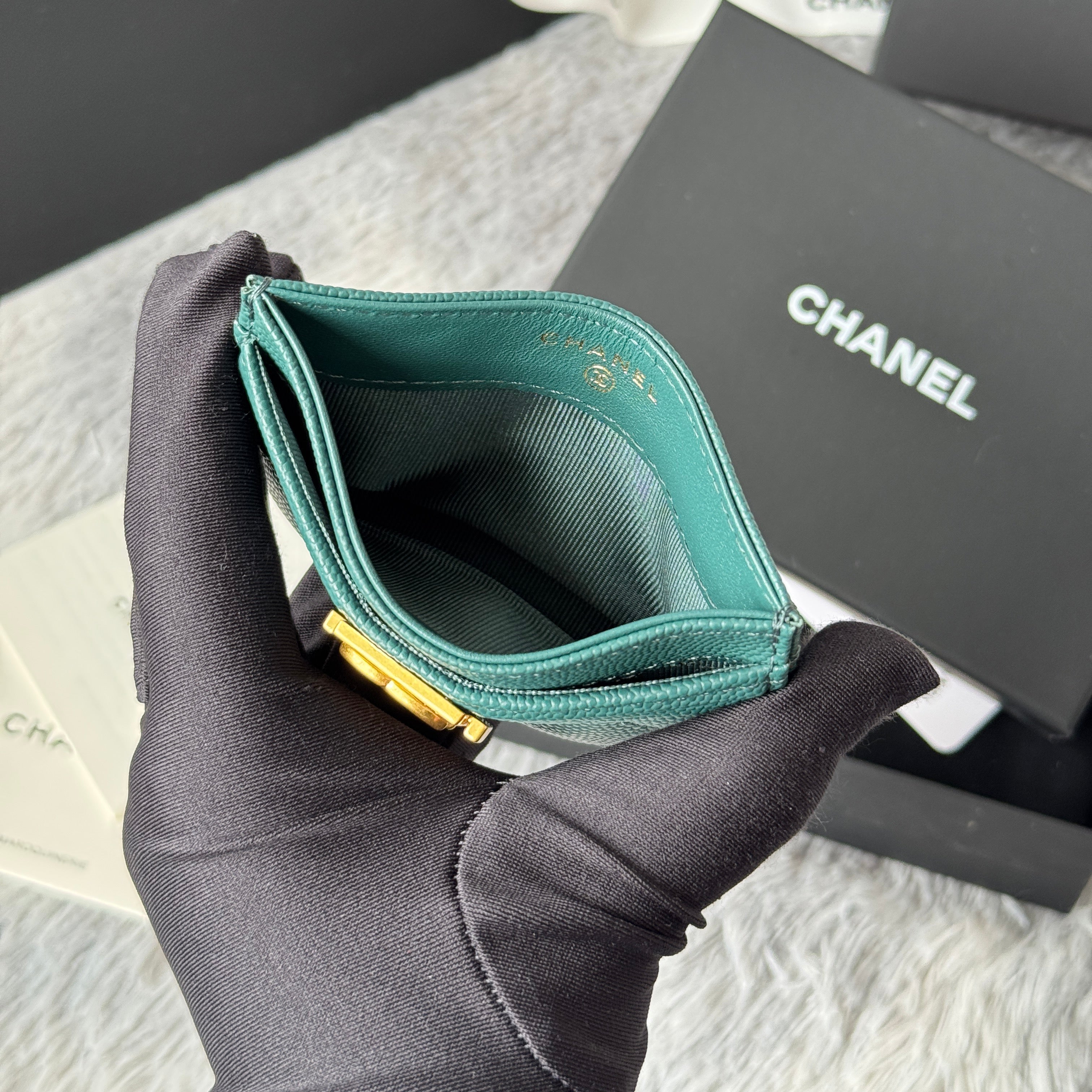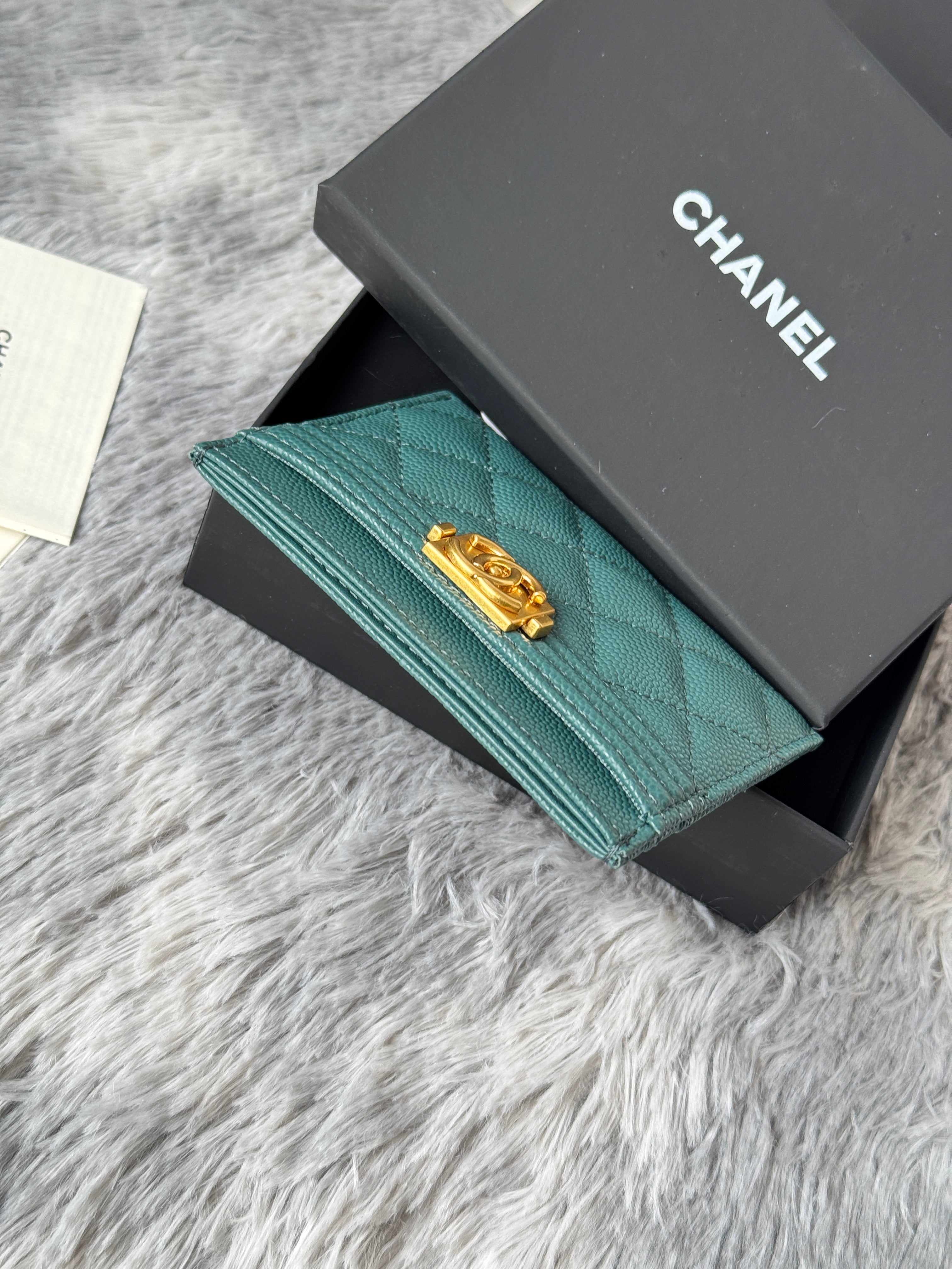 LEBOY CARD HOLDER 11 IN SHADOW GREEN GRAINED CALFSKIN GOLD-TONE HARDWARE