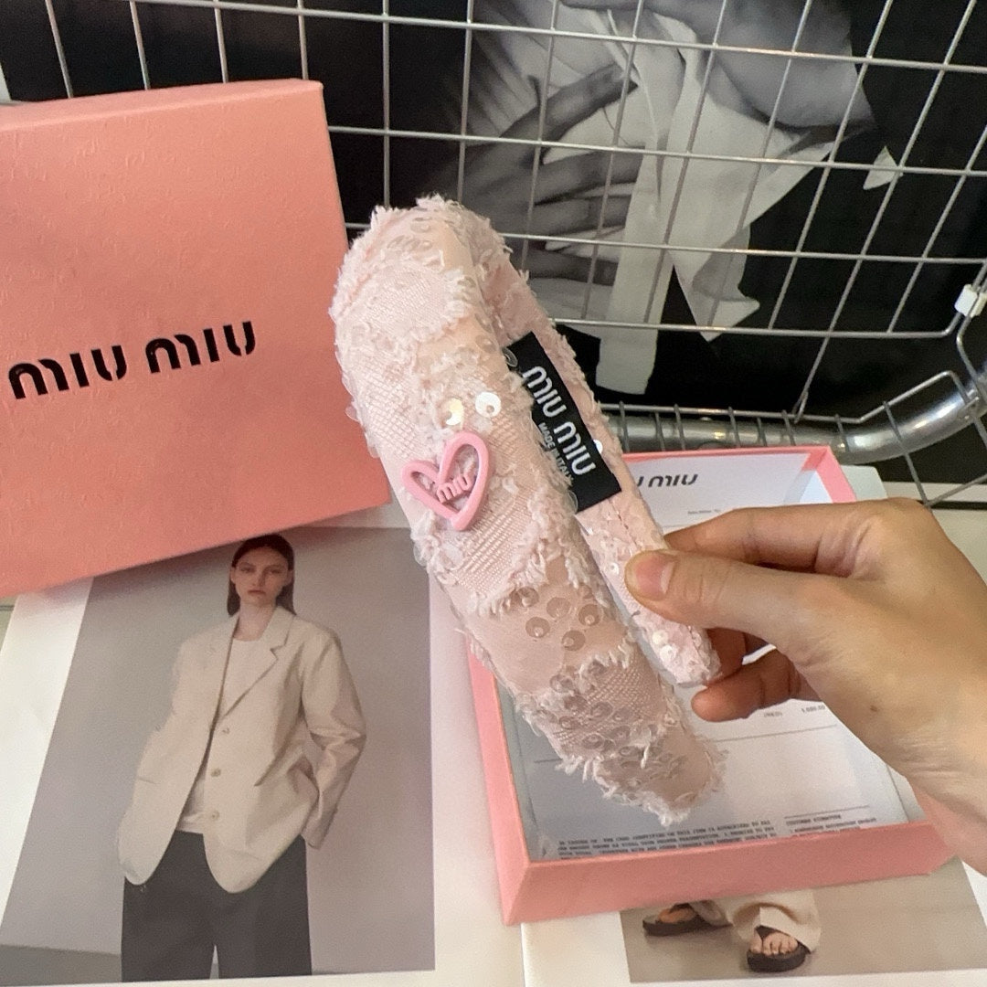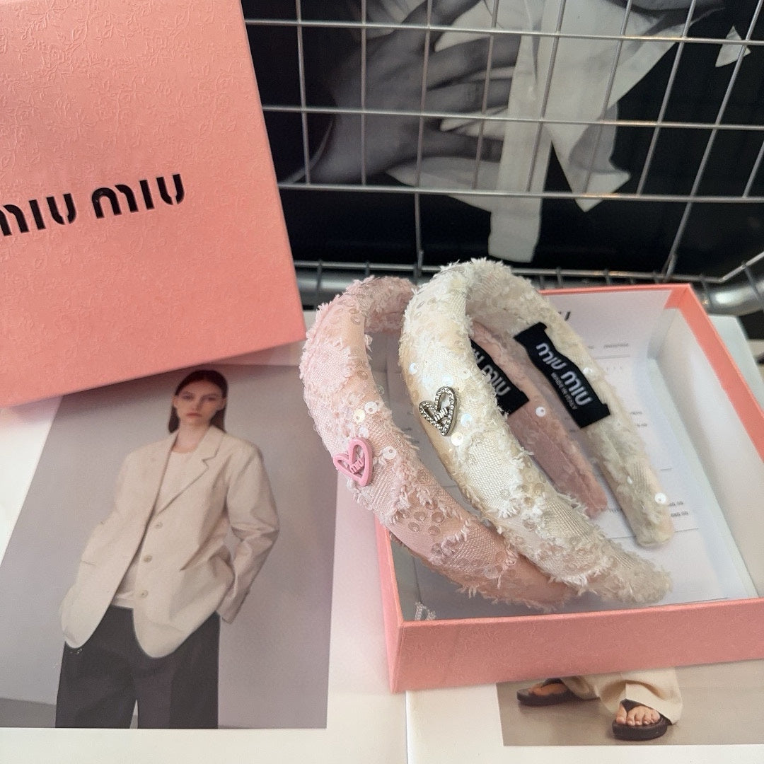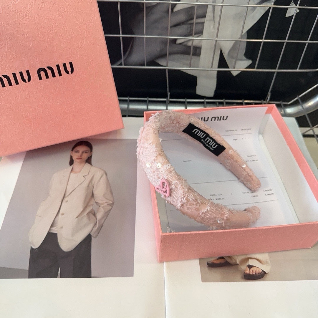 LIGHT PINK HEADBAND ATTACHED SEQUINS TWEED 425521