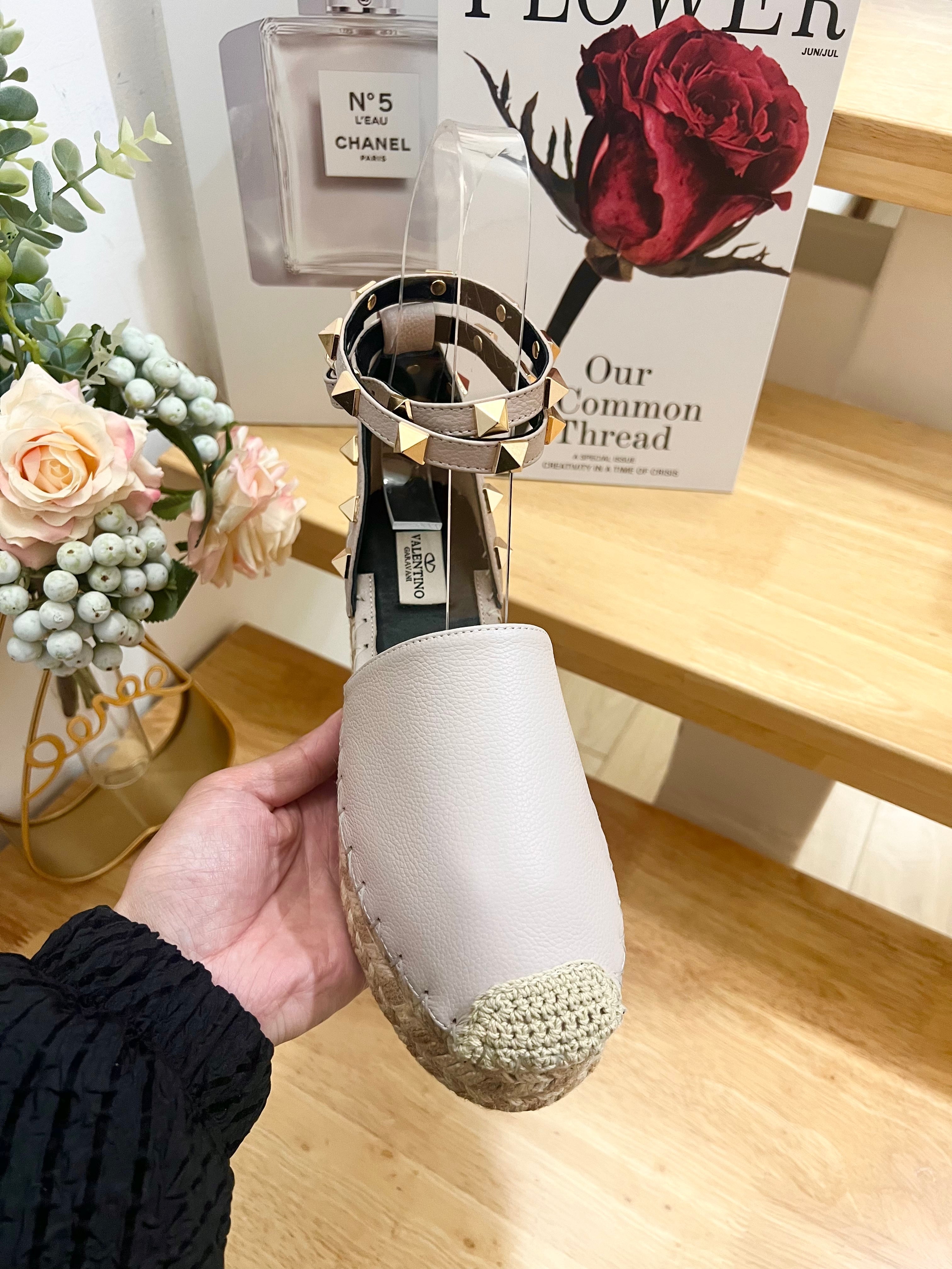 LIGHT PURPLE LEATHER ROCKSTUD ESPADRILLES ANKLE STRAP FLATS