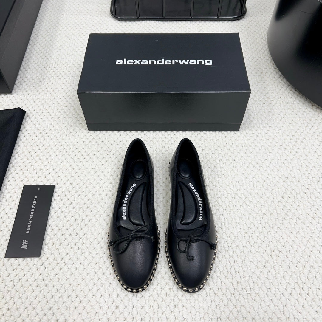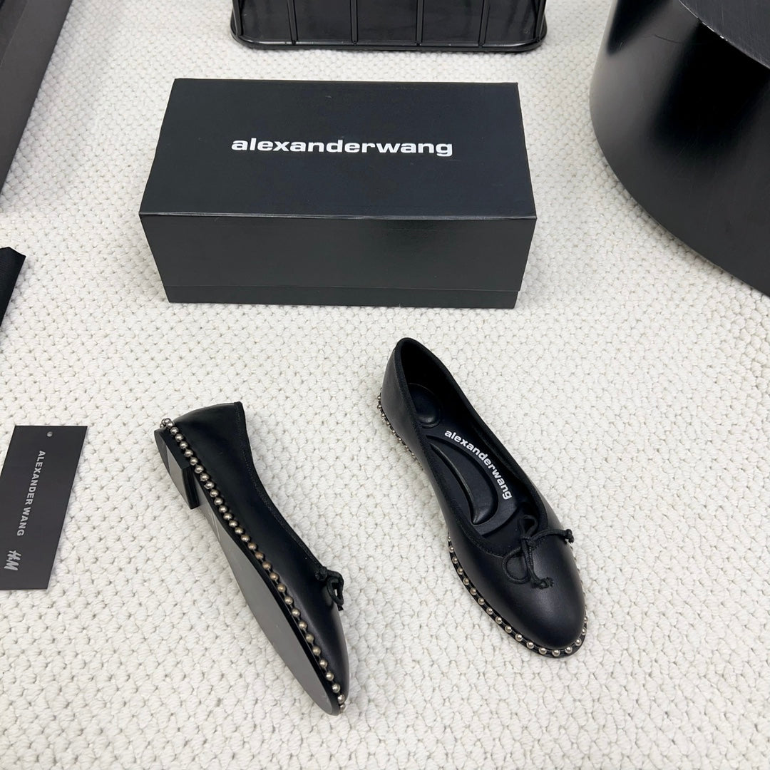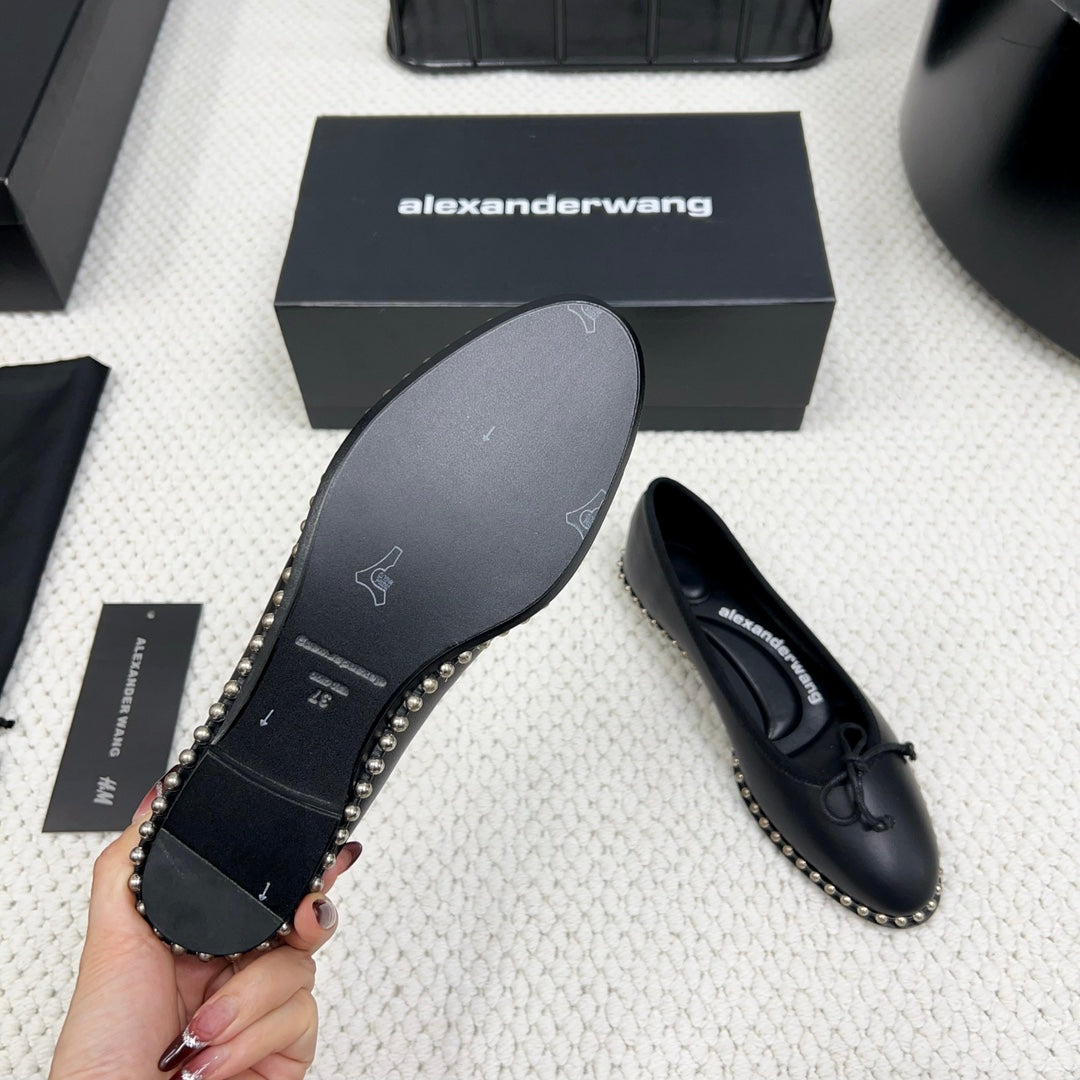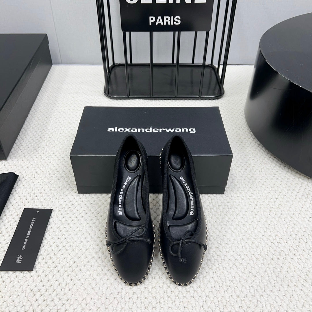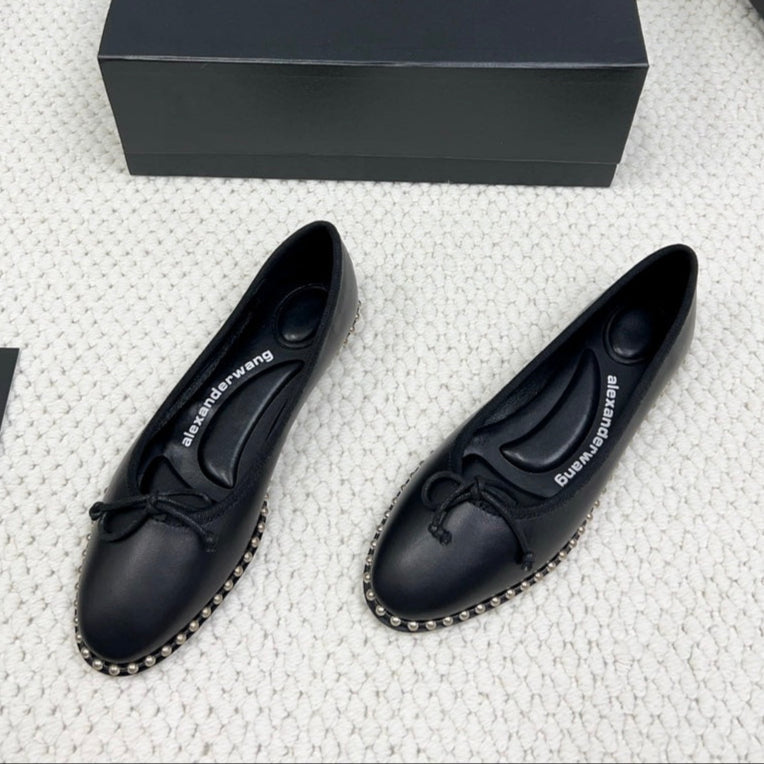 LINA BALLCHAIN FLAT IN BLACK LAMBSKIN