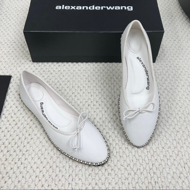 LINA BALLCHAIN FLAT IN WHITE LAMBSKIN