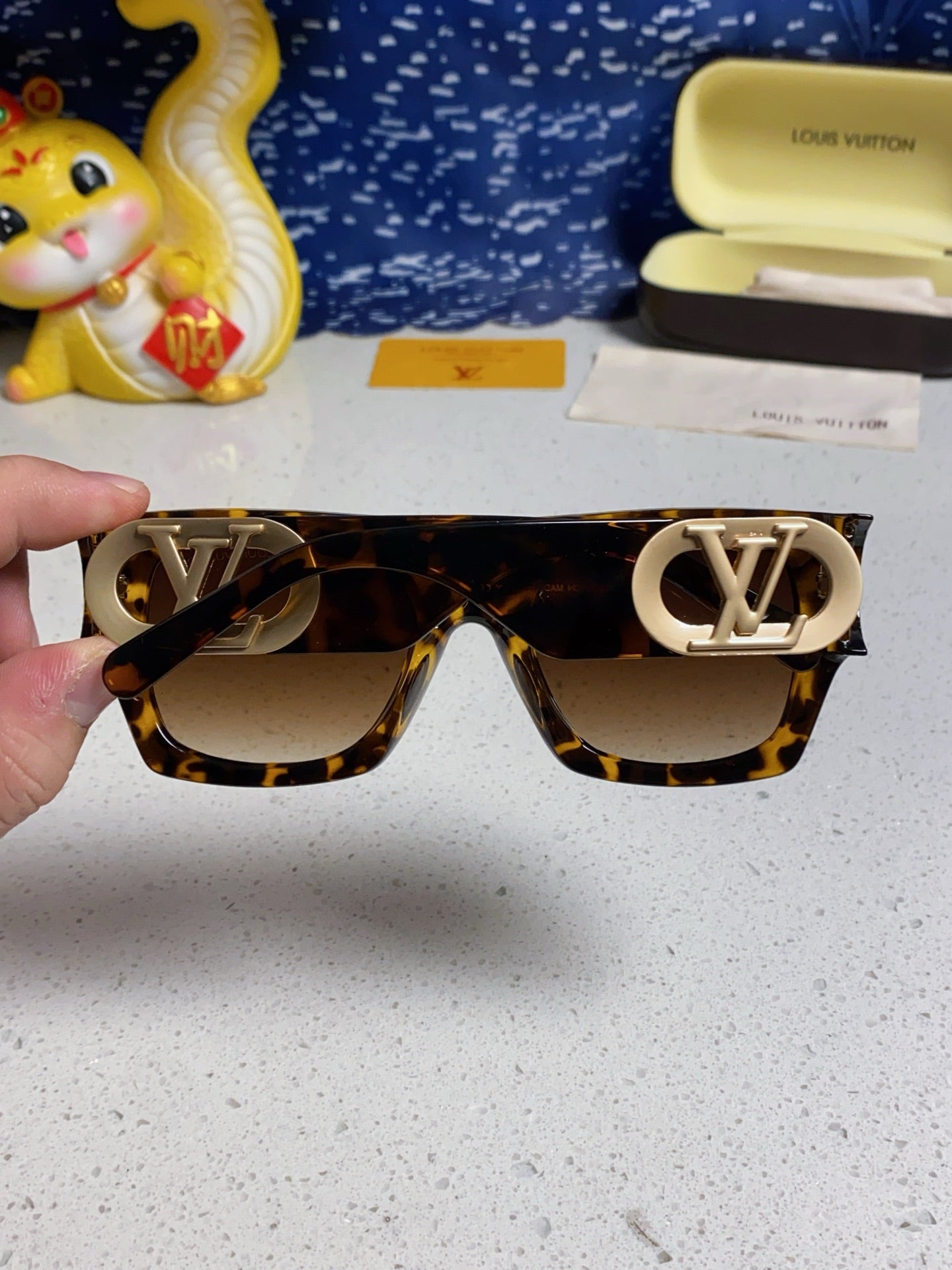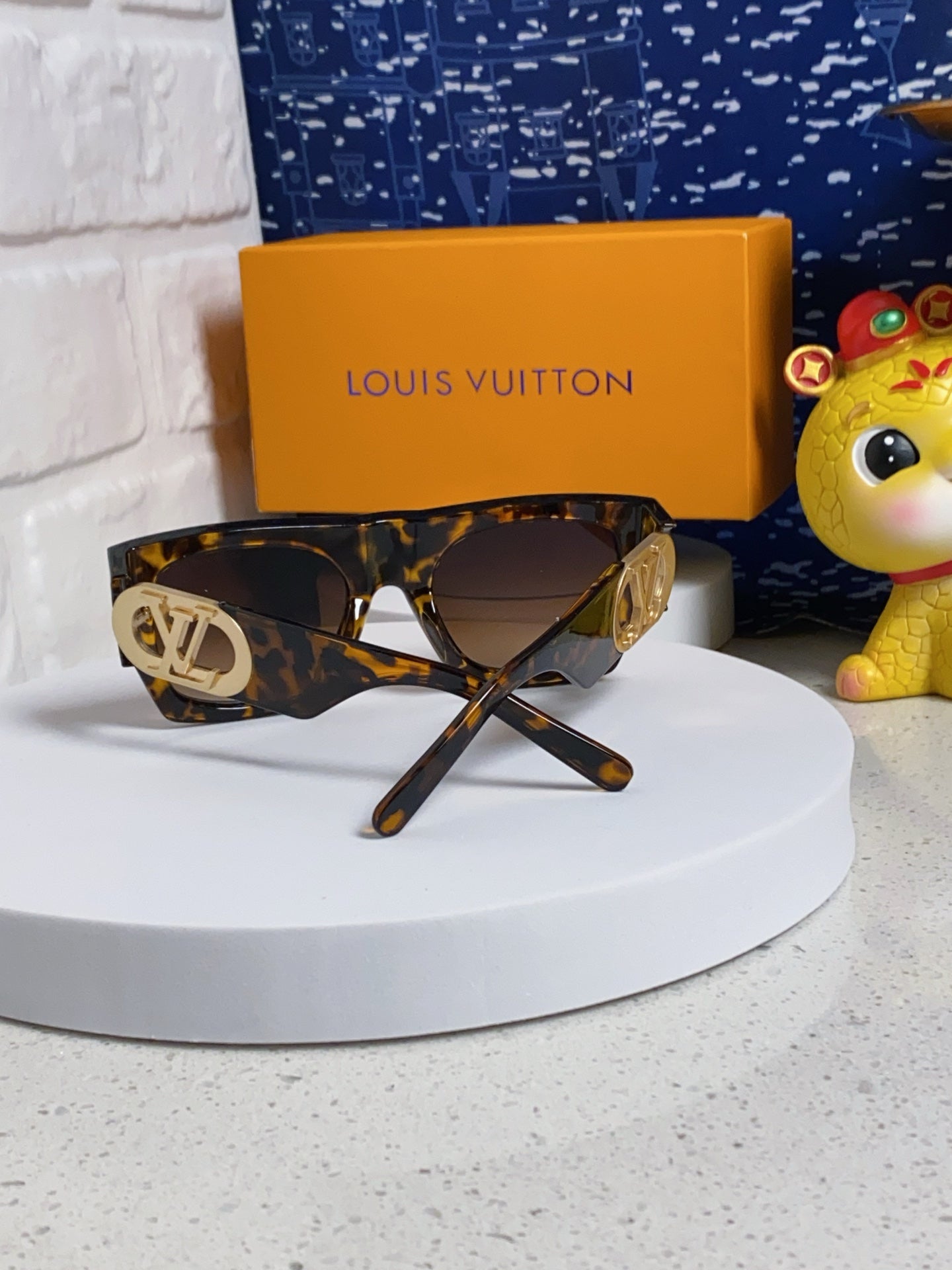 LINK SQUARE SUNGLASSES 570275 IN HAVANA ACETATE GOLD LOGO