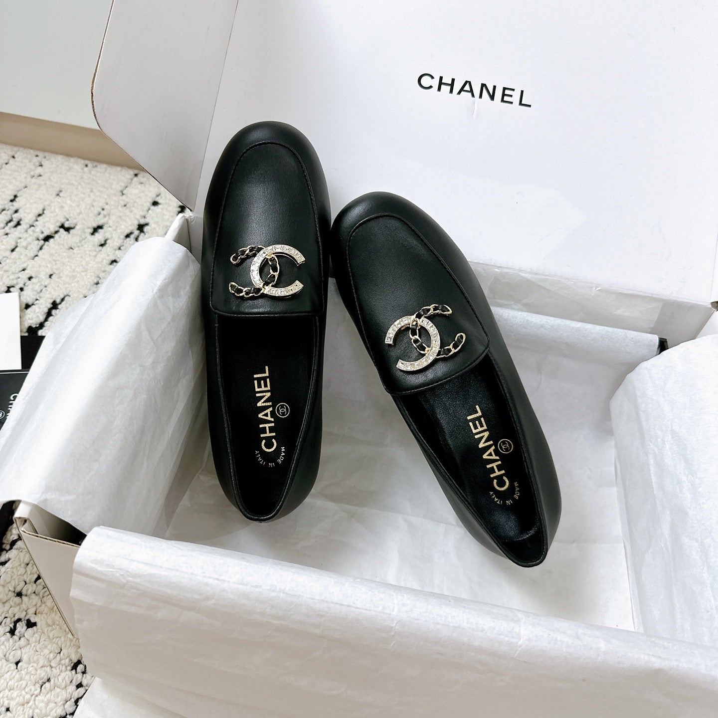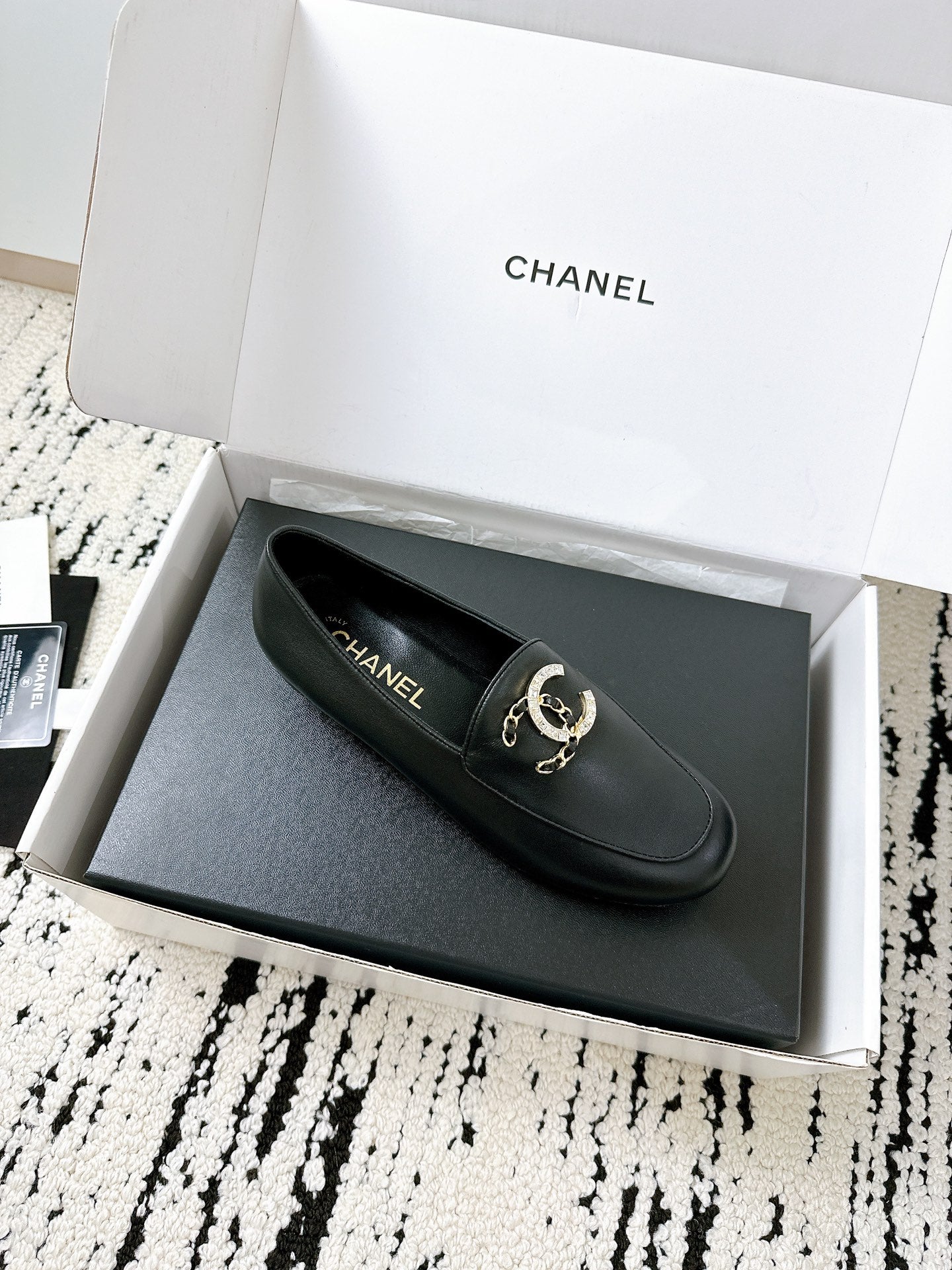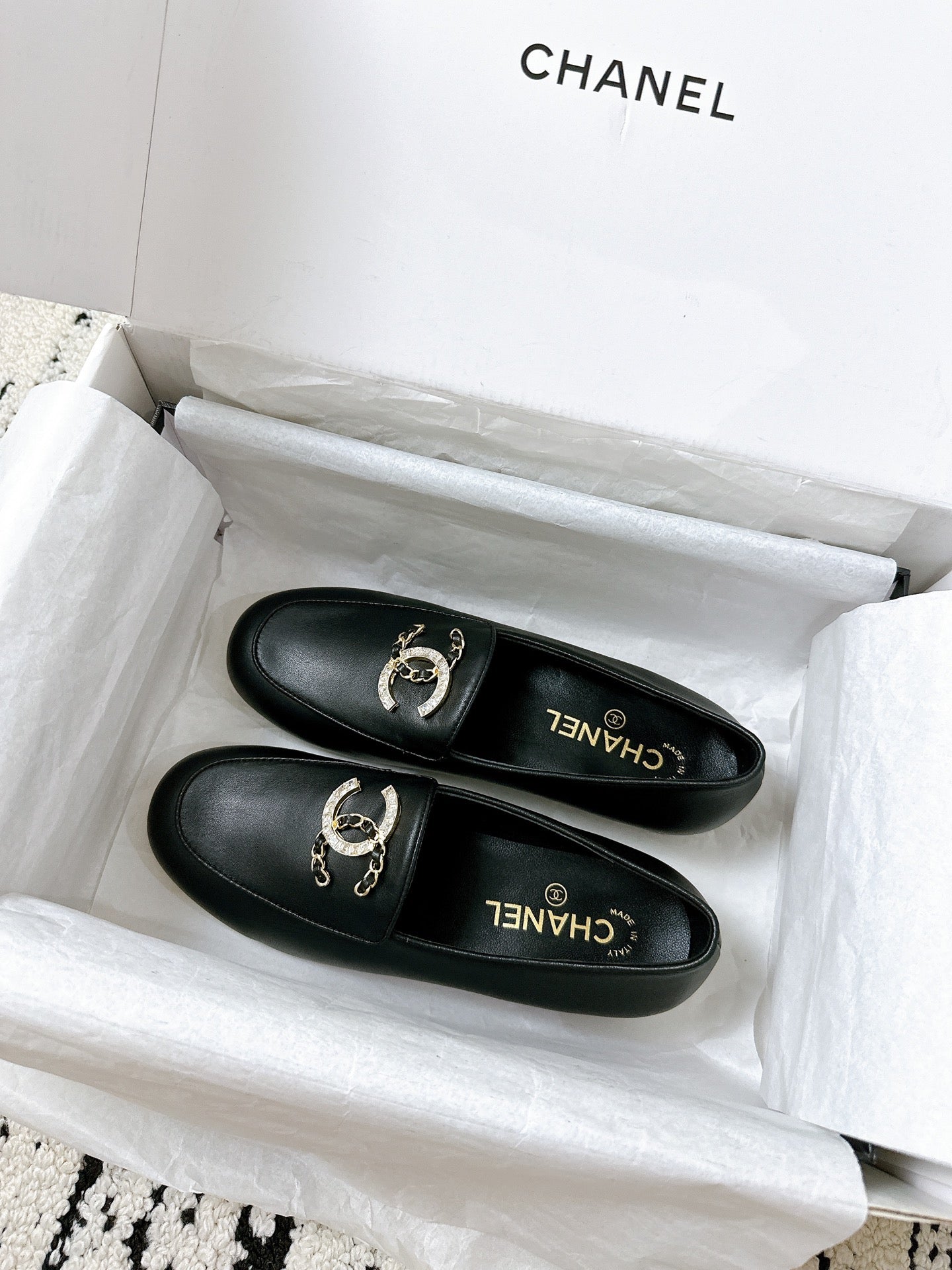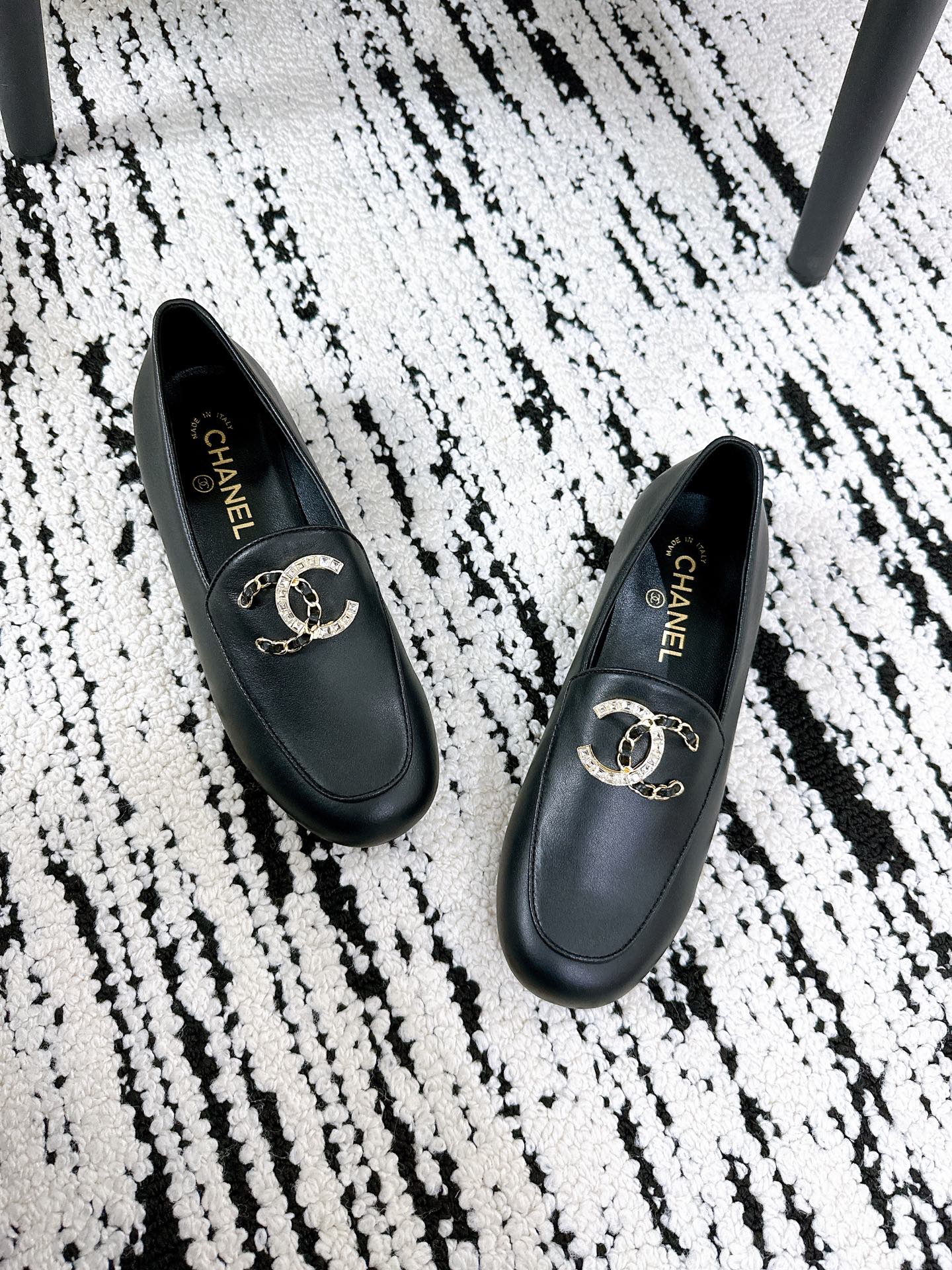 LOAFERS IN BLACK CALFSKIN HARDWARE WITH ROCK MIX CHAIN