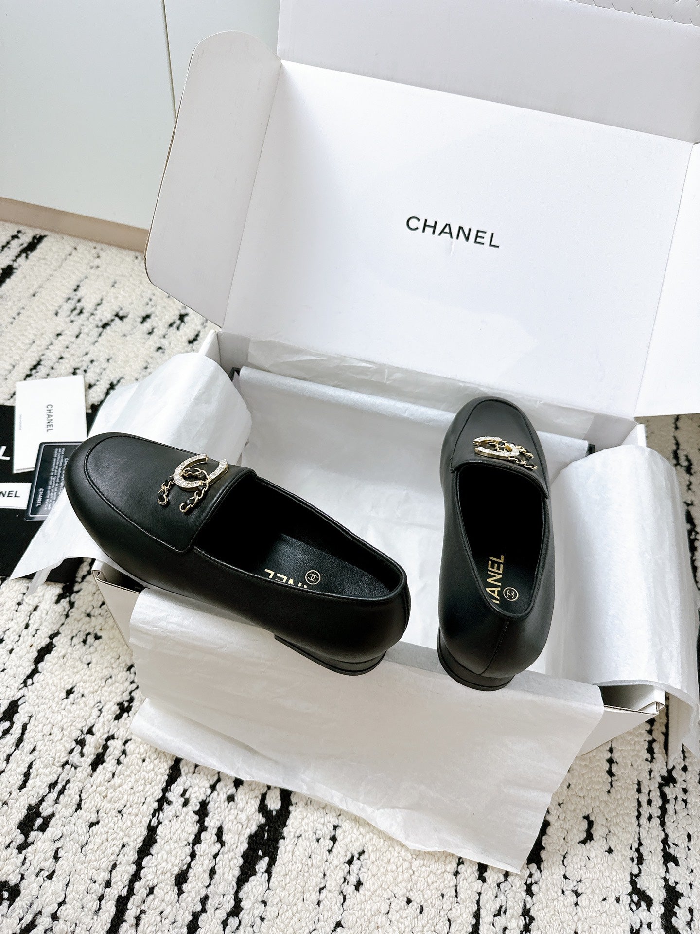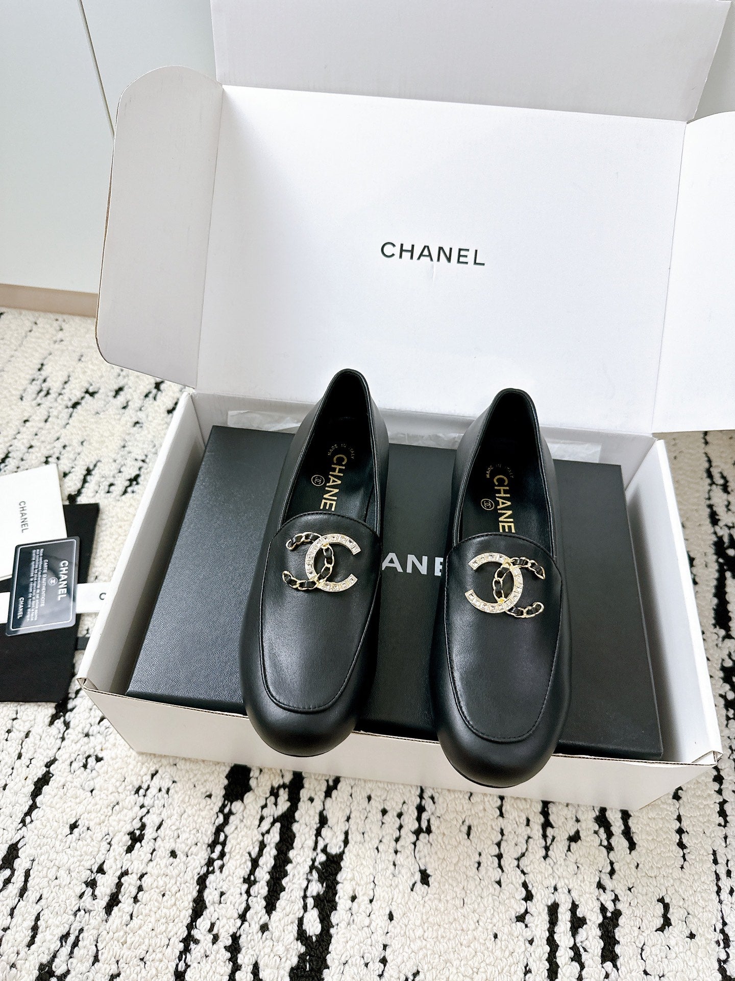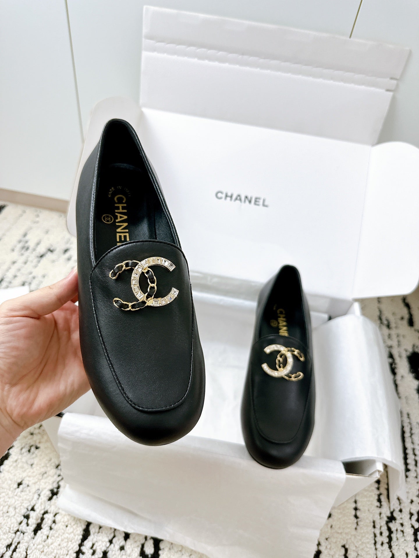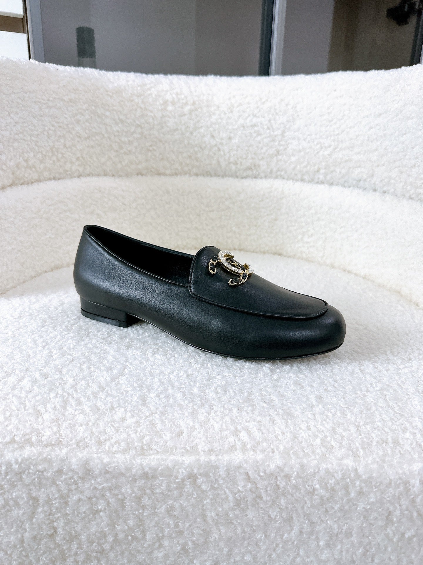 LOAFERS IN BLACK CALFSKIN HARDWARE WITH ROCK MIX CHAIN