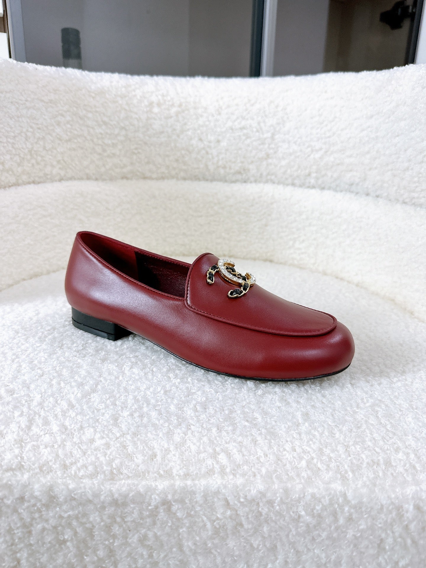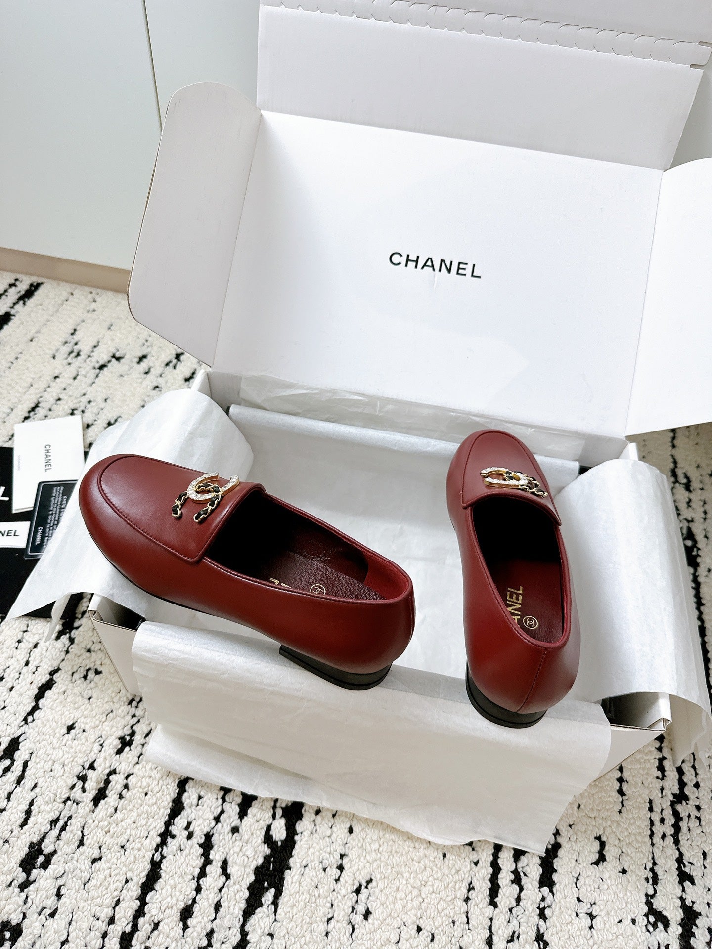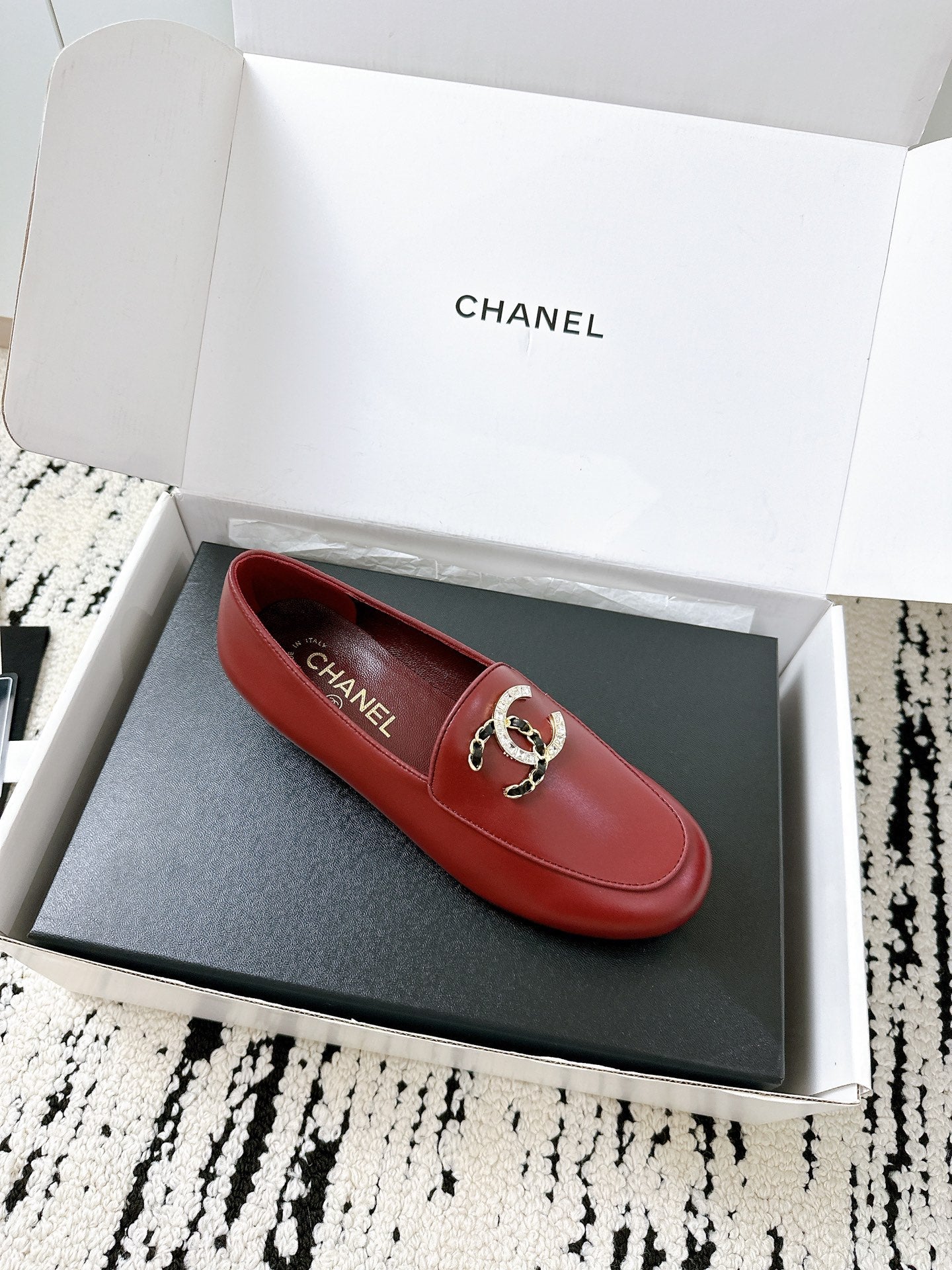 LOAFERS IN RED CALFSKIN HARDWARE WITH ROCK MIX CHAIN