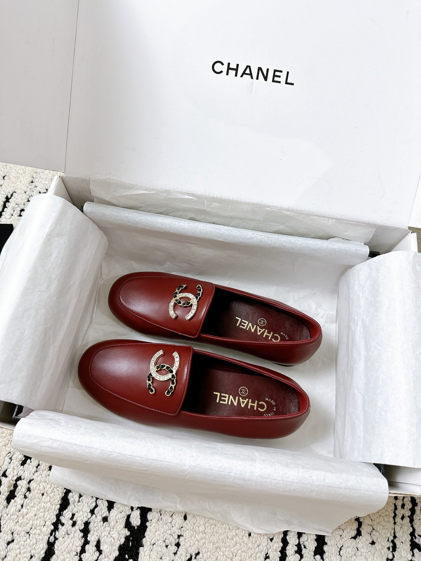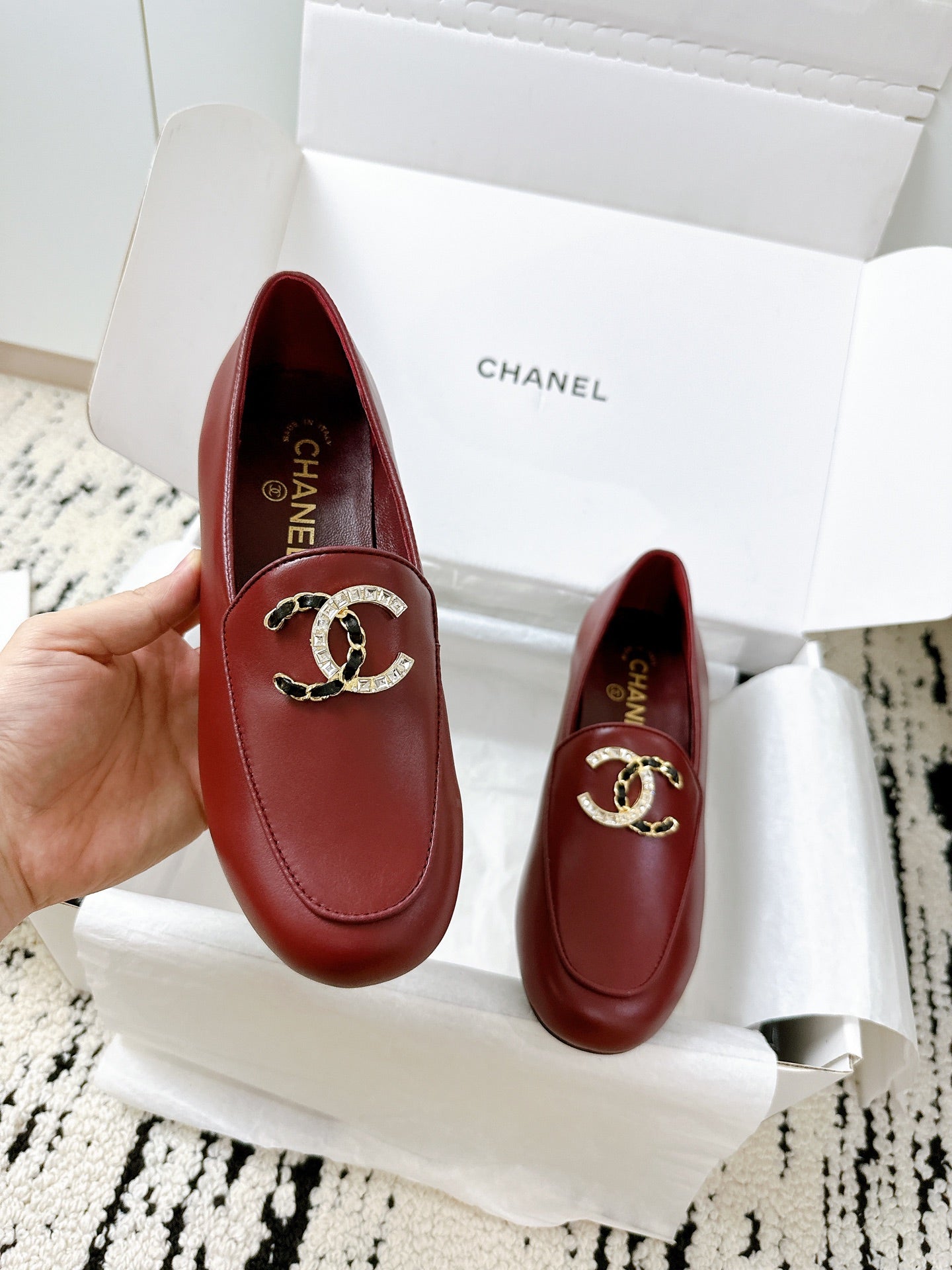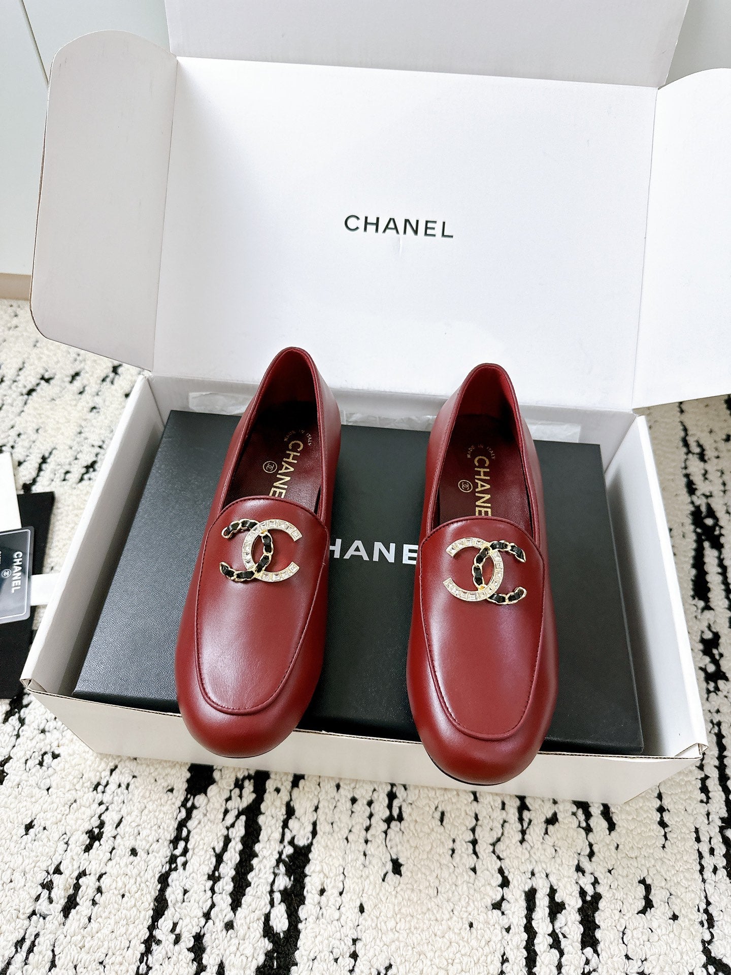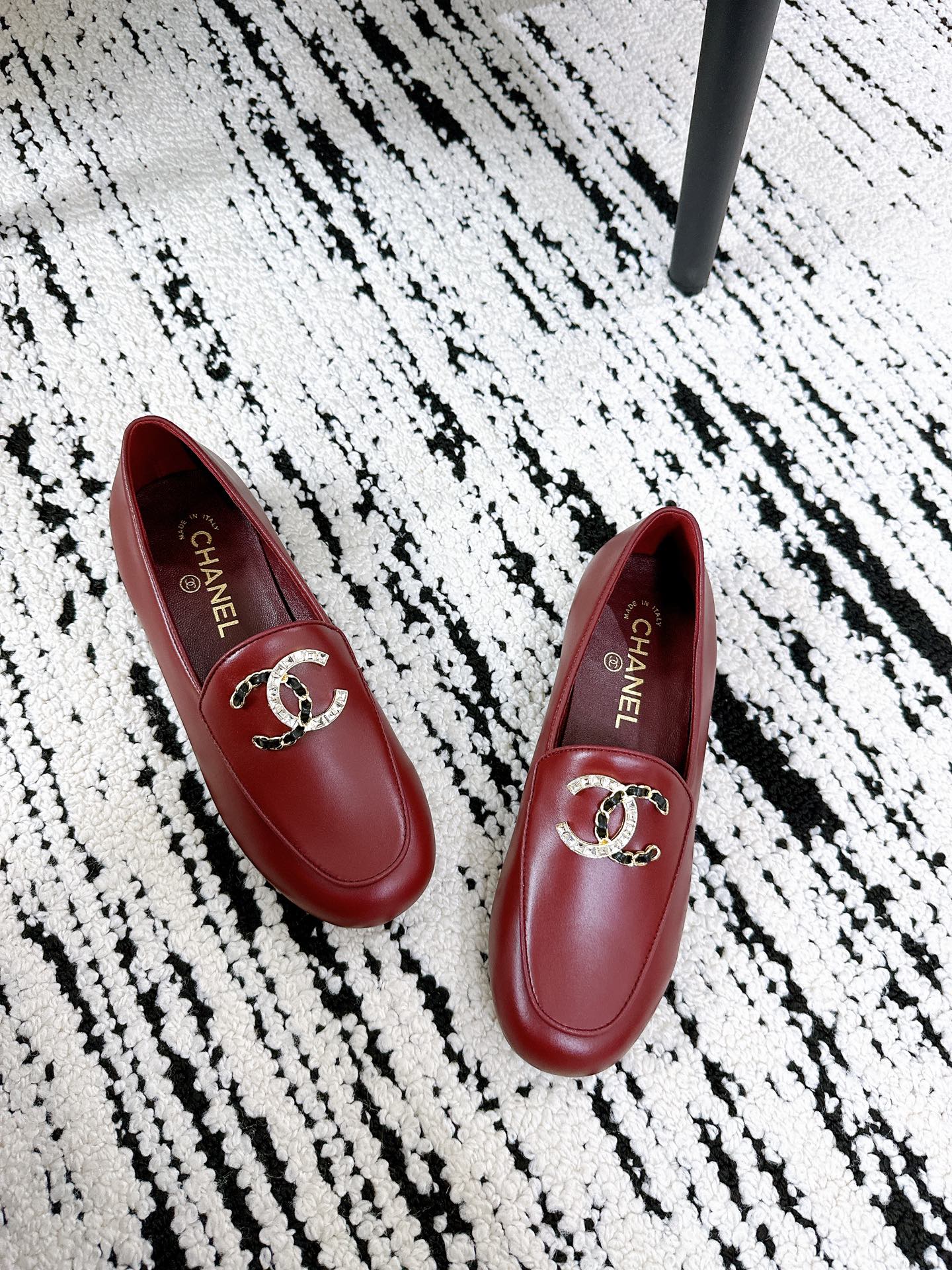 LOAFERS IN RED CALFSKIN HARDWARE WITH ROCK MIX CHAIN