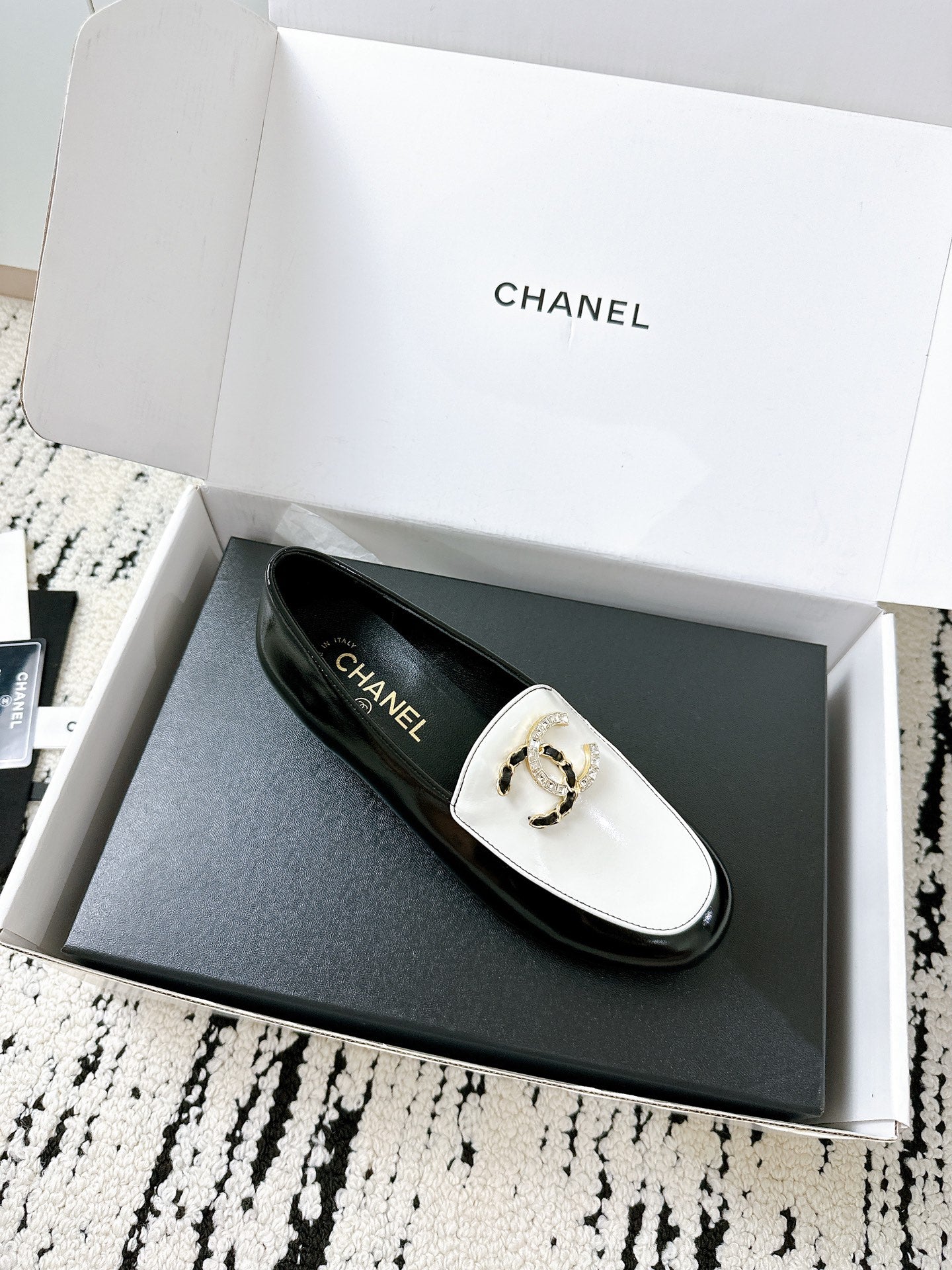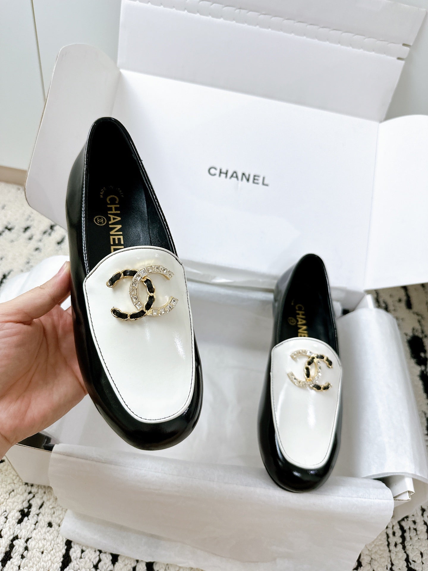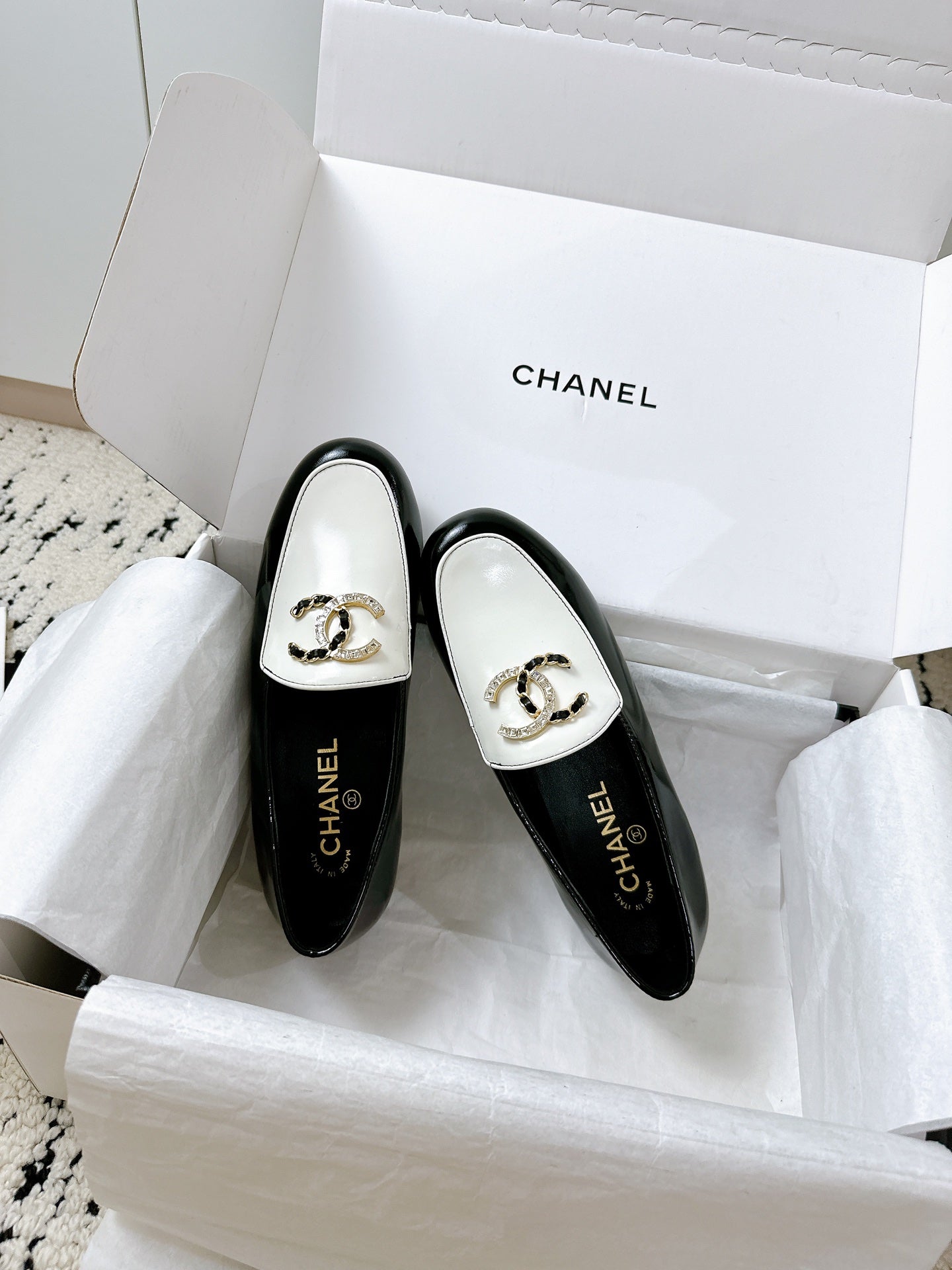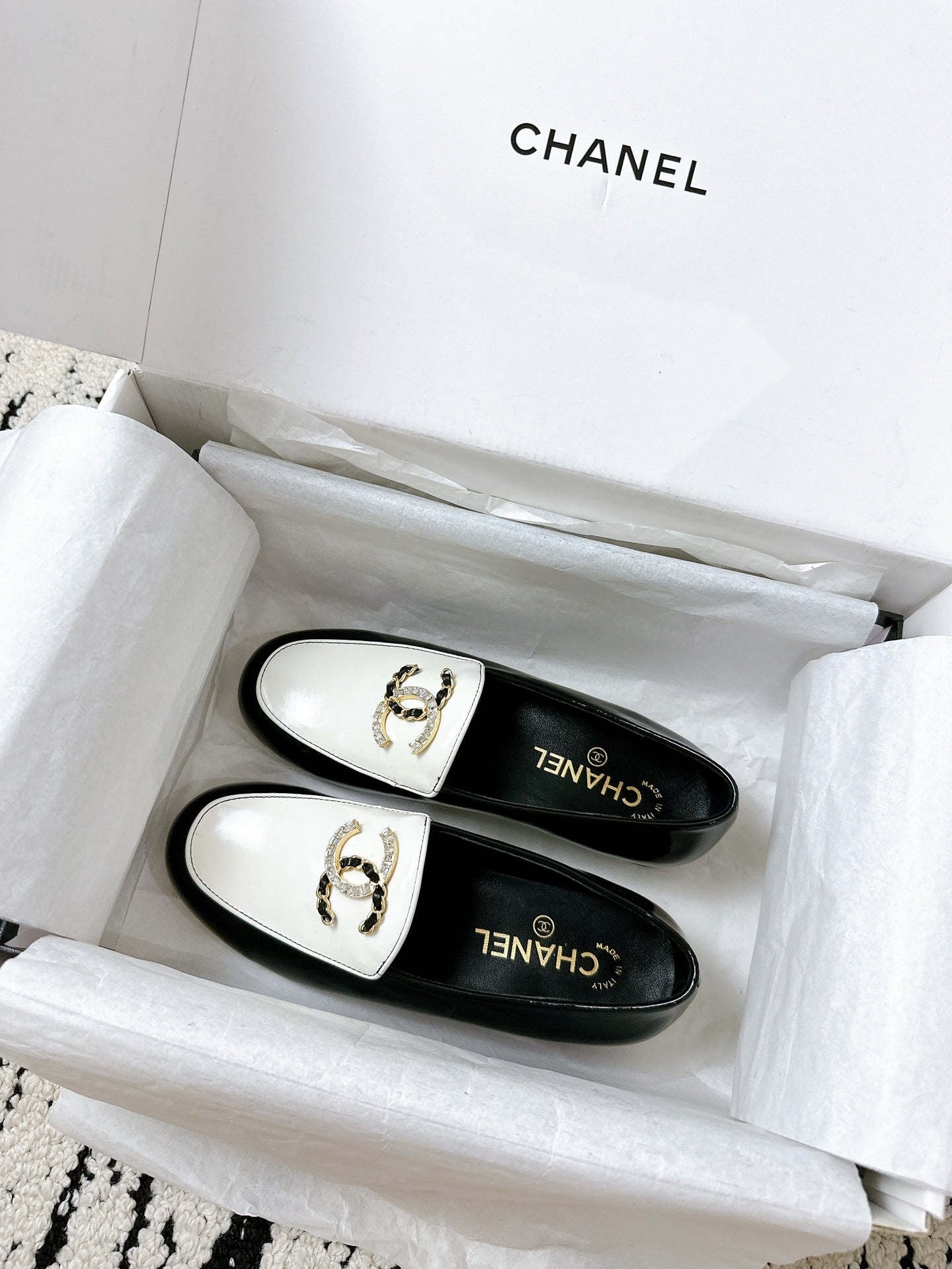 LOAFERS IN WHITE AND BLACK CALFSKIN HARDWARE WITH ROCK MIX CHAIN