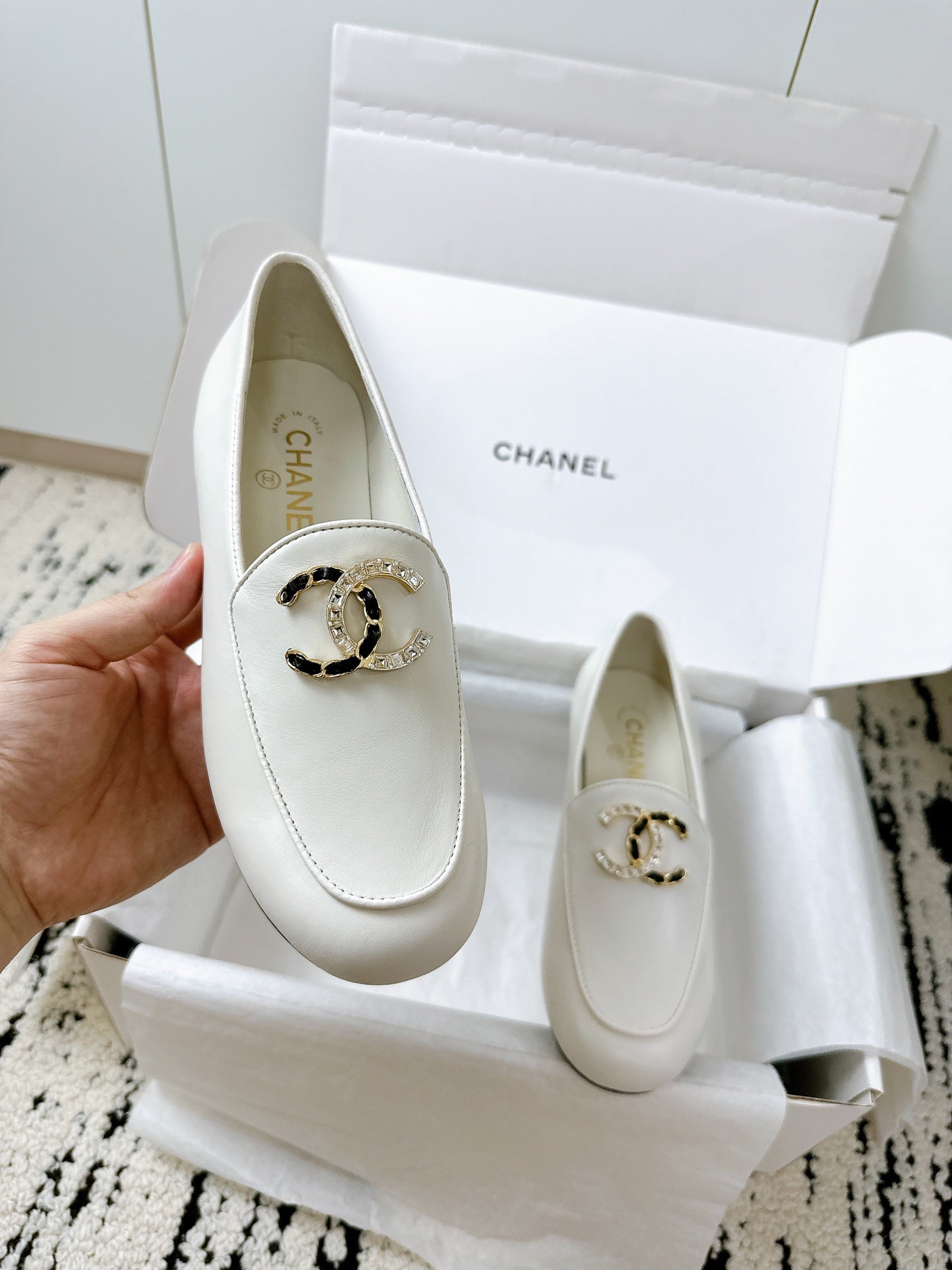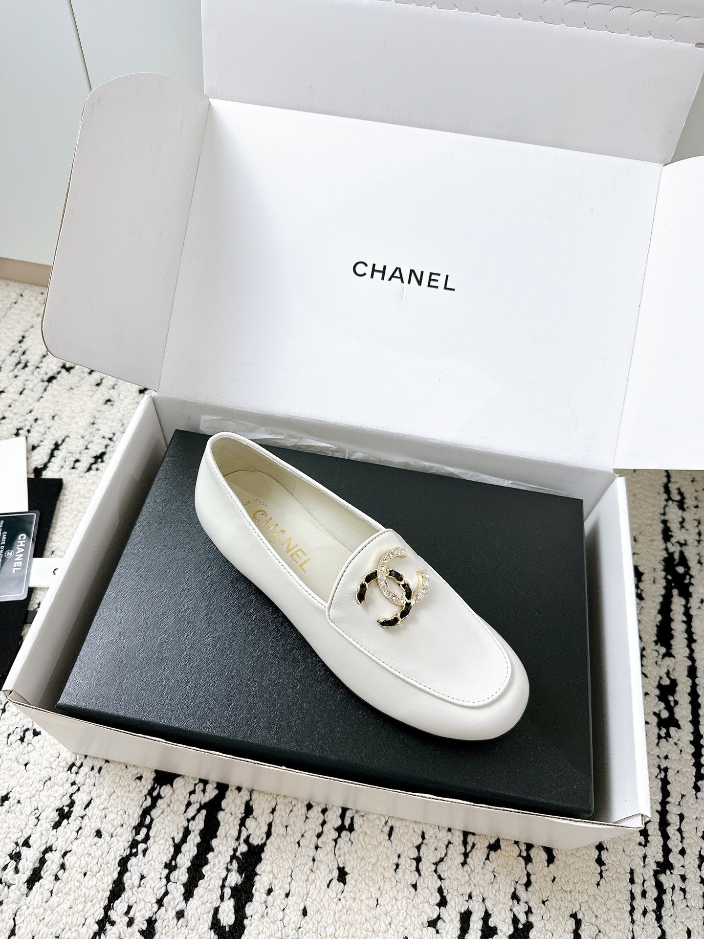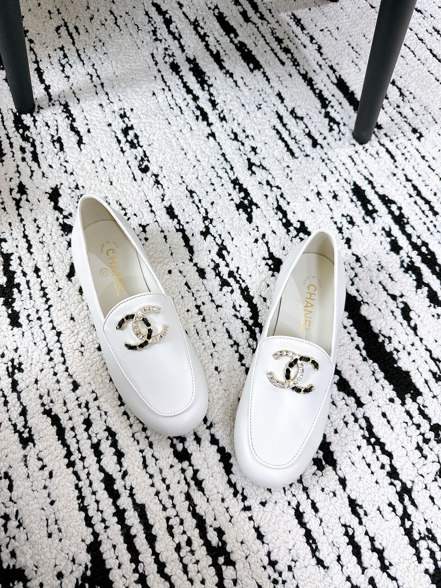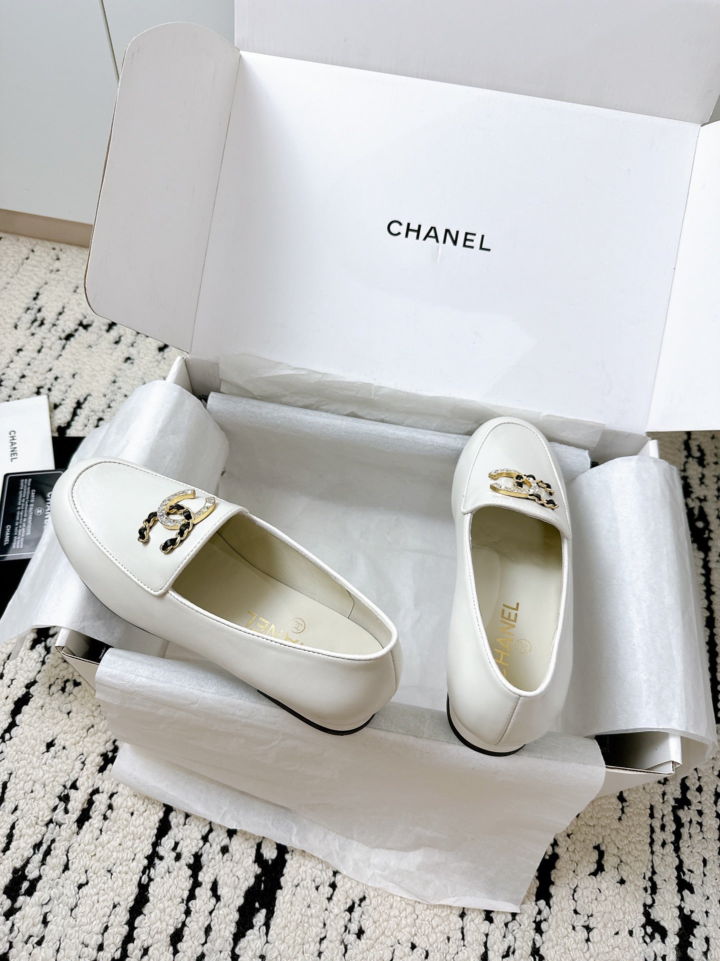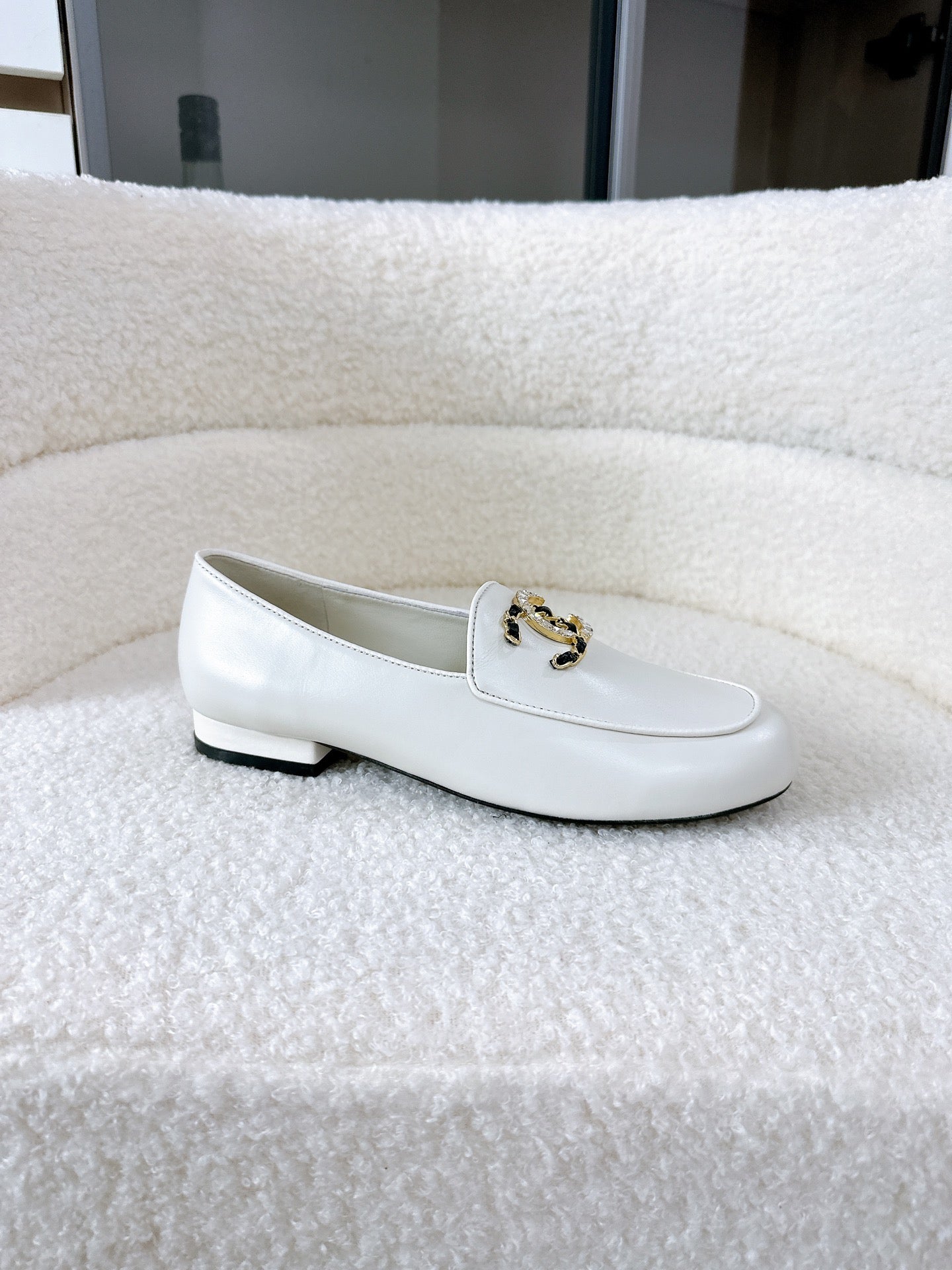 LOAFERS IN WHITE CALFSKIN HARDWARE WITH ROCK MIX CHAIN
