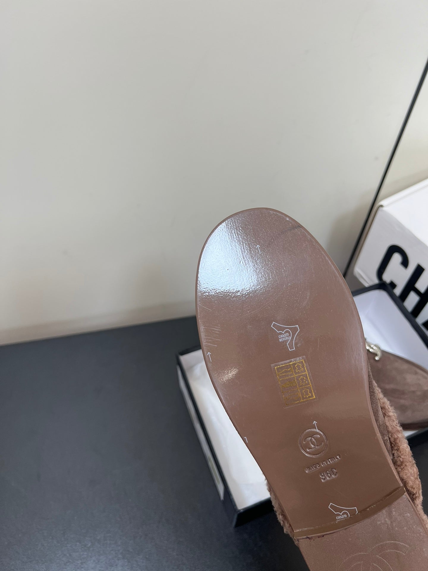 LOAFERS MULE IN MEDIUM BROWN SUEDE AND FLEECE LINING