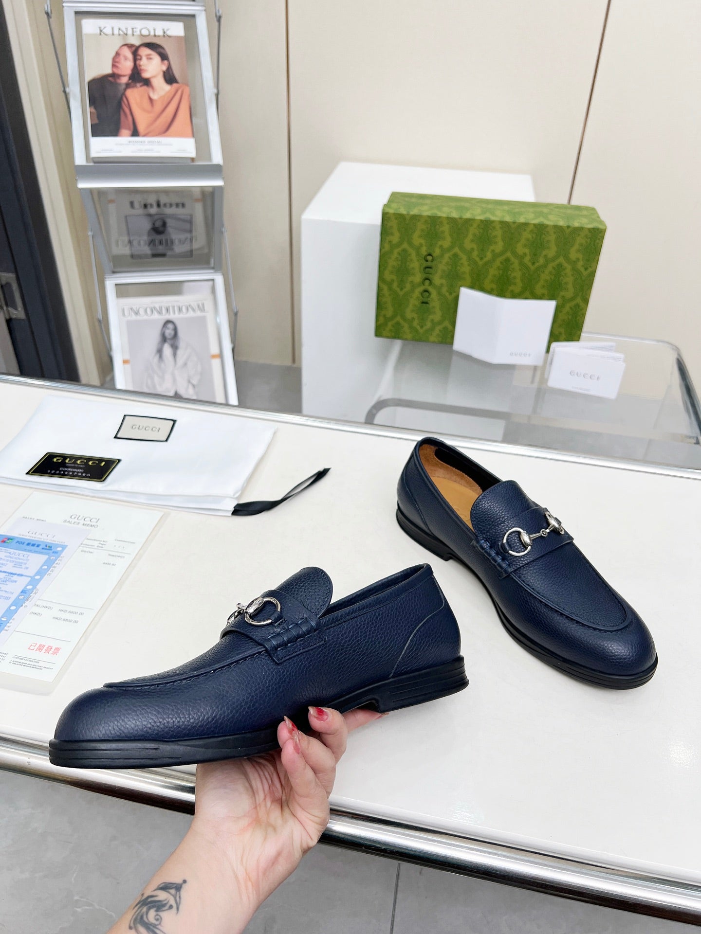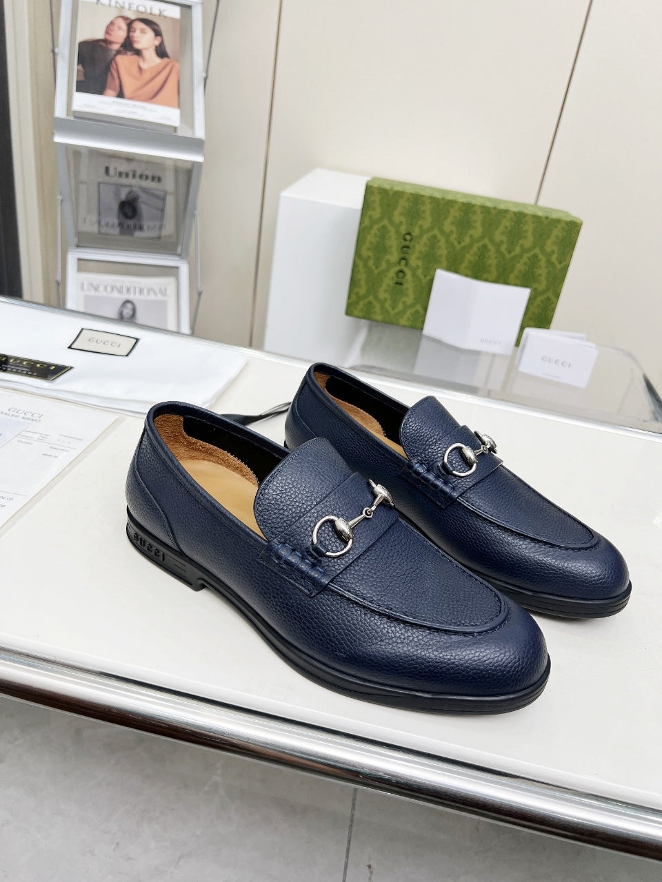 LOAFERS WITH SILVER HARDWARE IN NAVY BLUE GRAINED CALFSKIN