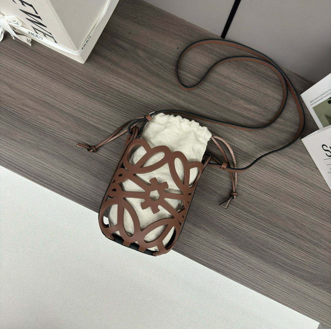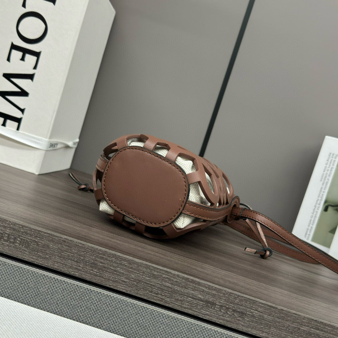 LOE BUCKET BAG 21 ANAGRAM IN BROWN CALFSKIN MIX CANVAS