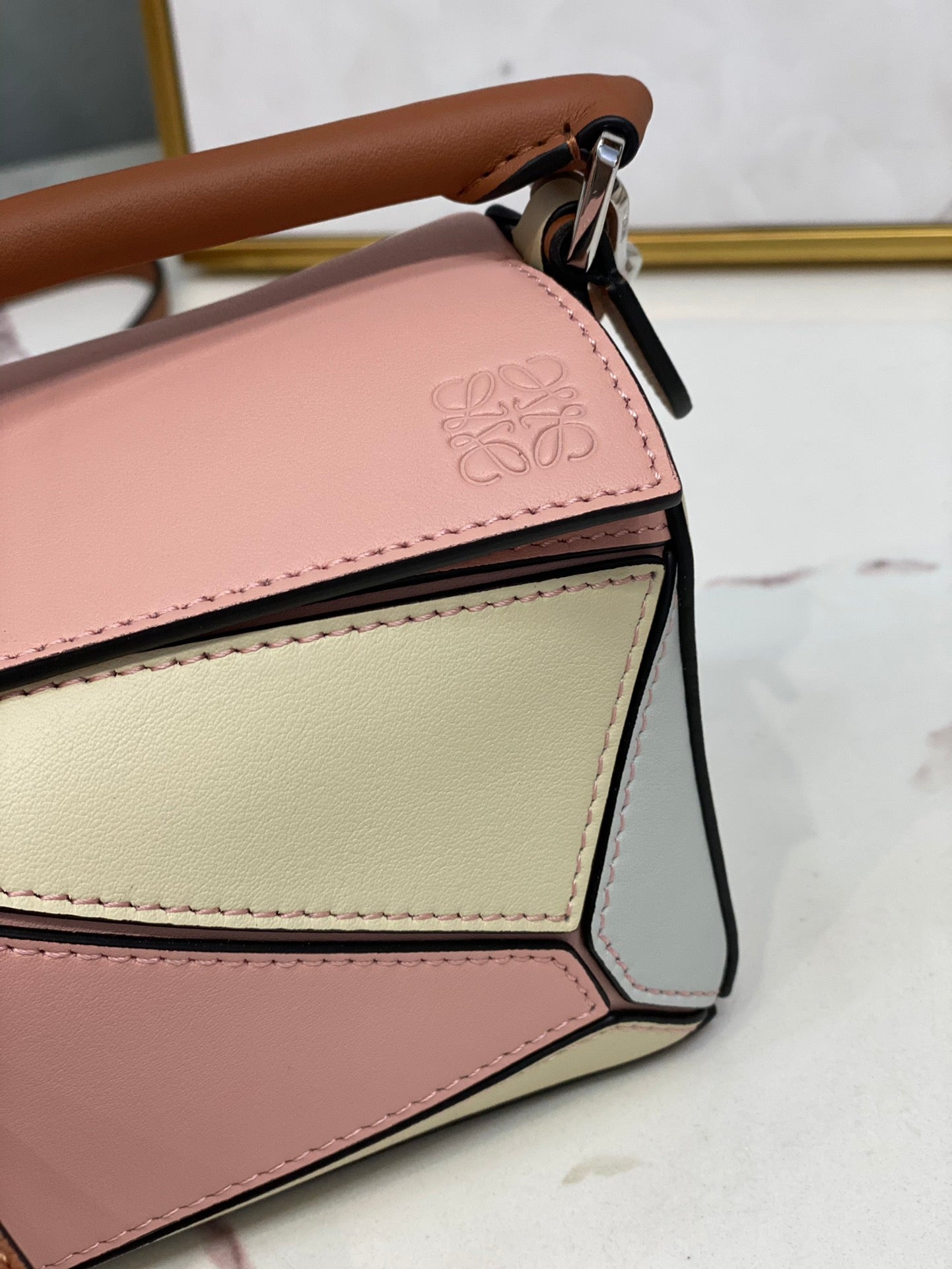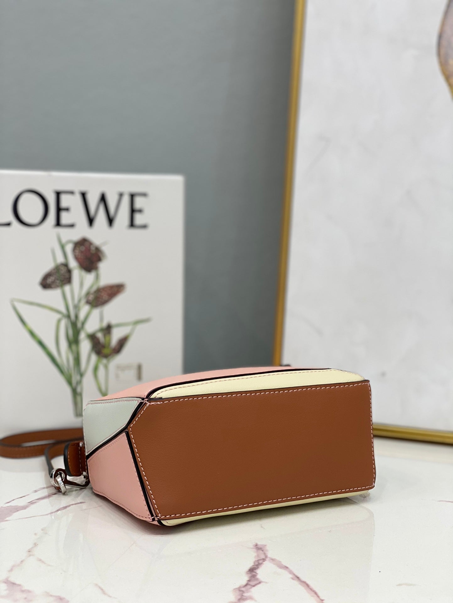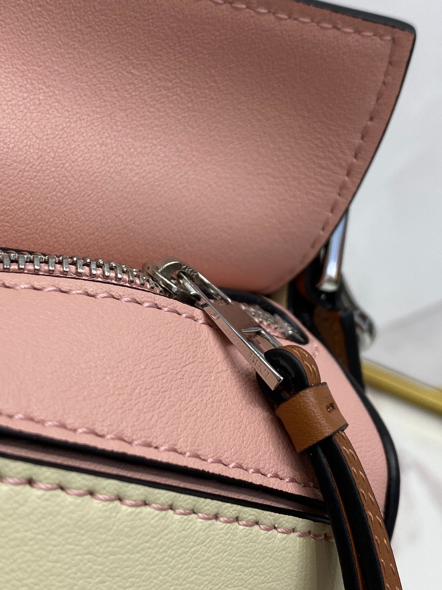 LOE MINI 18 PUZZLE BAG IN LIGHT PINK MIX YELLOW CALFSKIN