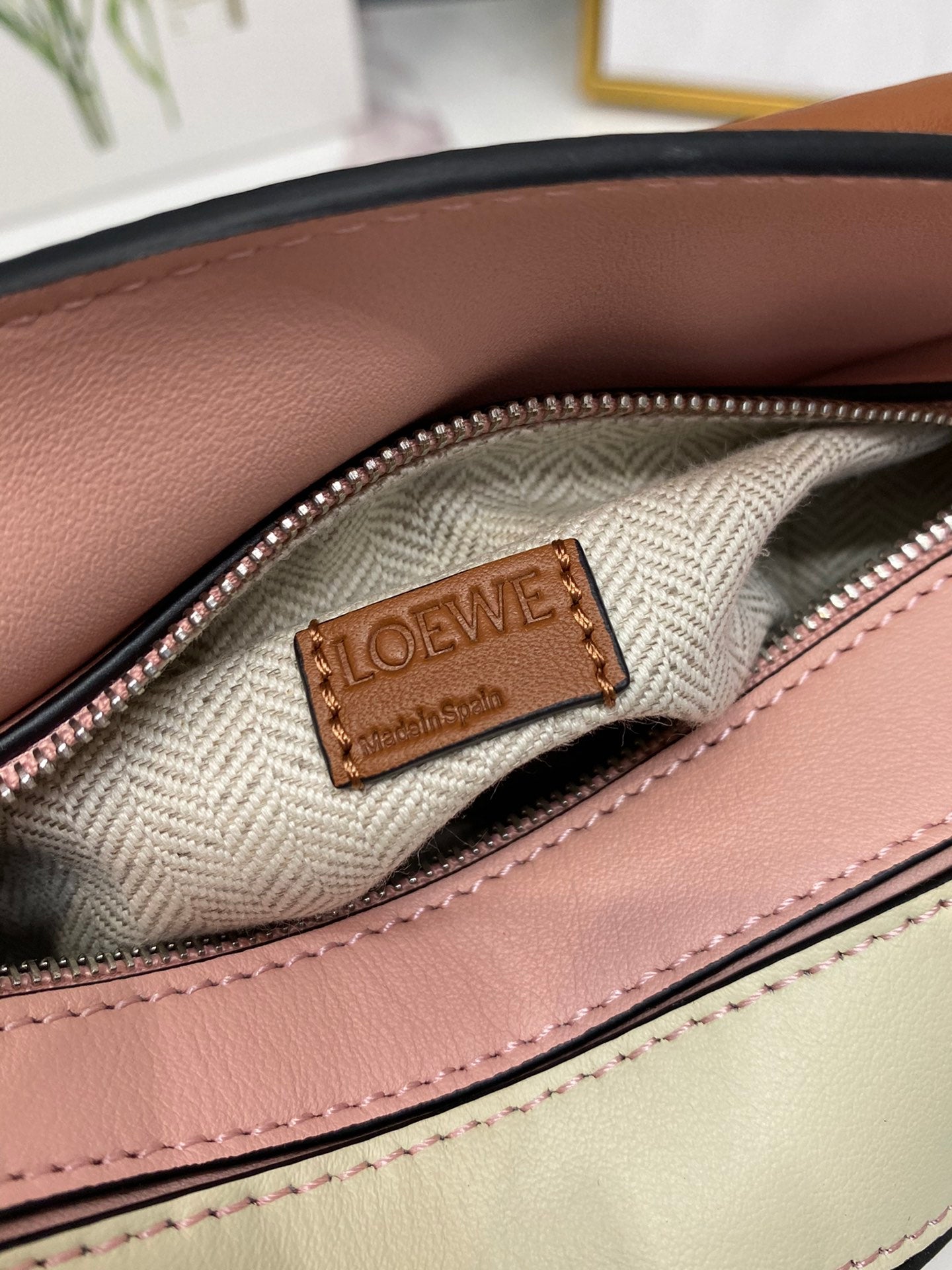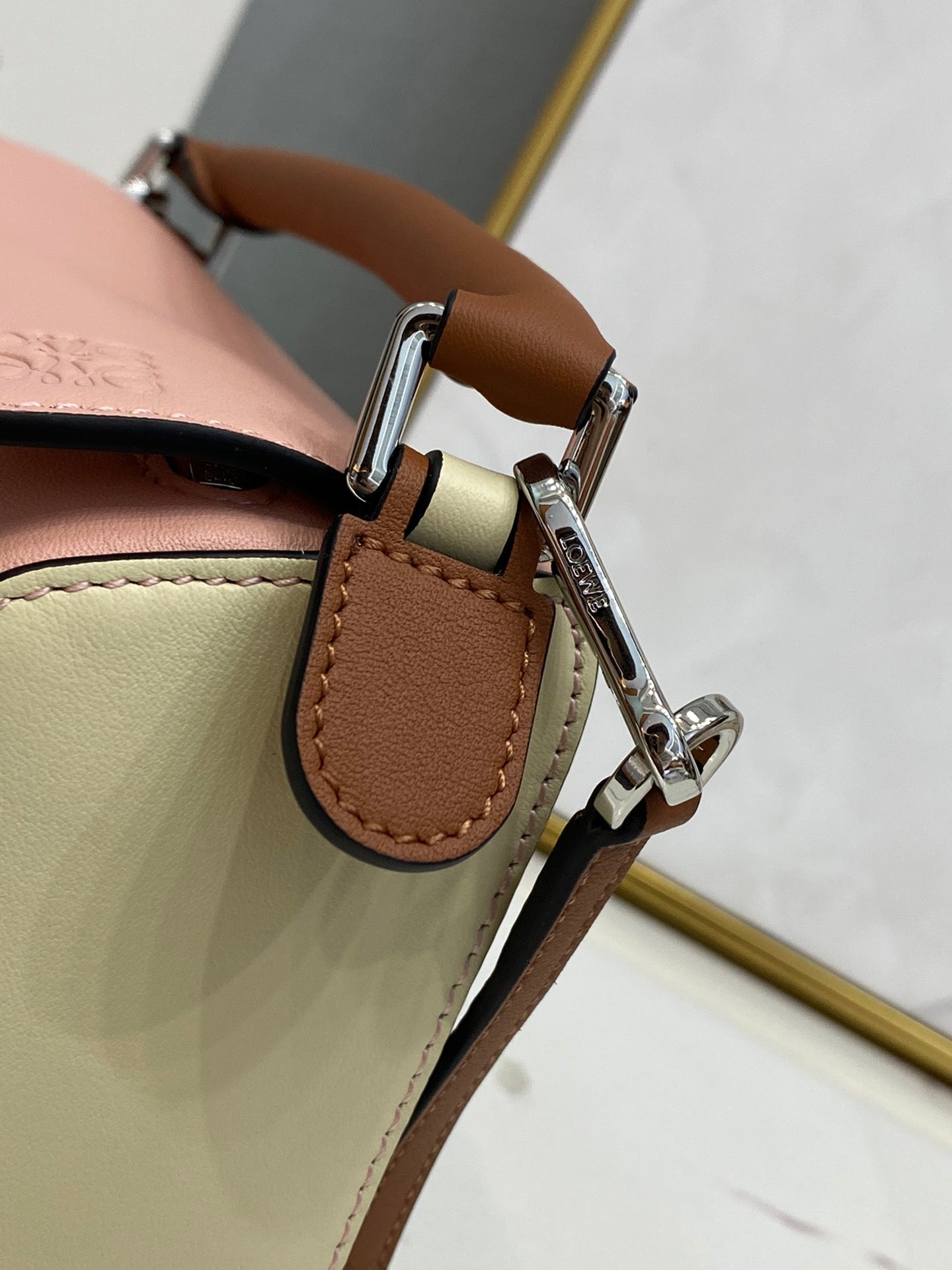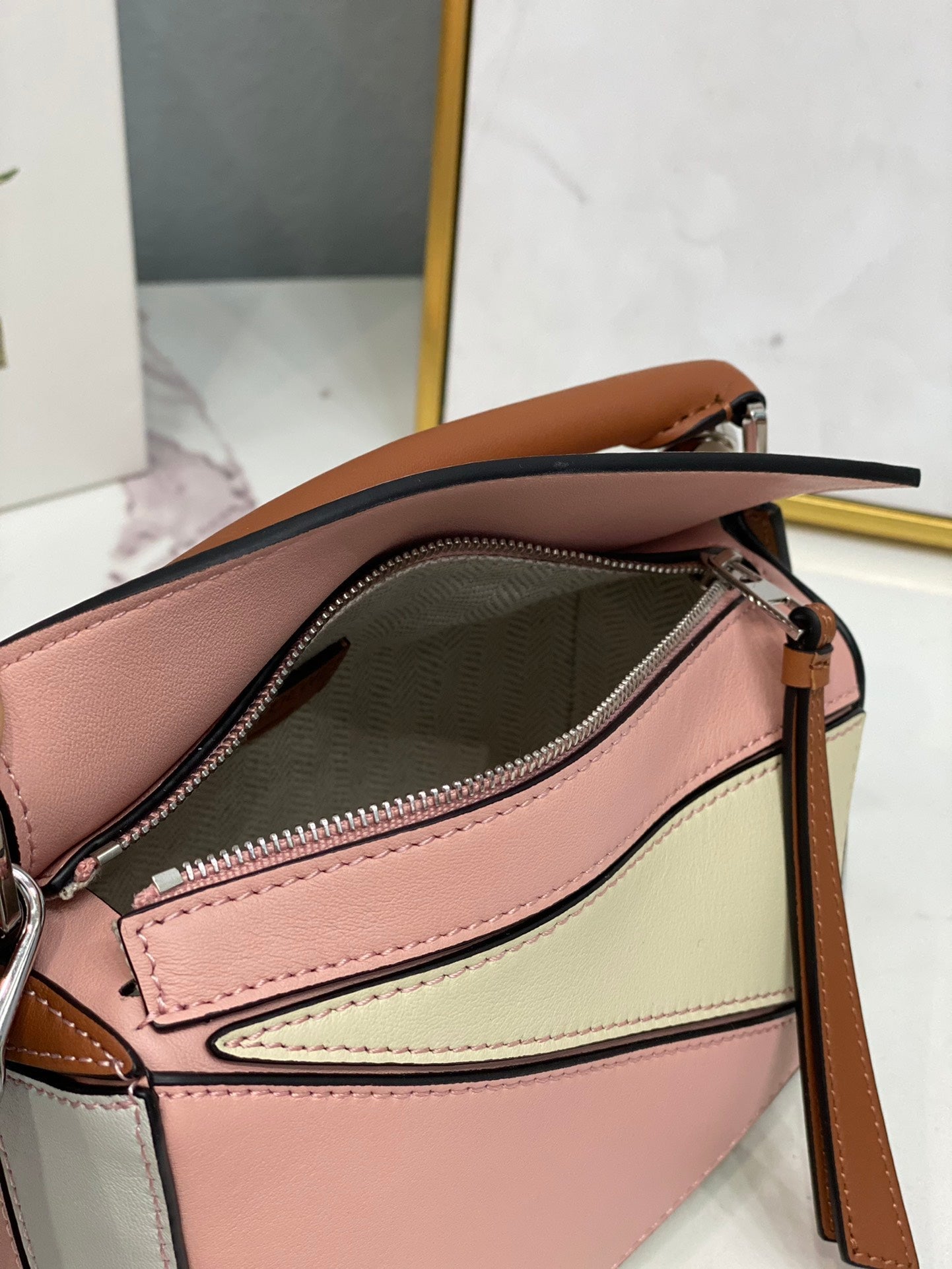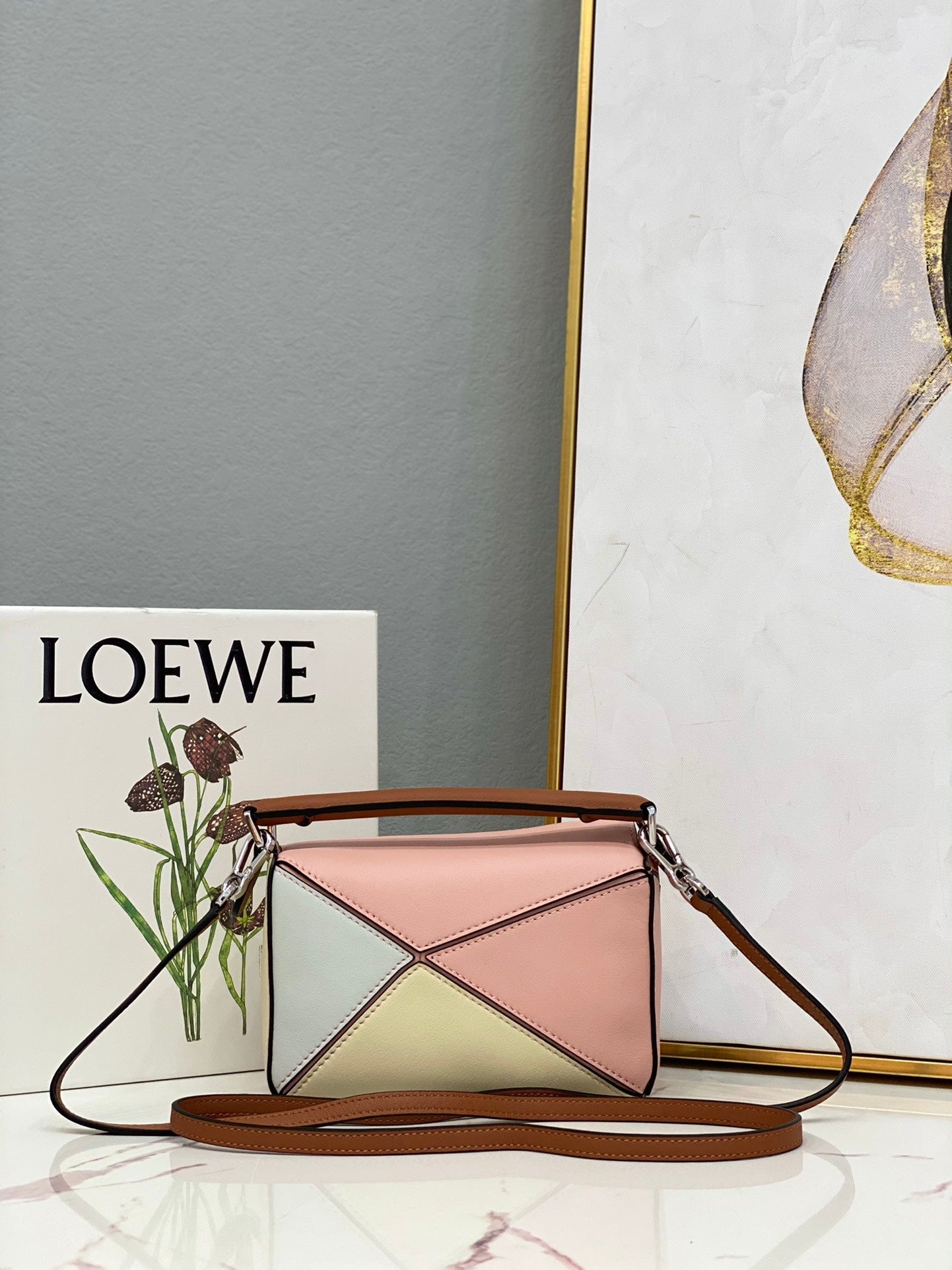 LOE MINI 18 PUZZLE BAG IN LIGHT PINK MIX YELLOW CALFSKIN