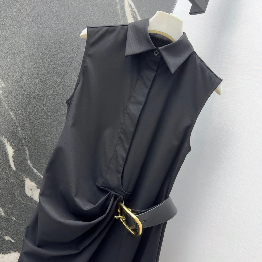 Loewe 25 Drape Sleeveless Dress Black Polyester Fiber