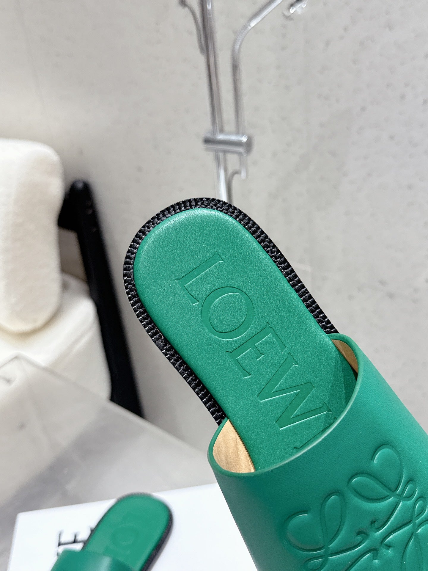 LOEWE 25 FLAT SLIPPERS VIBRANT GREEN CALFSKIN