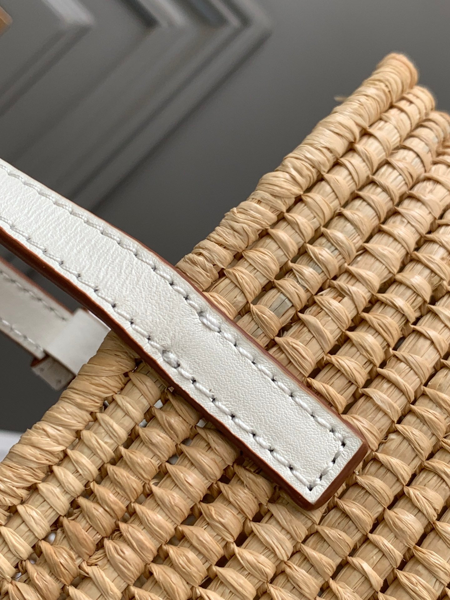 LOEWE 25S BASKET BAG 30 IN NATURAL MIX WHITE RAFFIA CALFSKIN SHOULDER STRAP