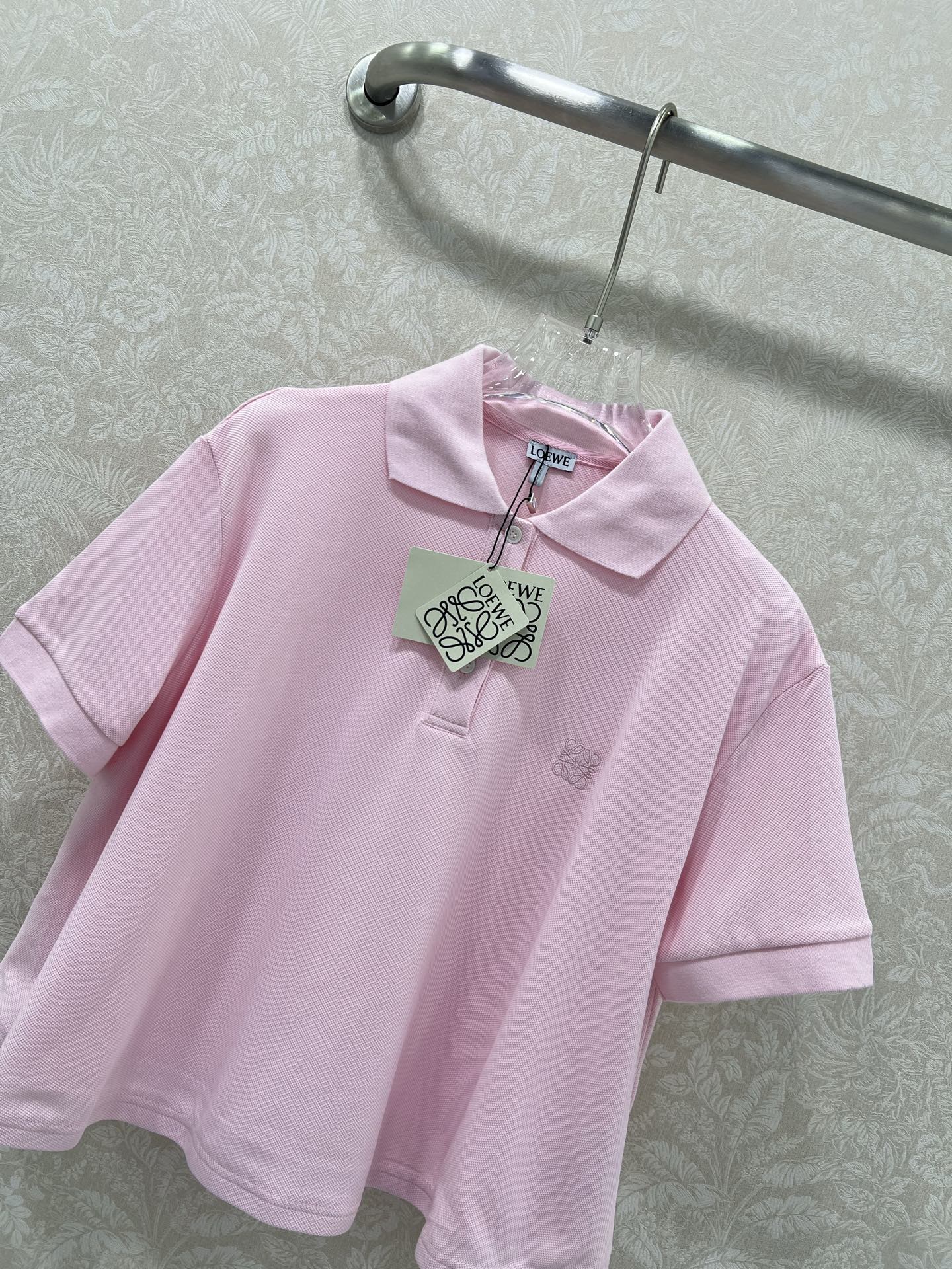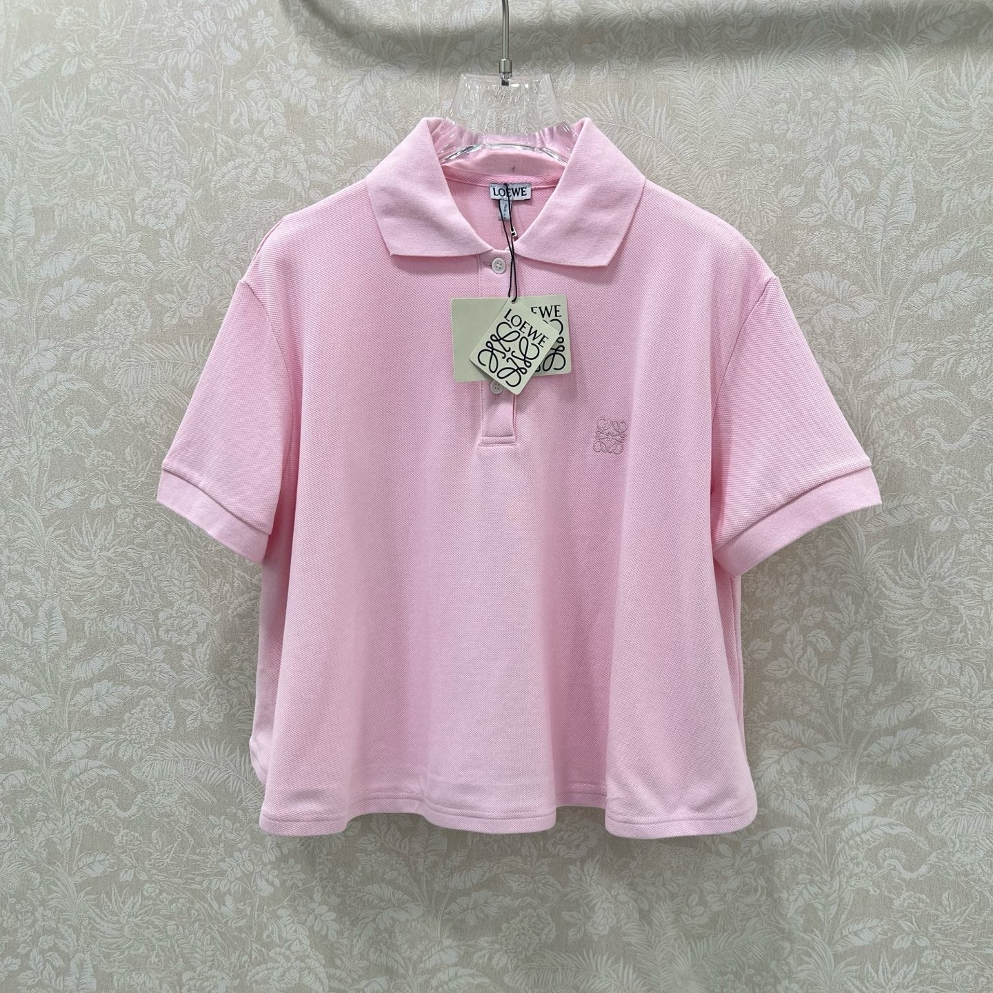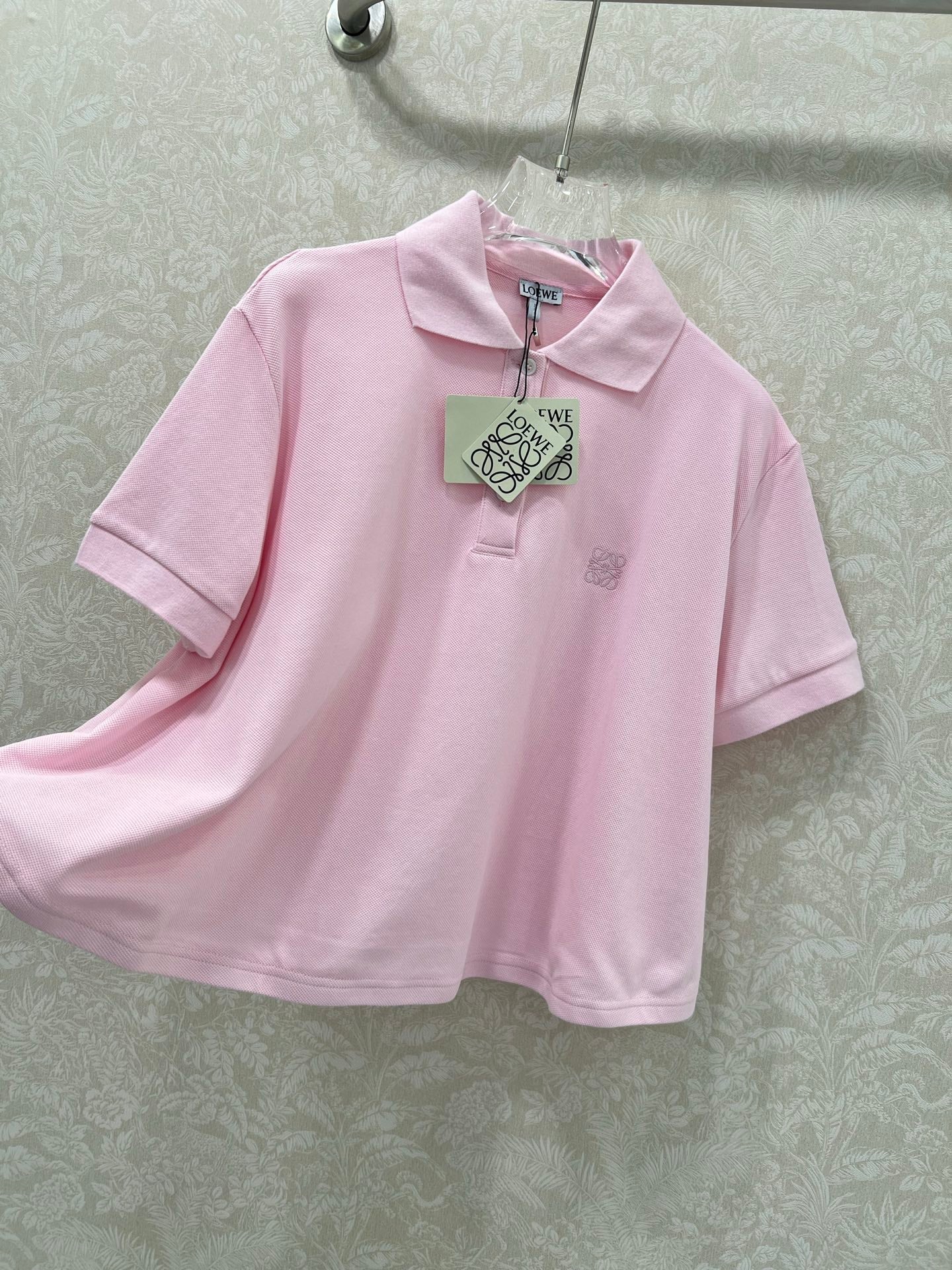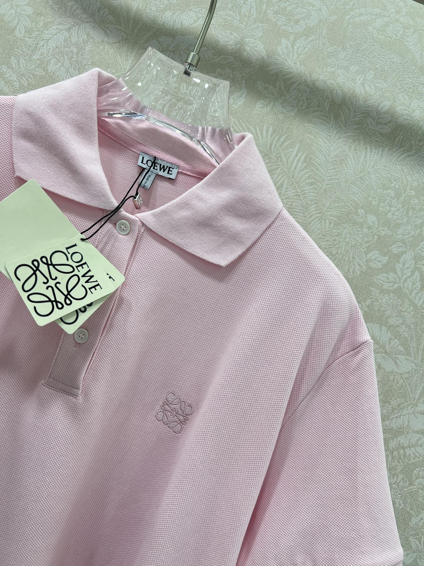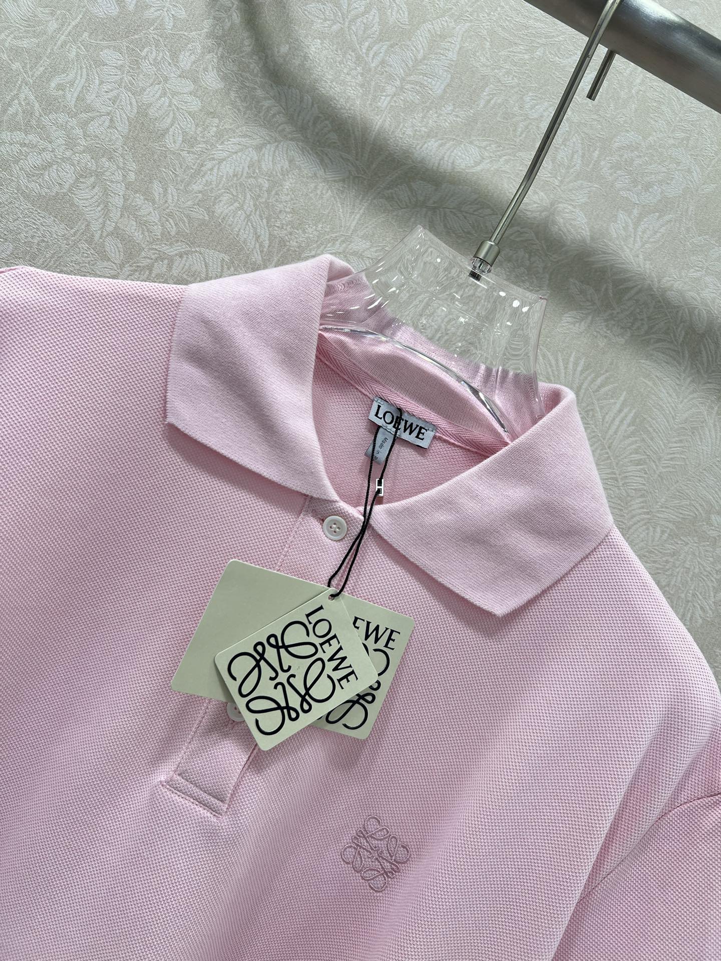 LOEWE OVERSIZED CROPPED POLO SHIRT WITH EMBROIDERED LOGO IN PINK