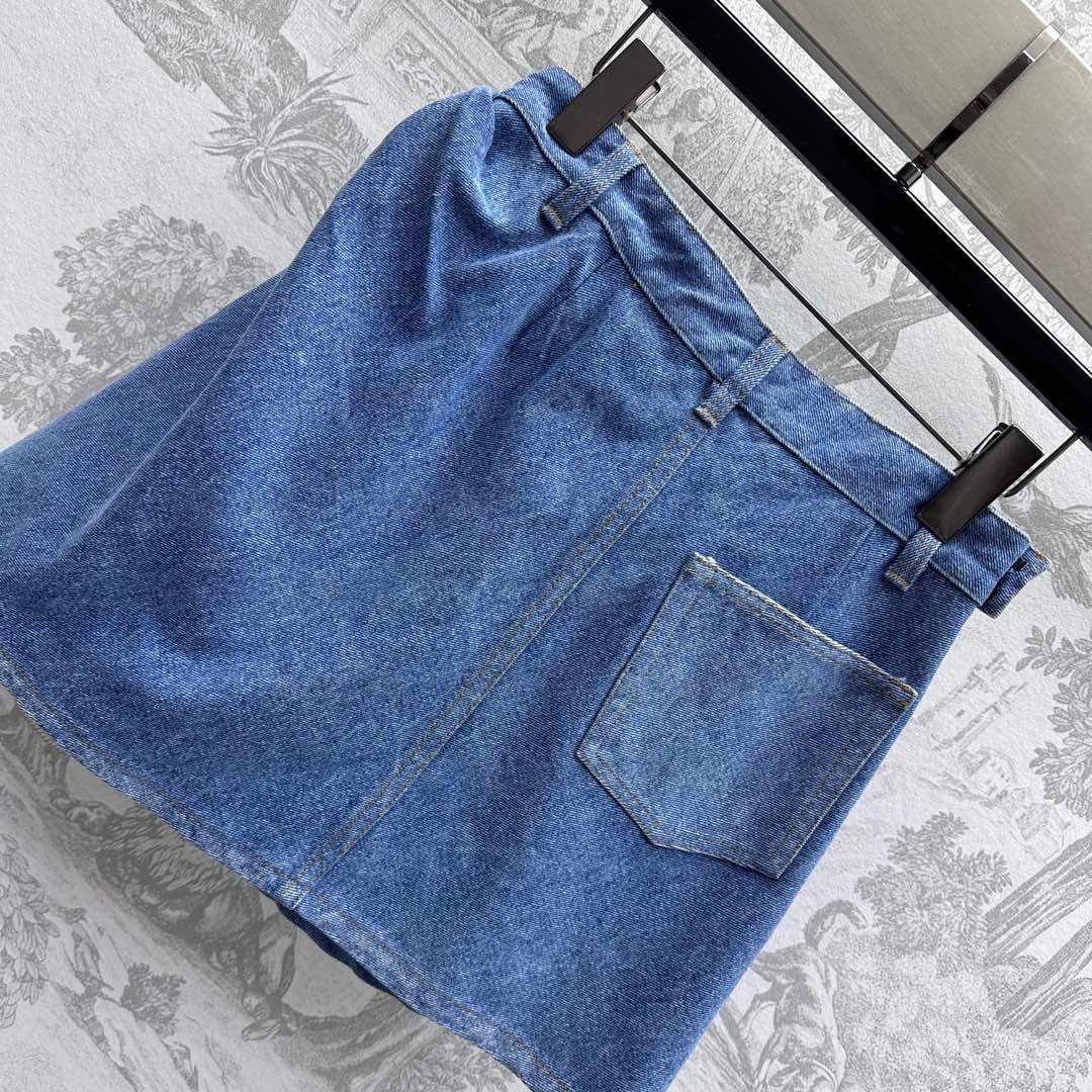 LOEWE RUCHED-WAIST DENIM SKIRT
