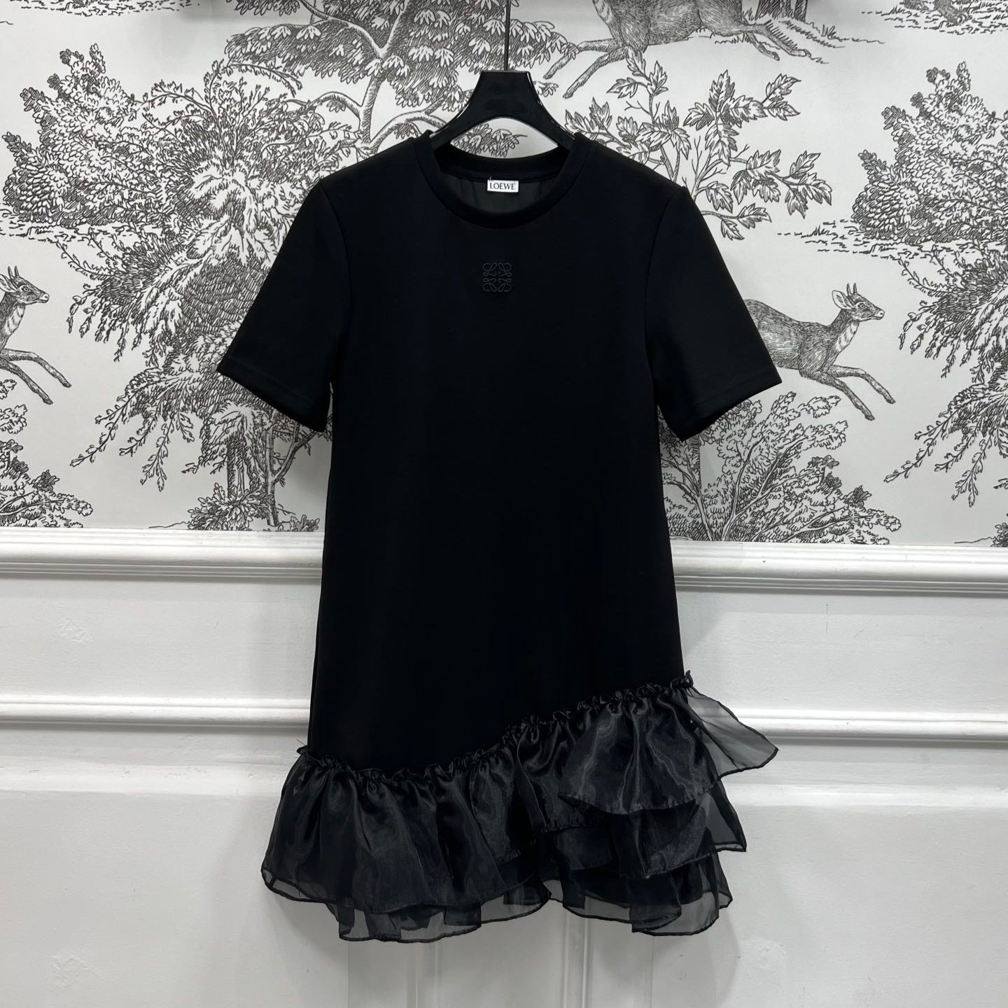 LOEWE SHORT SLEEVE CREW NECK ORGANZA DRESS 268755