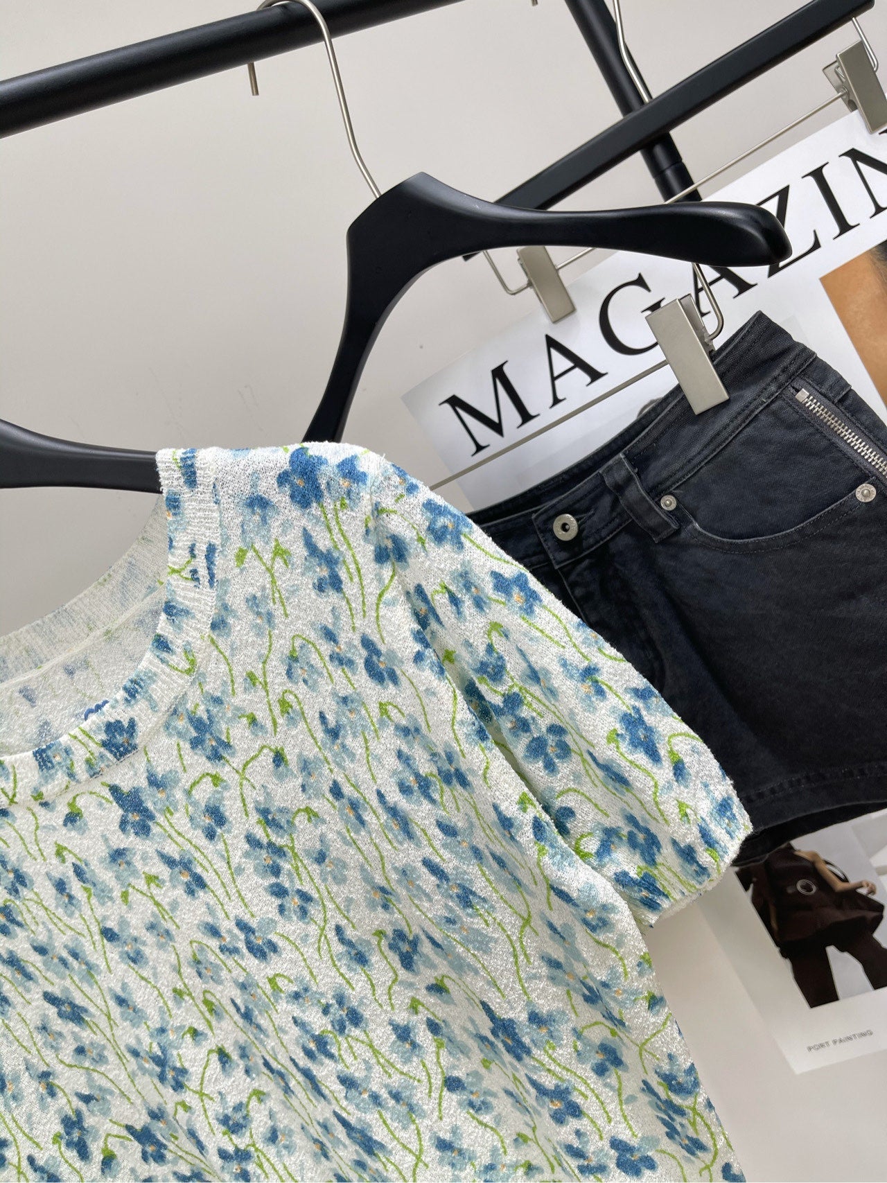 LOEWE SHORT-SLEEVE SWEATER WITH FLORAL KNIT 275922