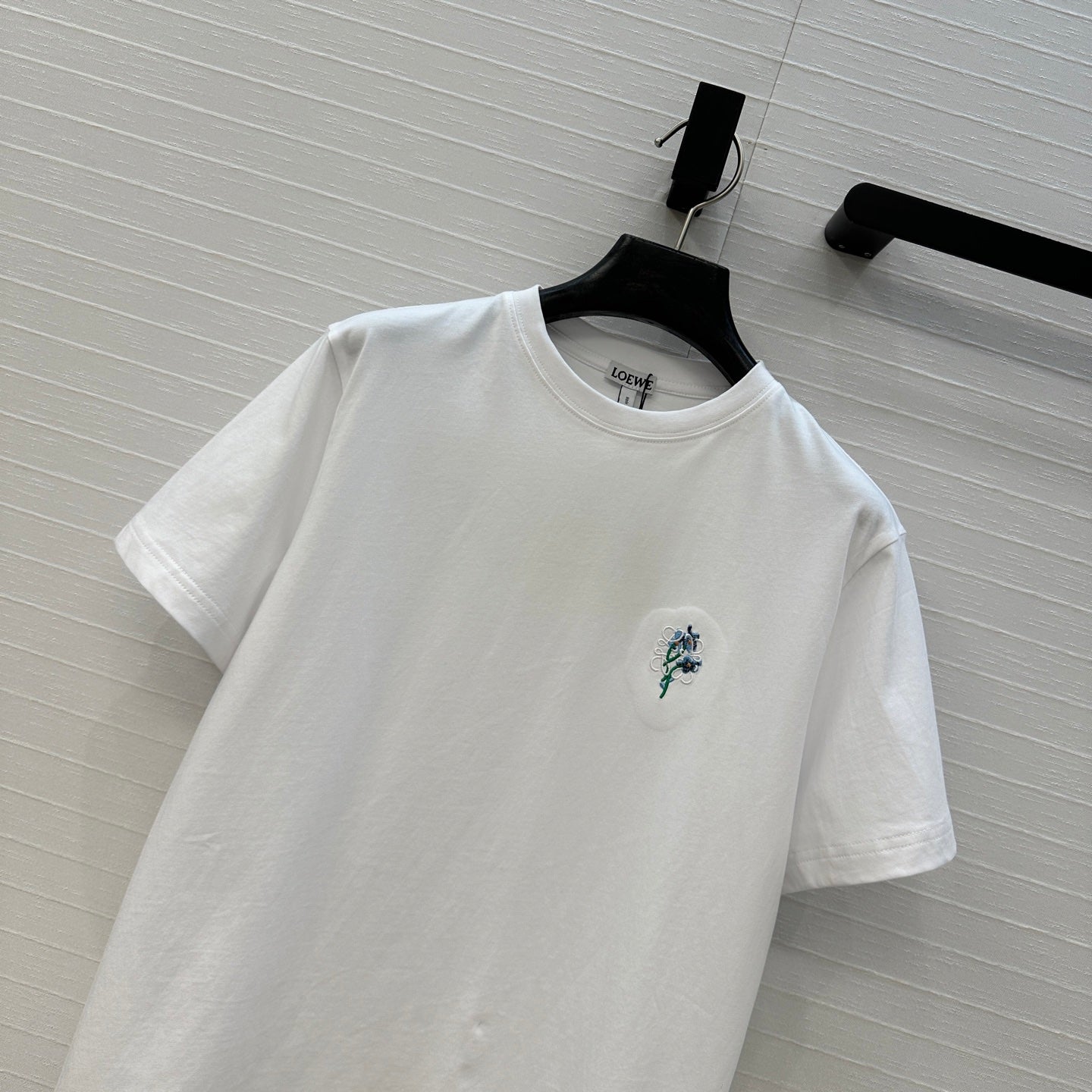LOEWE WHITE EMBROIDERED LOGO T-SHIRT