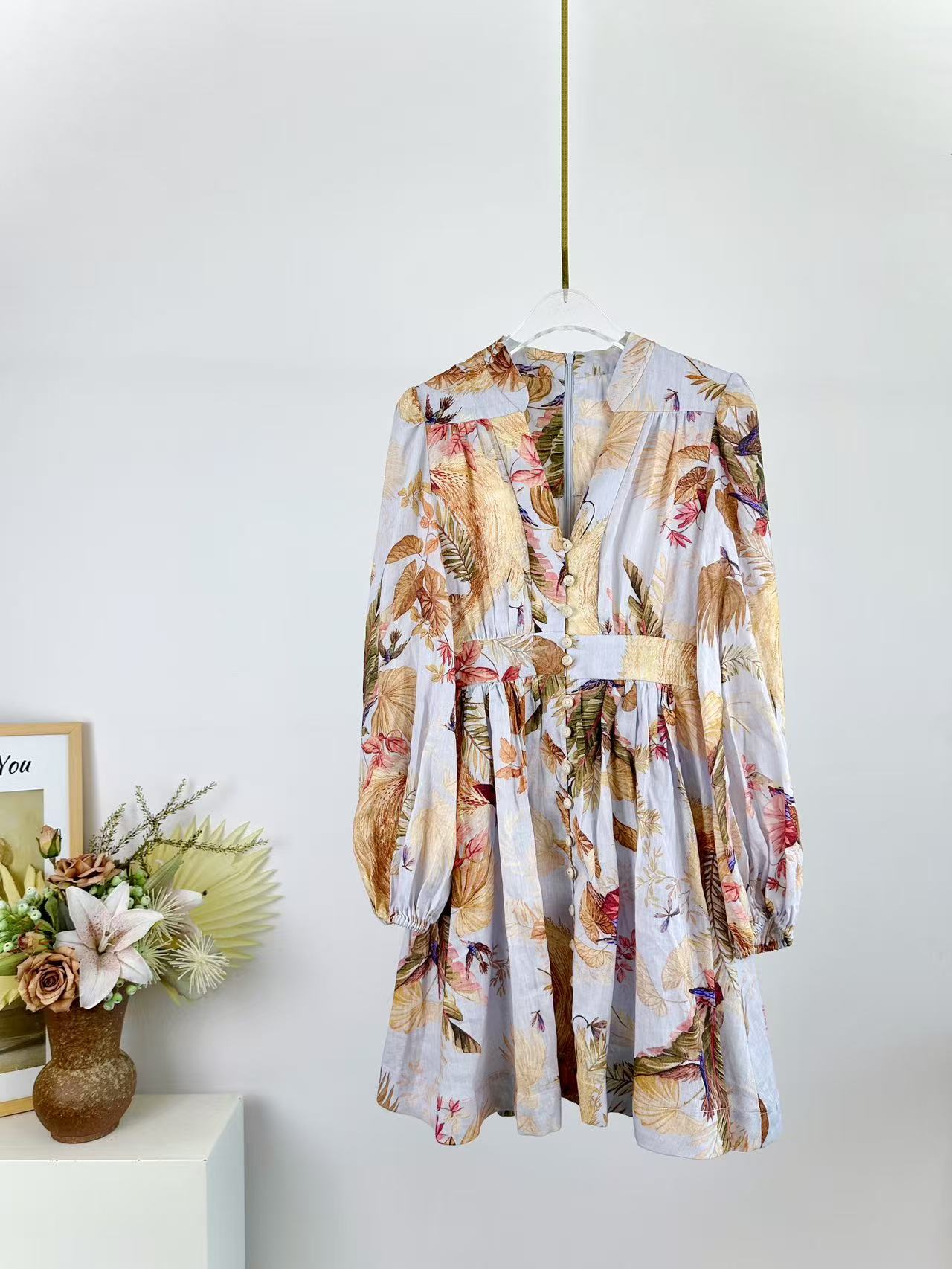 LONG-SLEEVE FLORAL PRINT DRESS