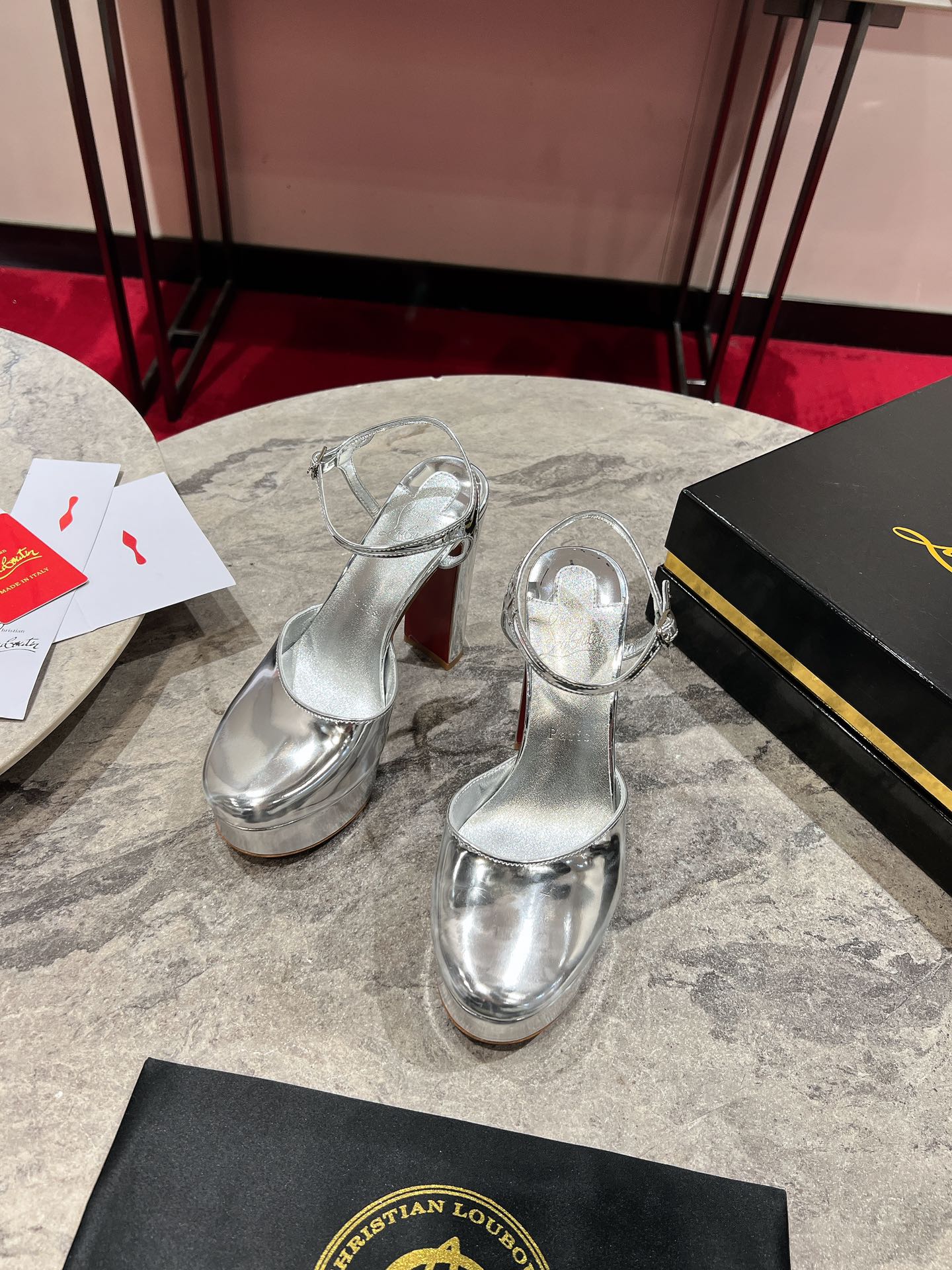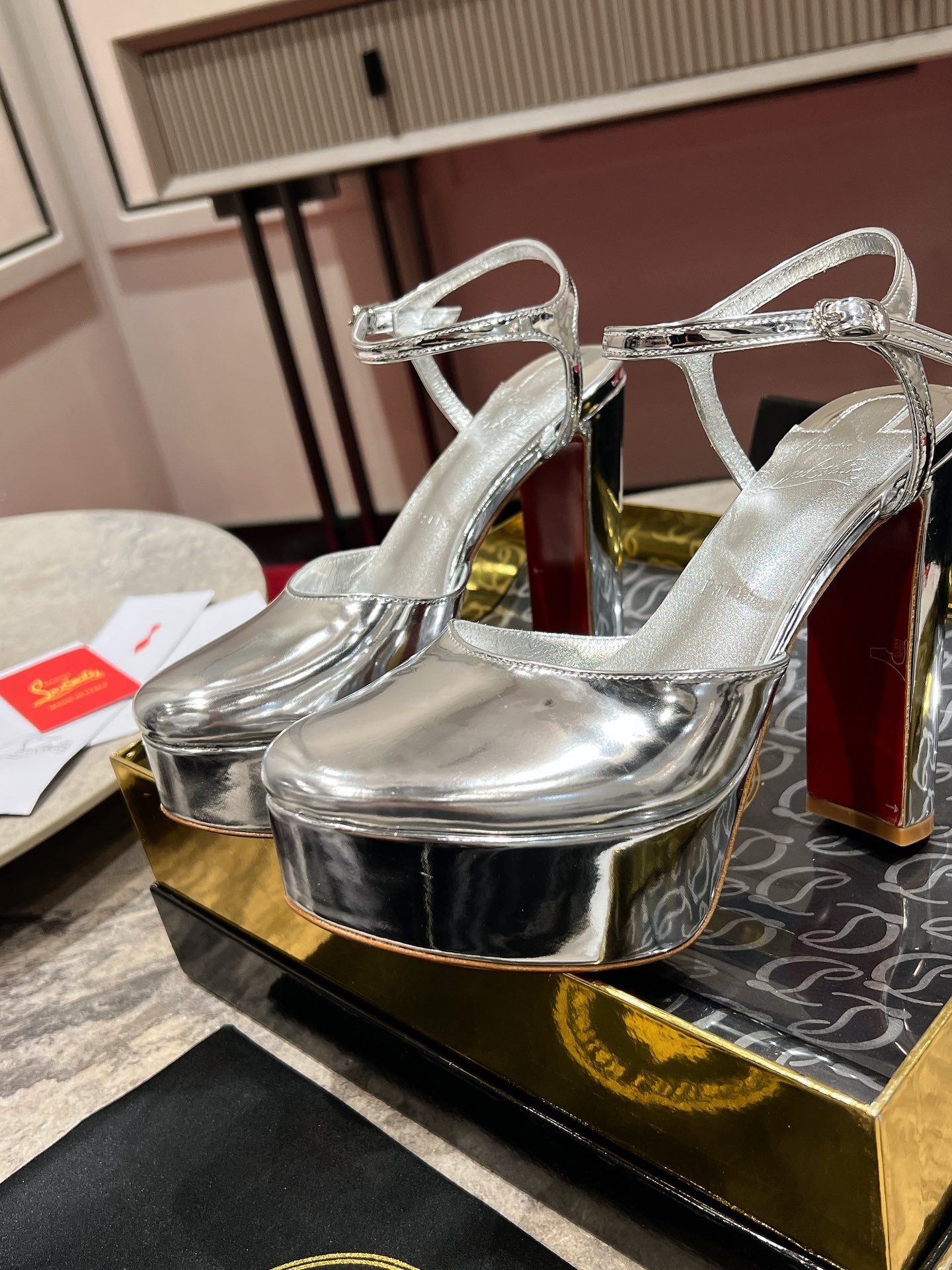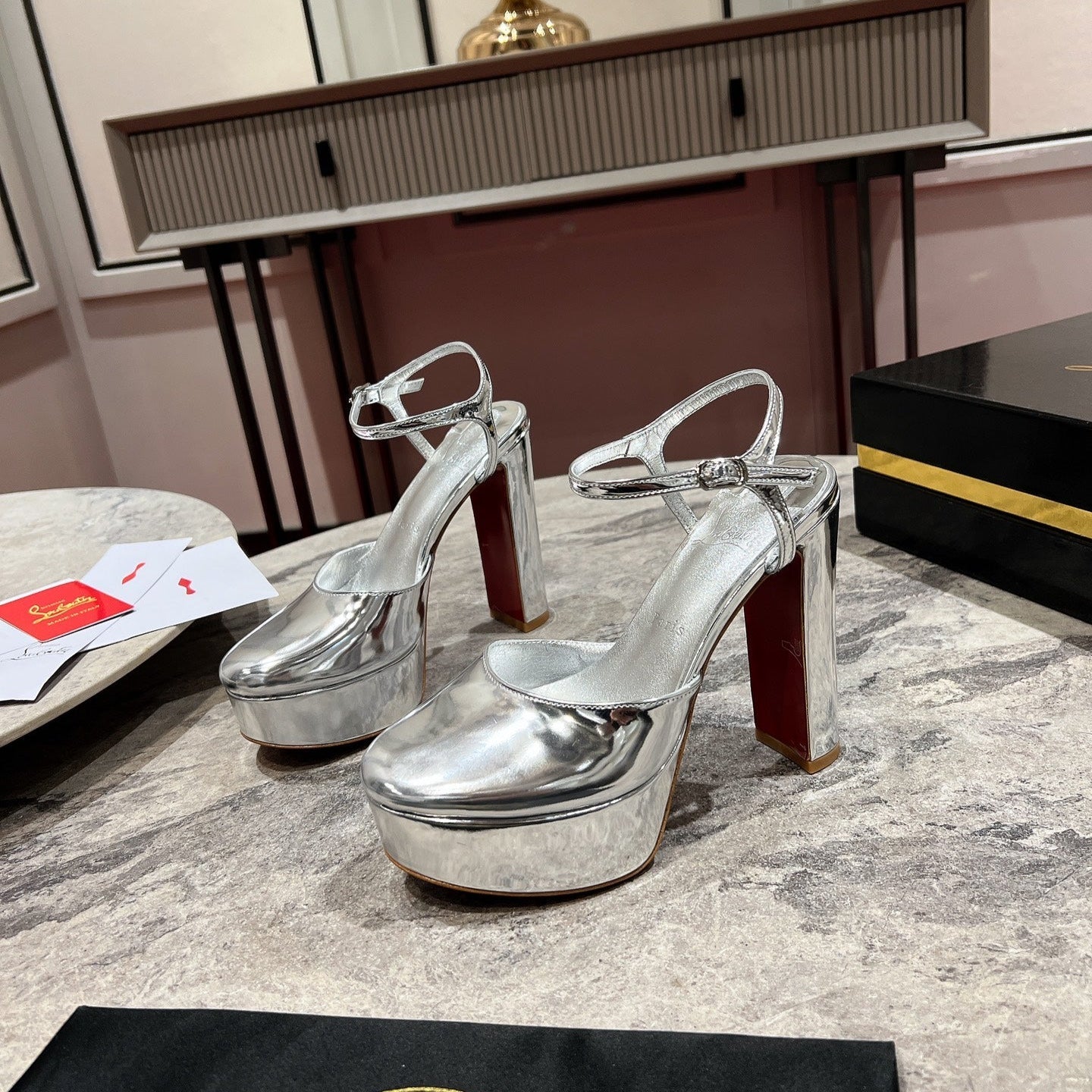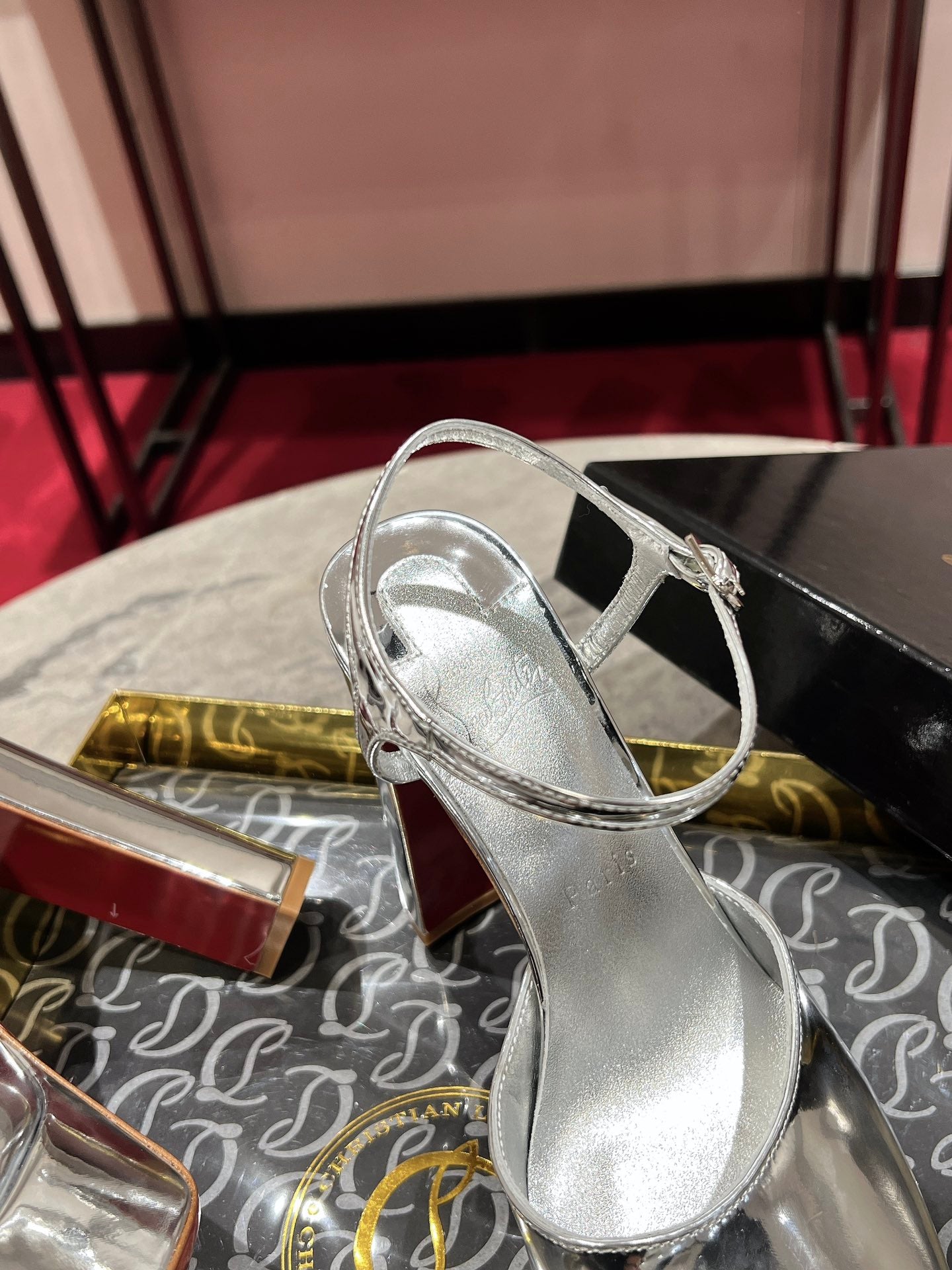 LOO PUMPS 130MM IN SILVER-TONE PATENT CALFSKIN