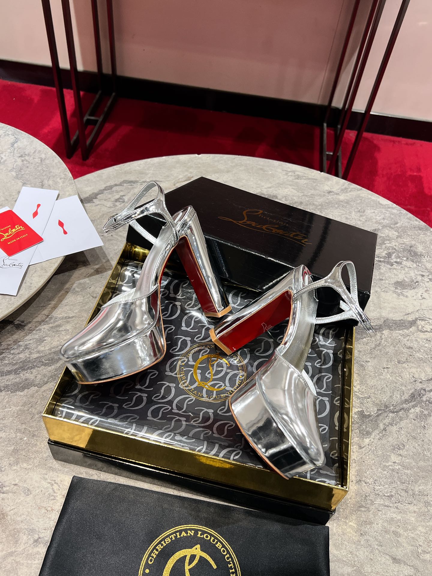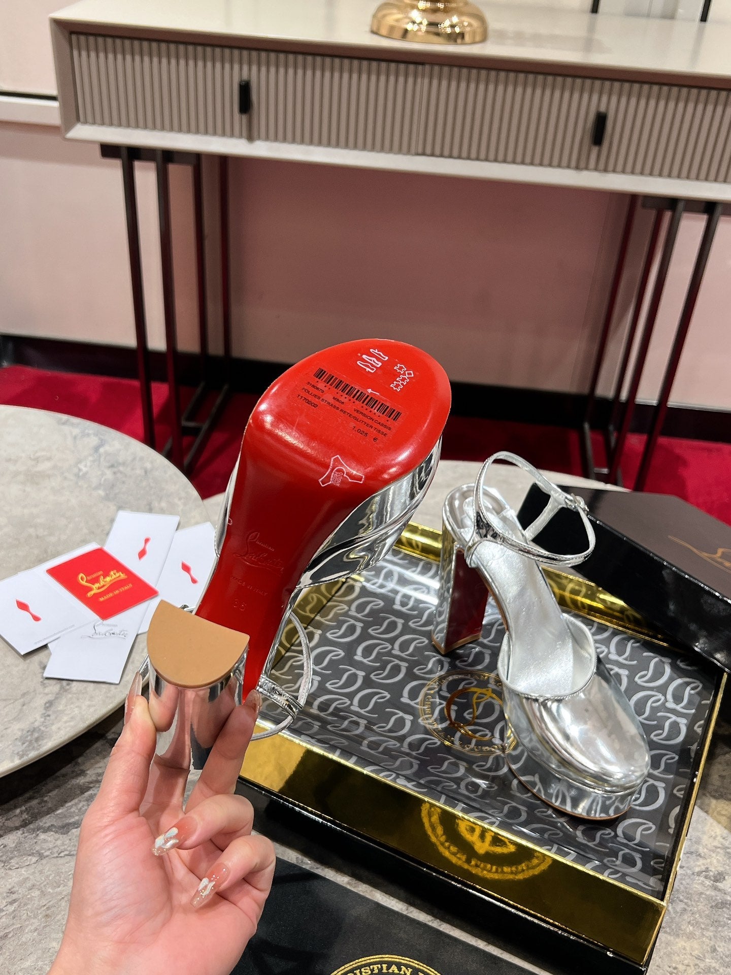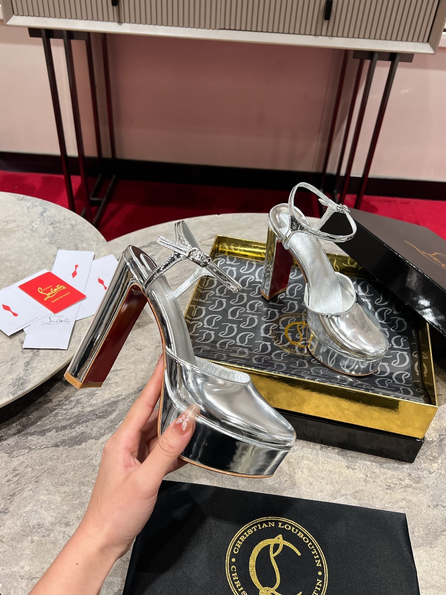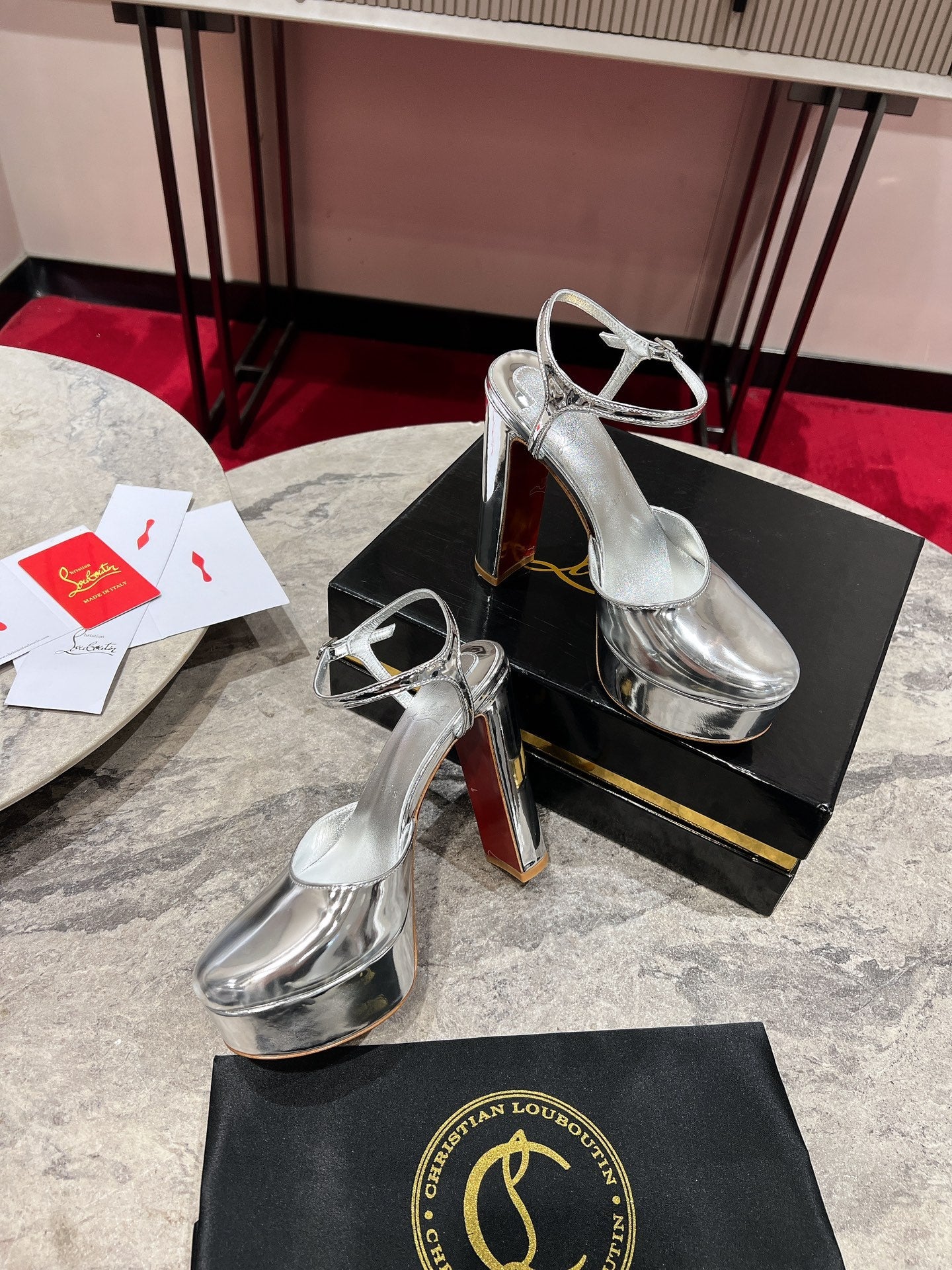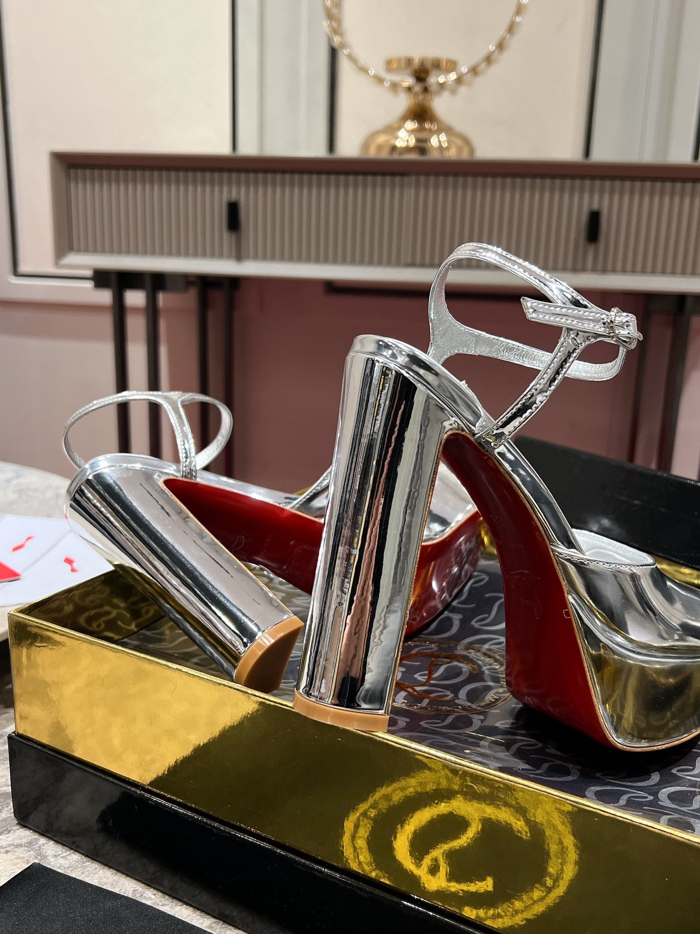 LOO PUMPS 130MM IN SILVER-TONE PATENT CALFSKIN