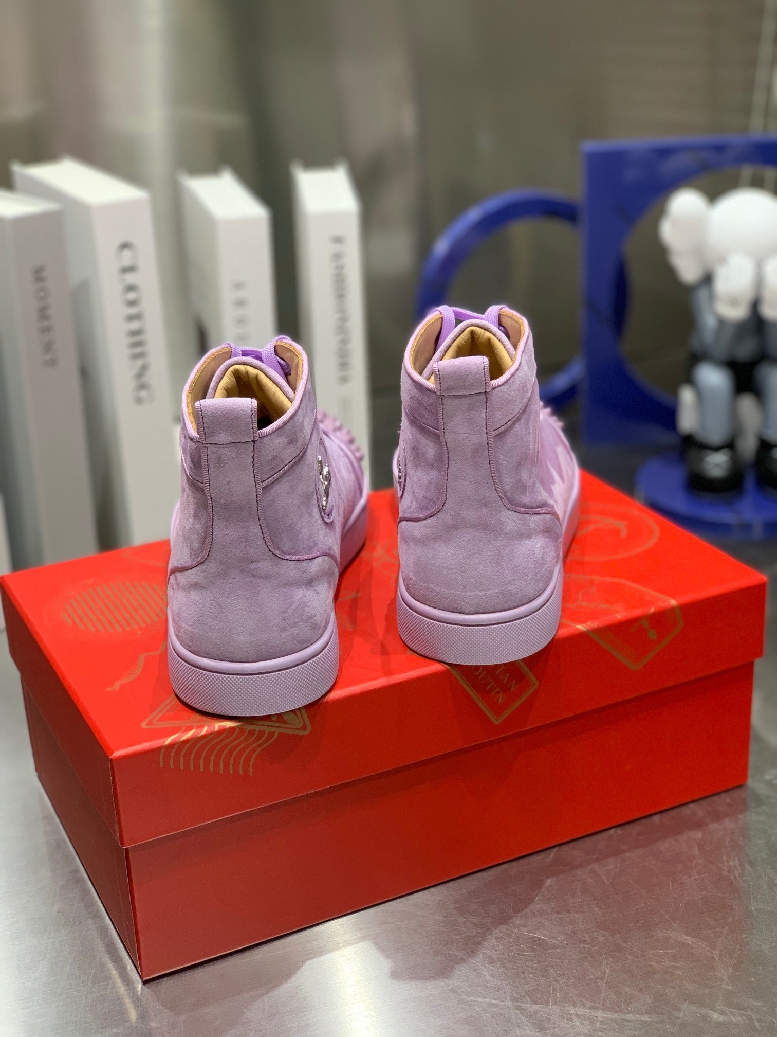 LOU SPIKES STUDDED HIGH-TOP SNEAKERS IN BABY PURPLE SUEDE