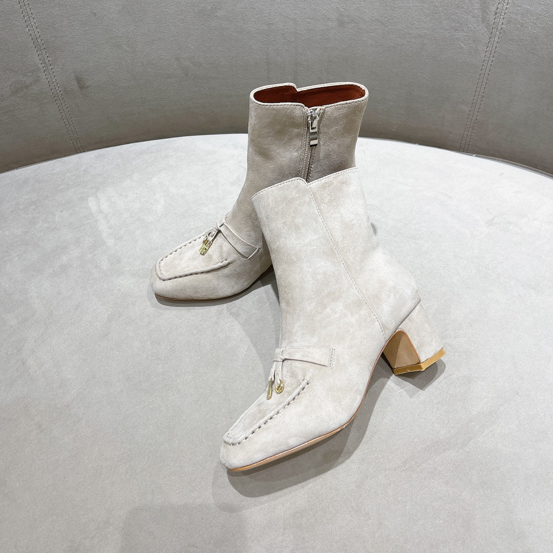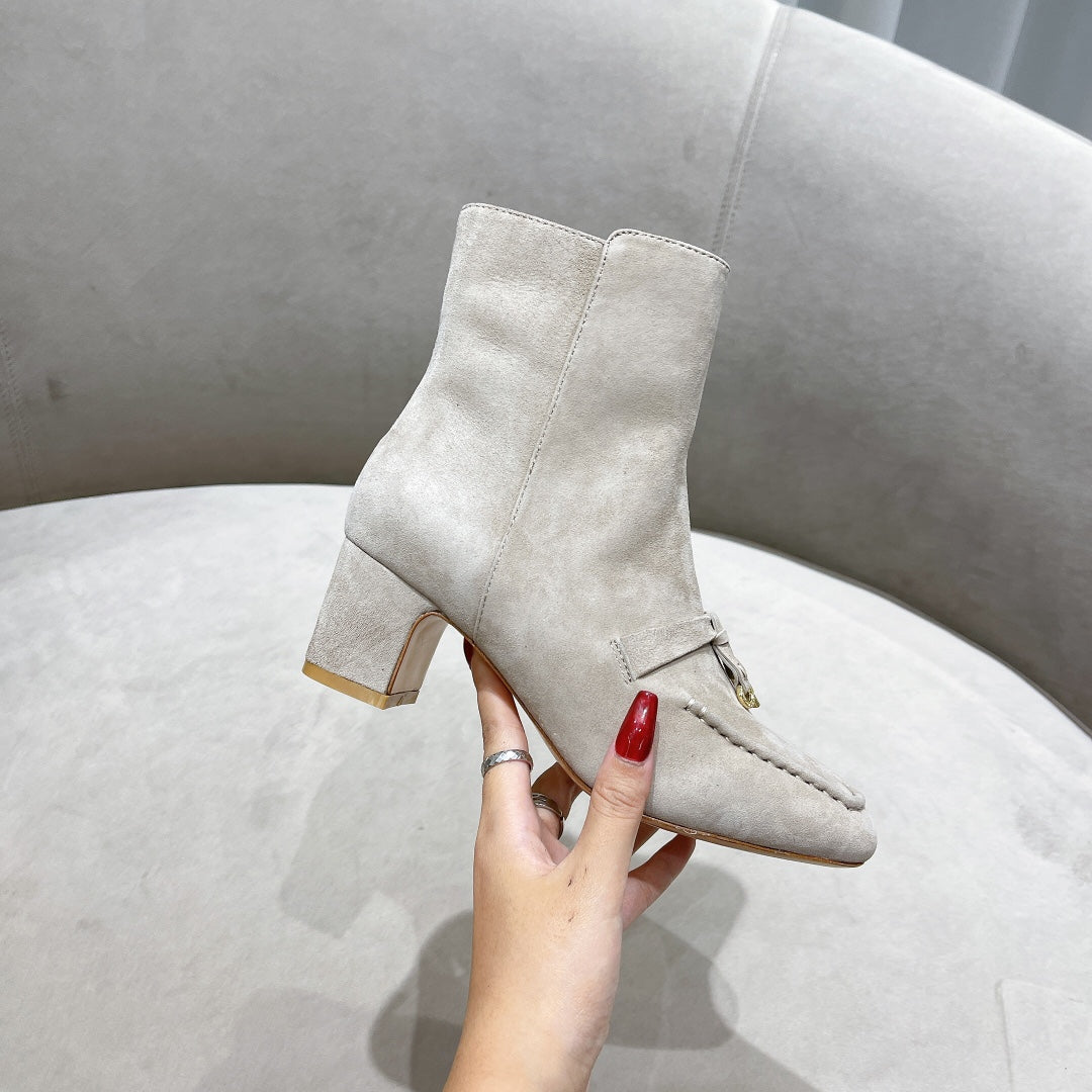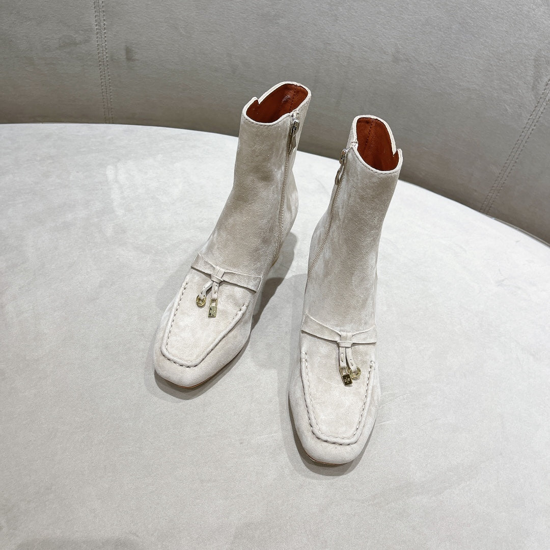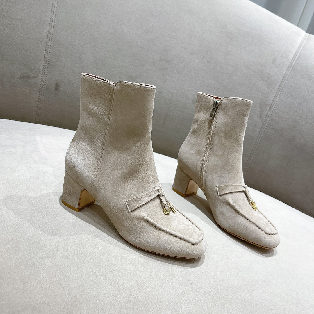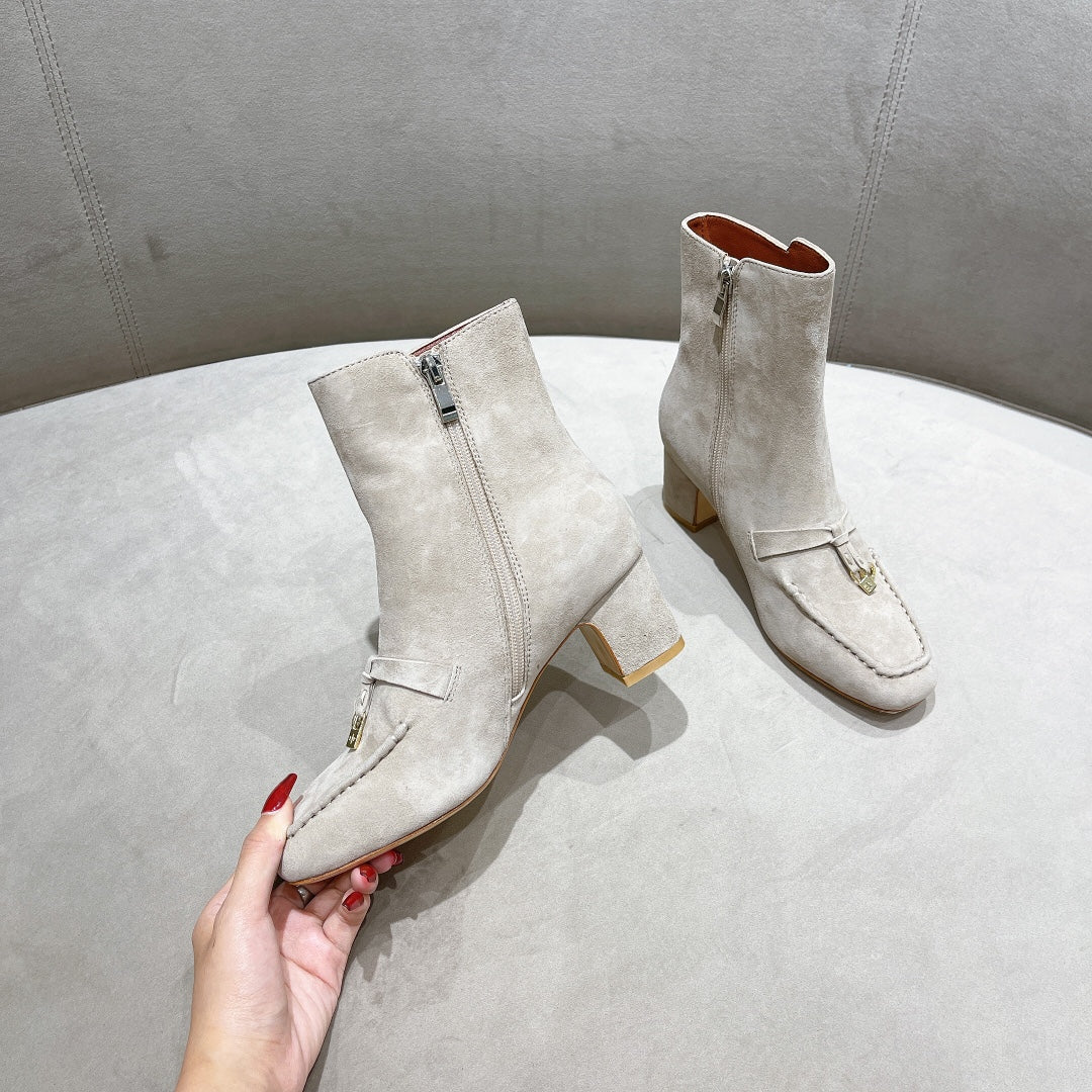 LP CHARMS ANKLE BOOTS METAL LOCK LIGHT GRAY SUEDE