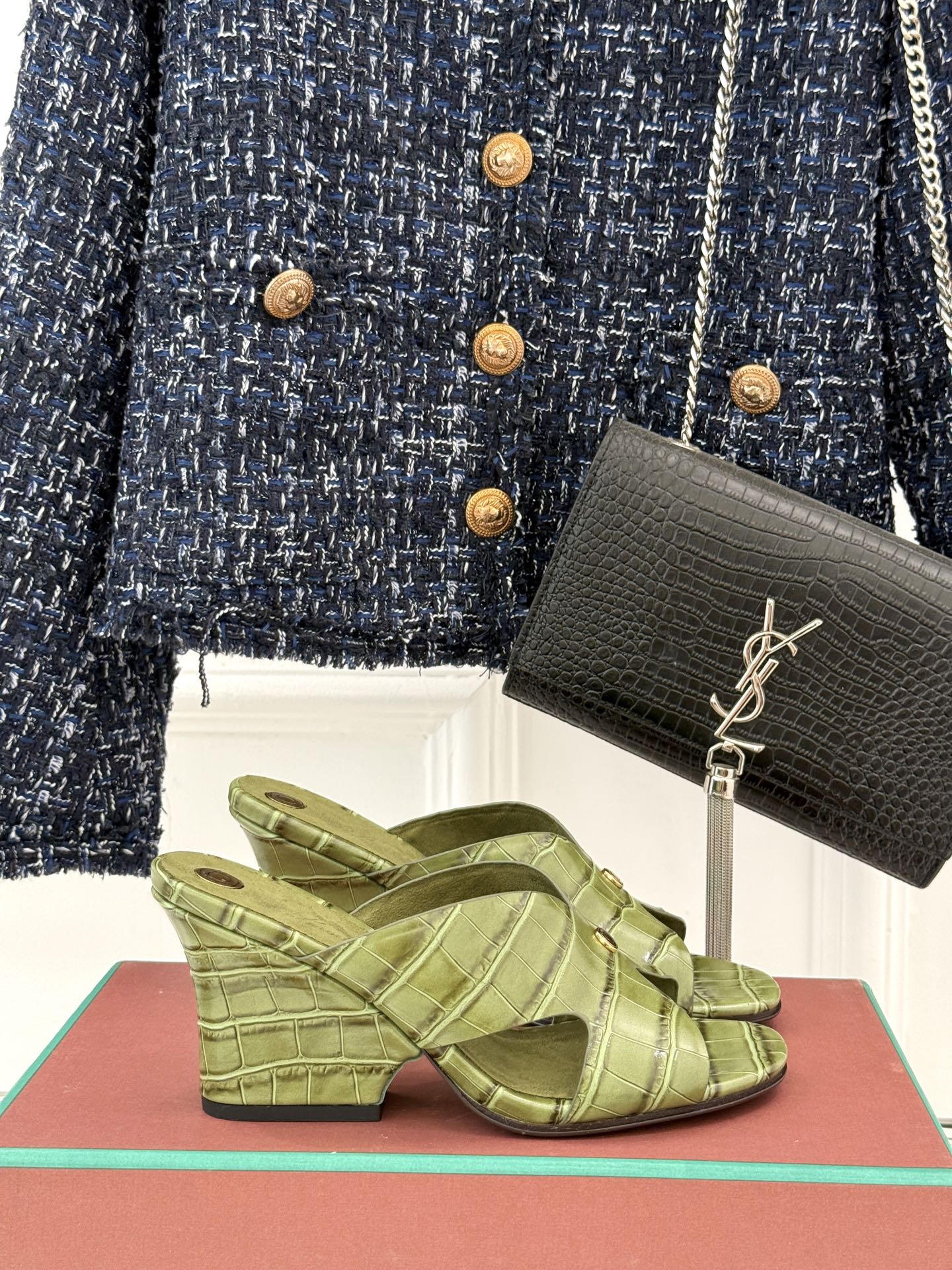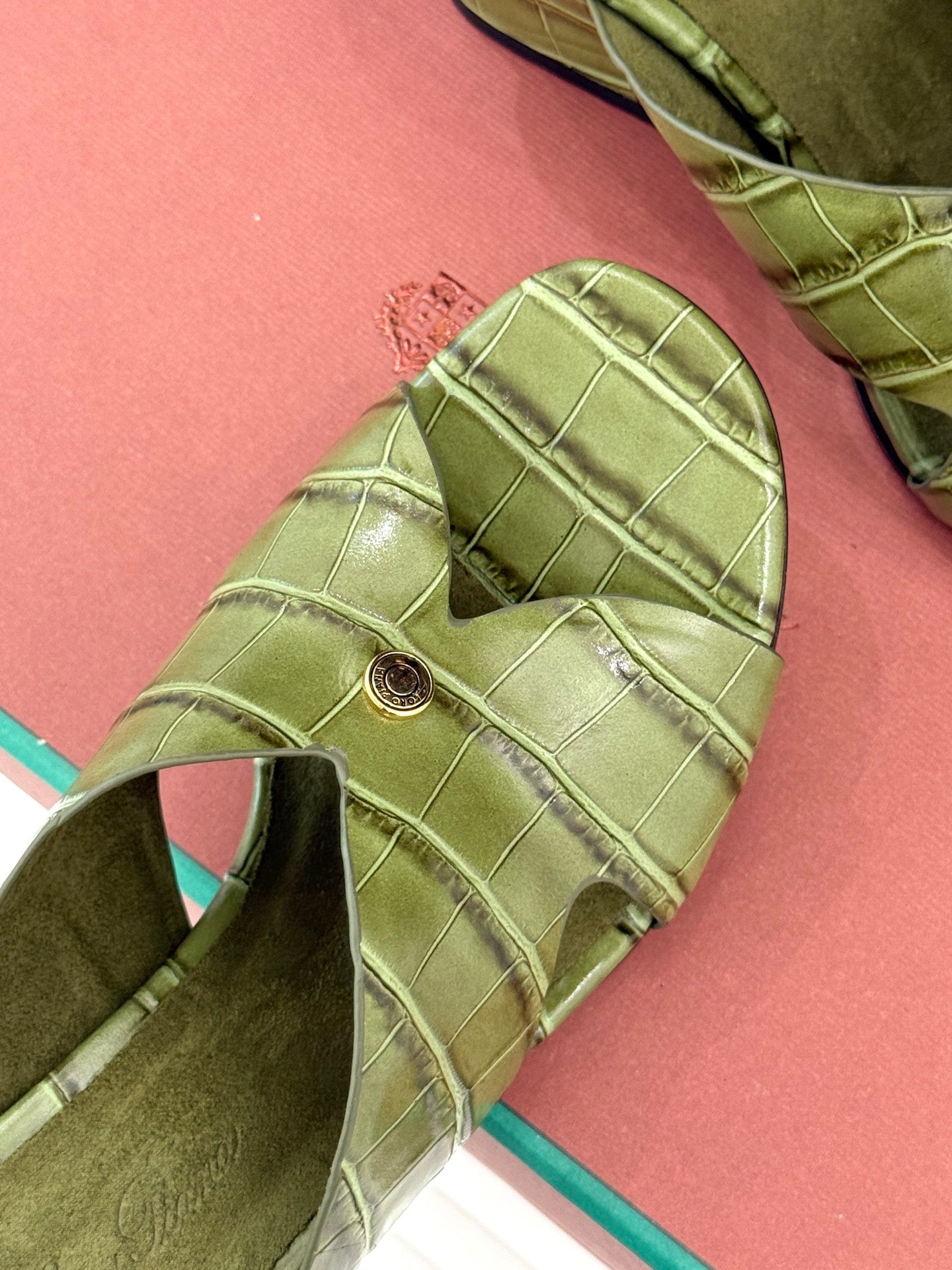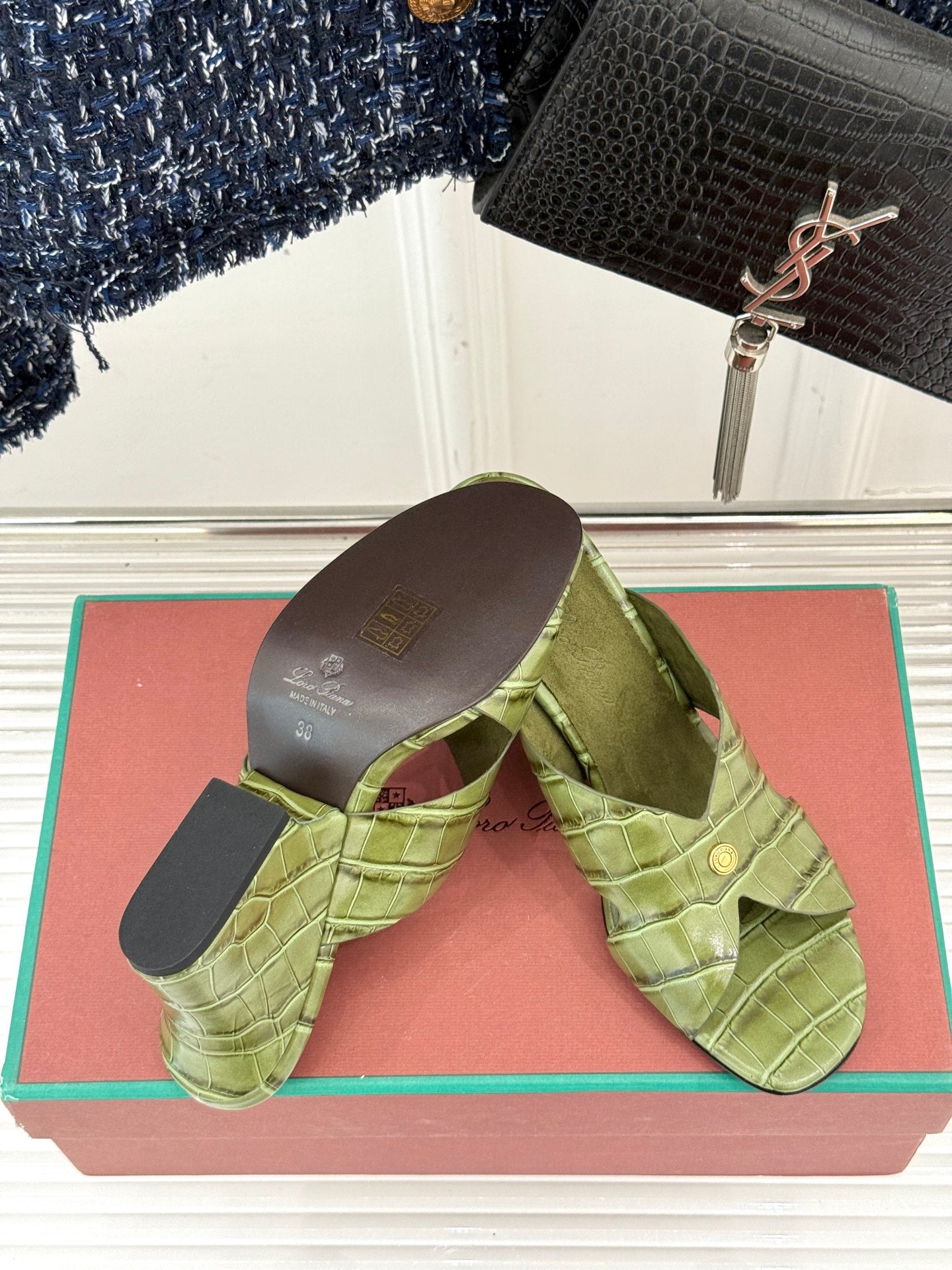LP HIGH HEEL 25S IN MOSS GREEN LAMBSKIN SNAKE EMBOSSING