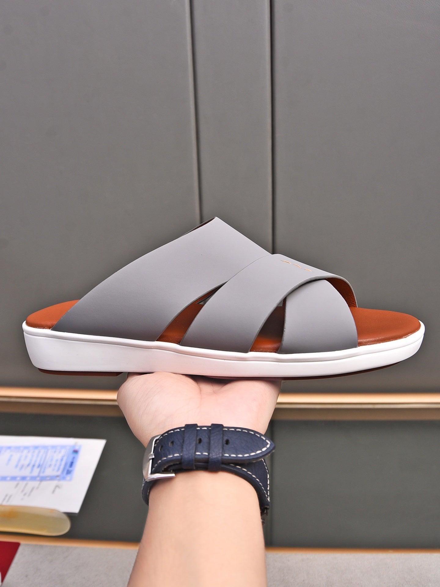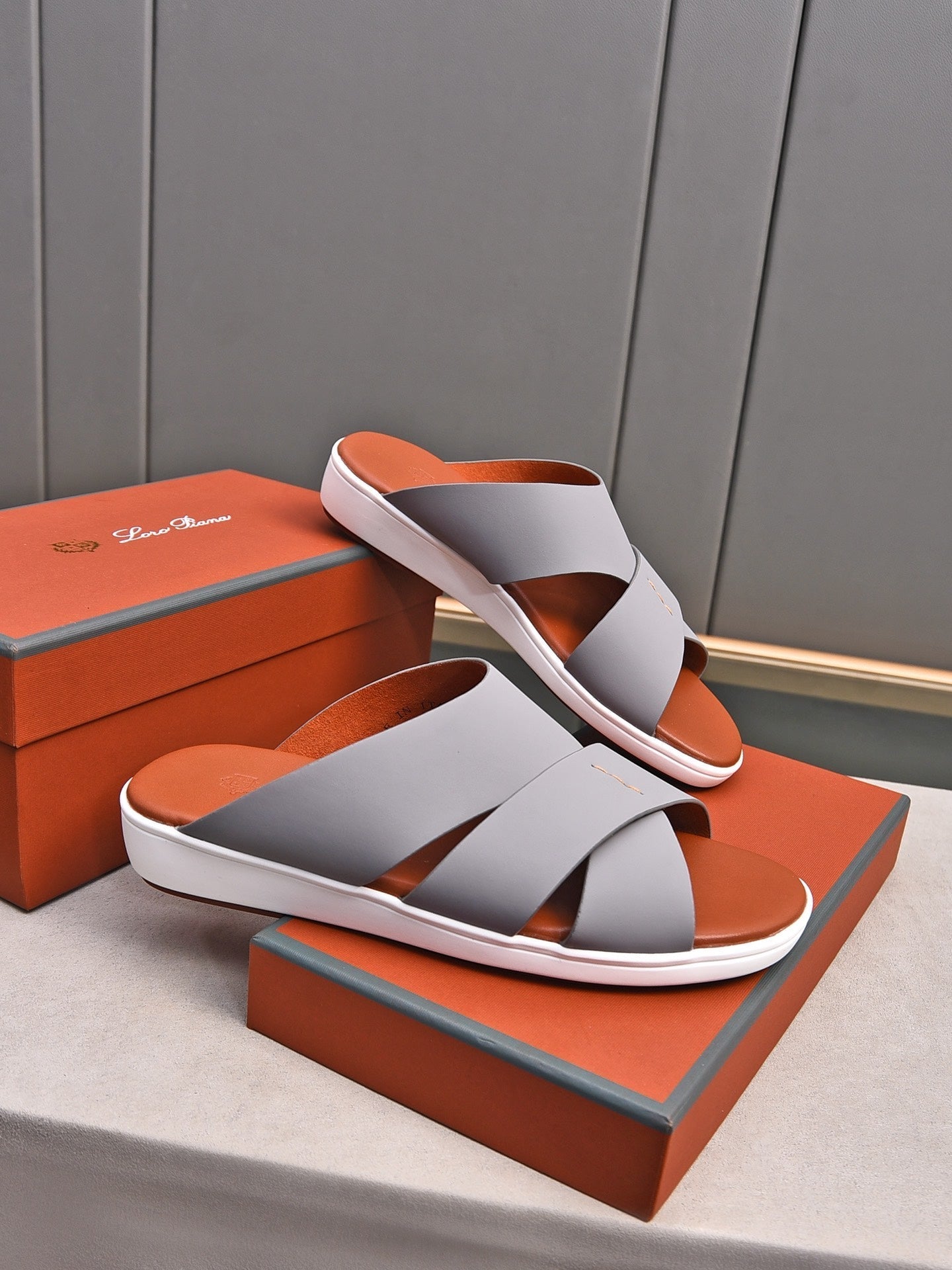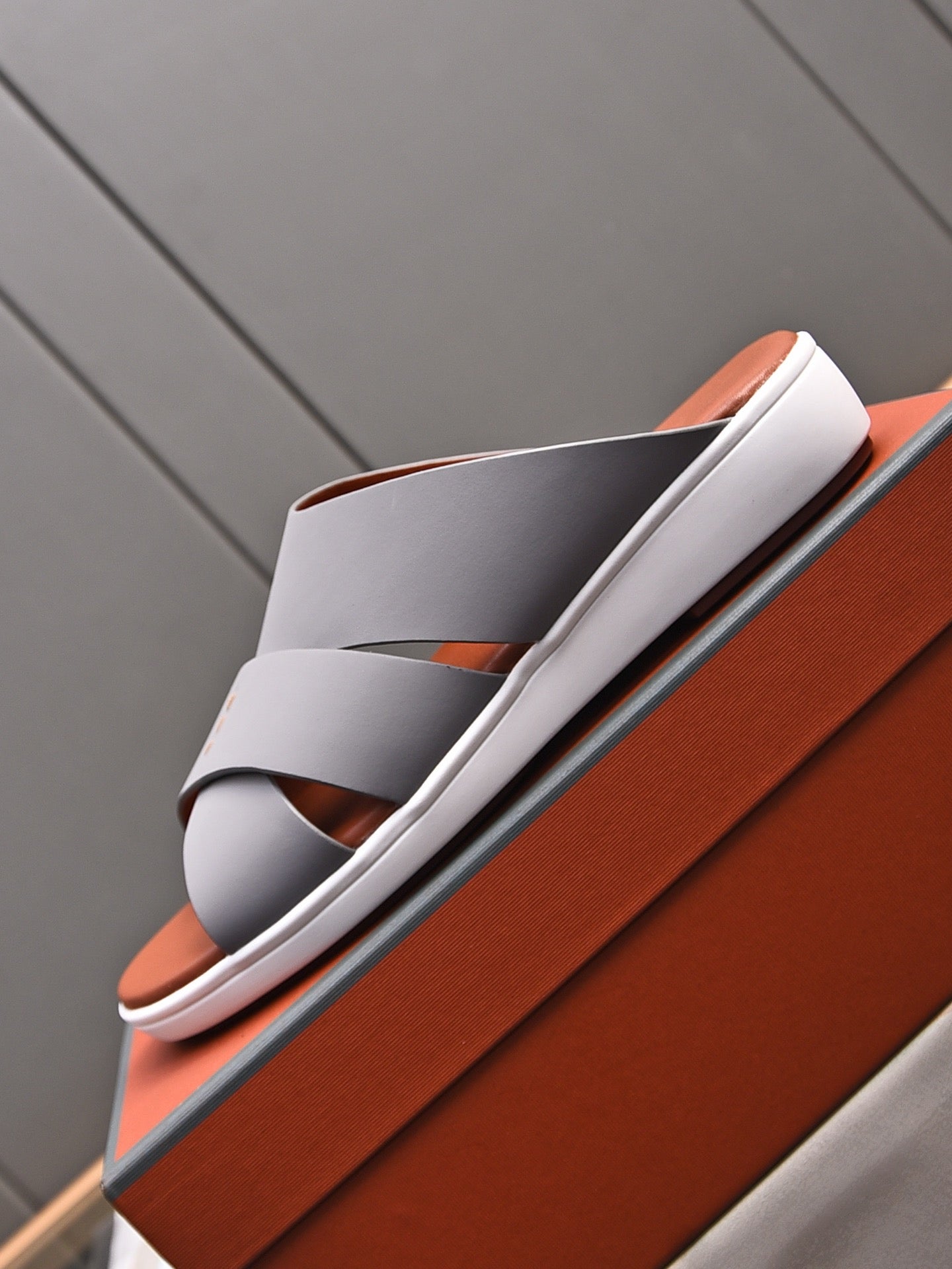 LP INTERWOVEN STRAPS SLIPPERS LIGHT GRAY CALFSKIN