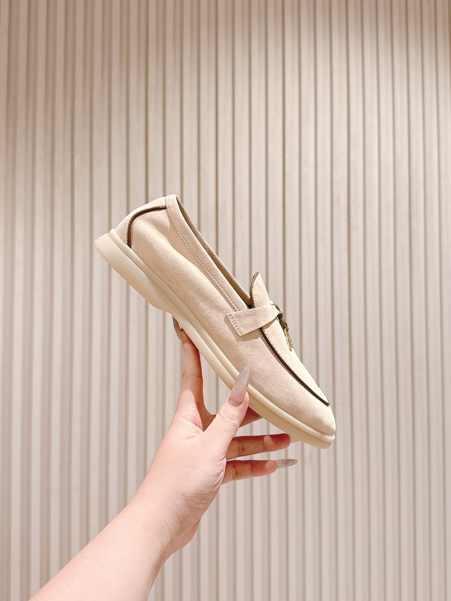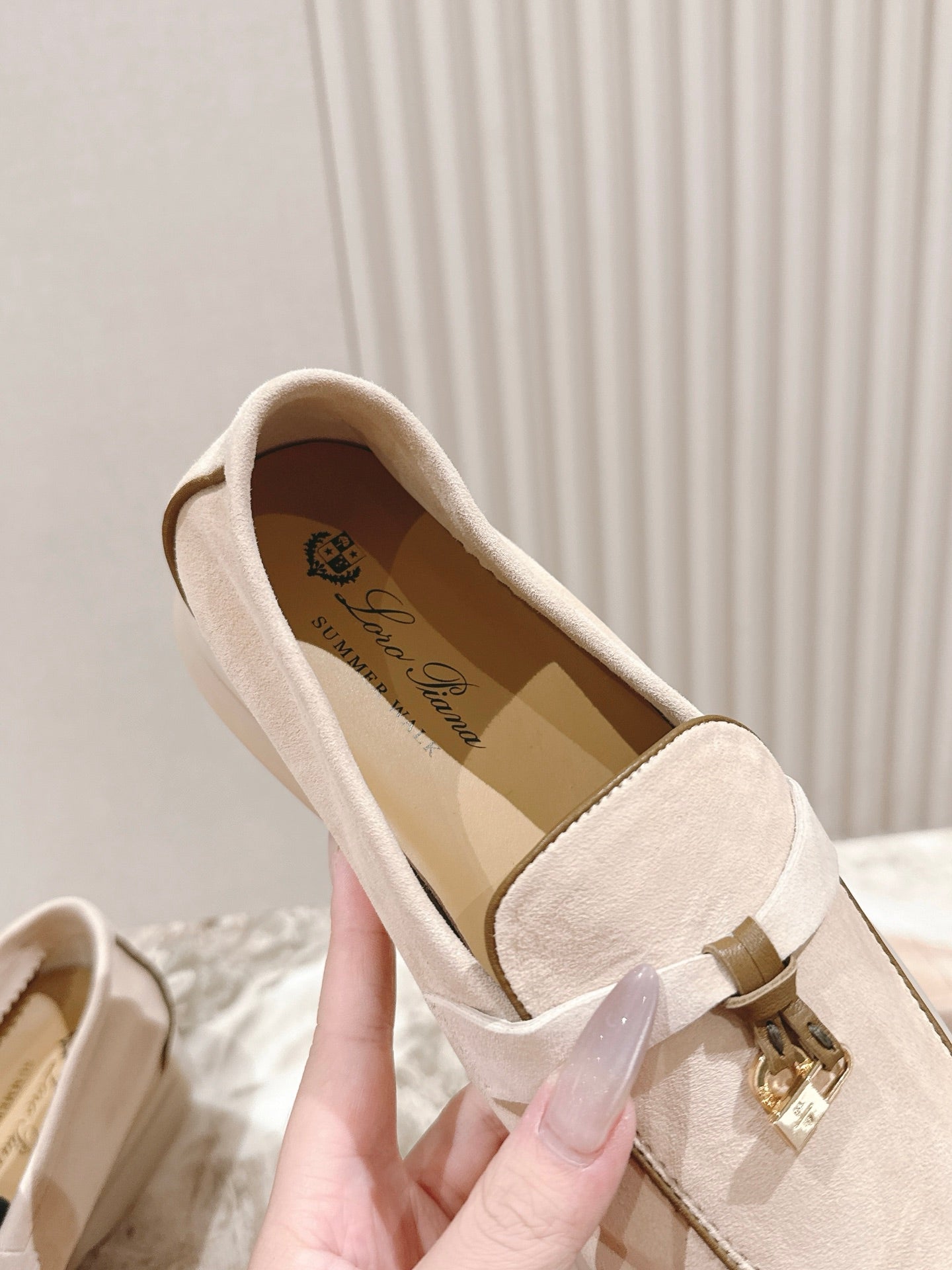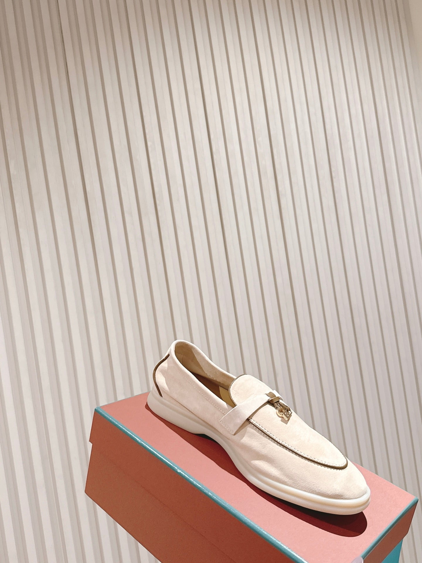 LP LOAFERS 25S IN CHAMPAGNE BEIGE SUEDE WITH SILVER HARDWARE
