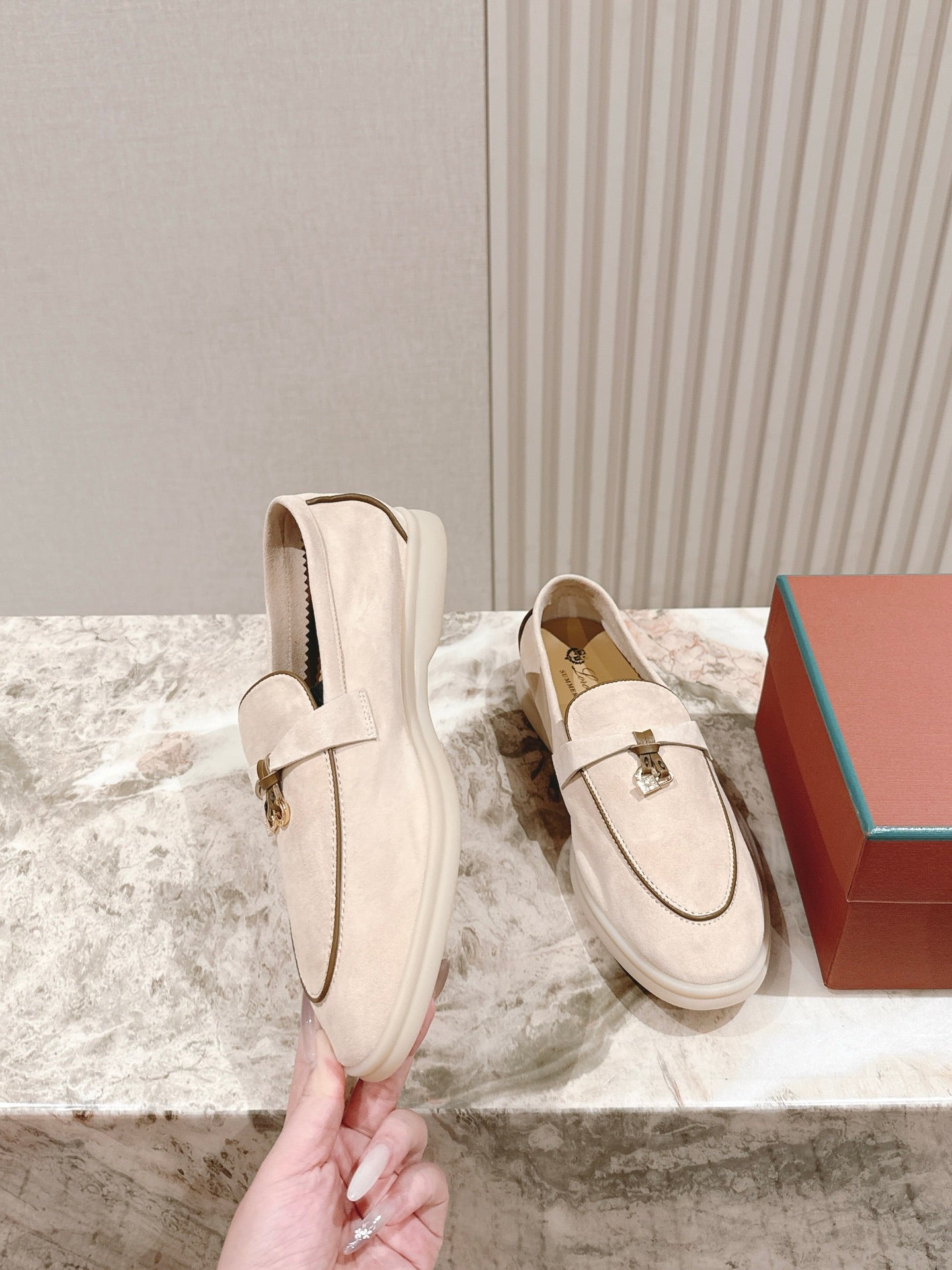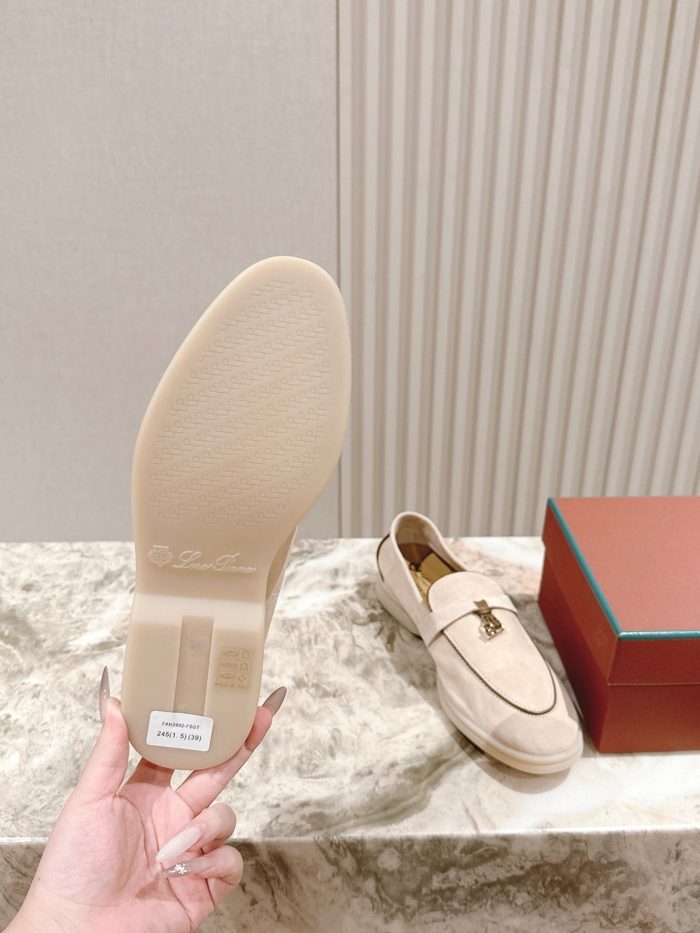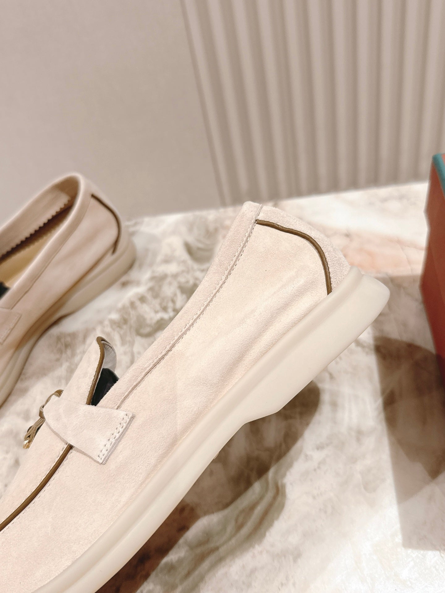 LP LOAFERS 25S IN CHAMPAGNE BEIGE SUEDE WITH SILVER HARDWARE