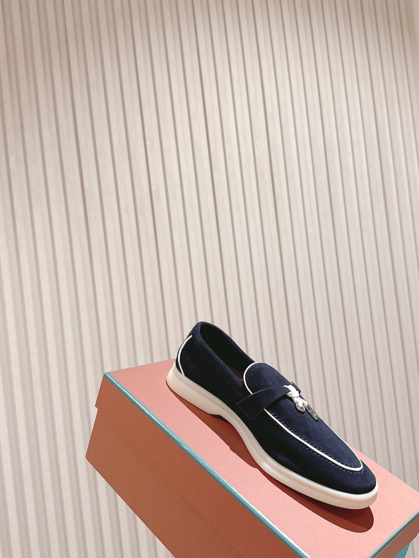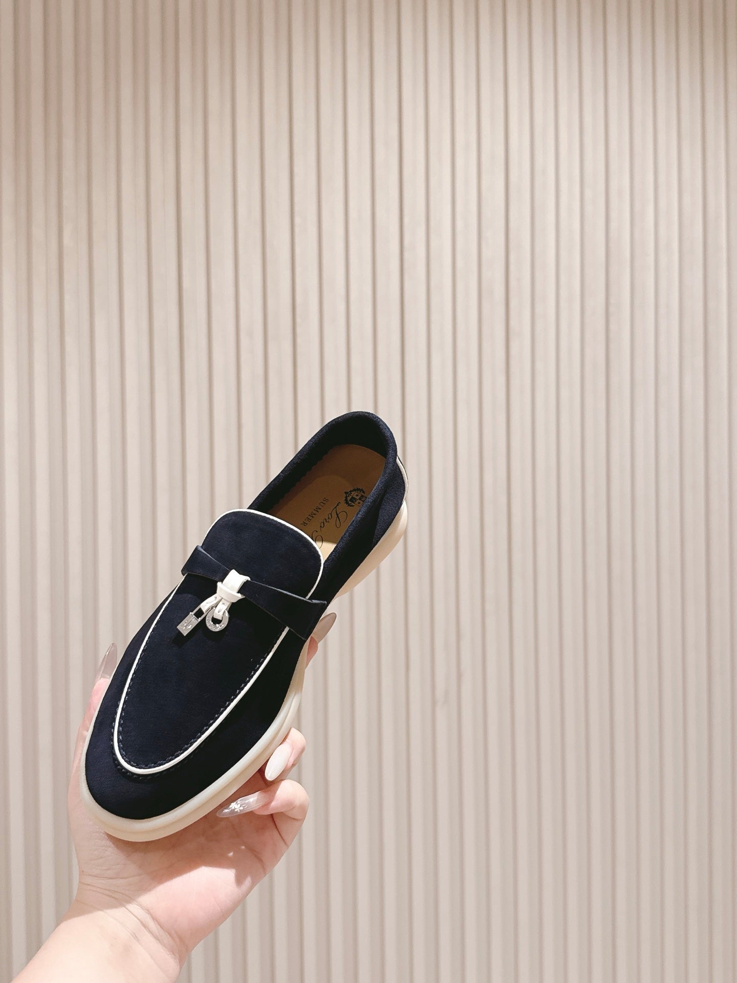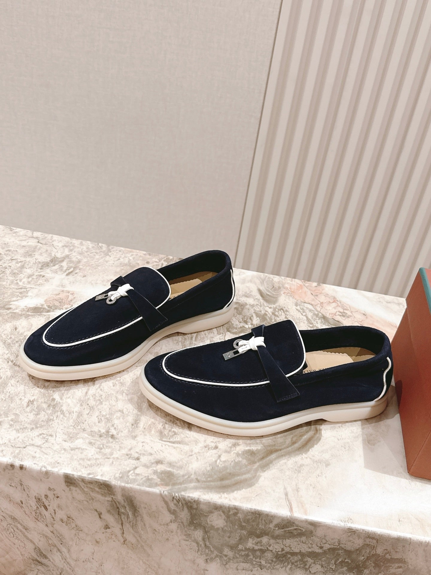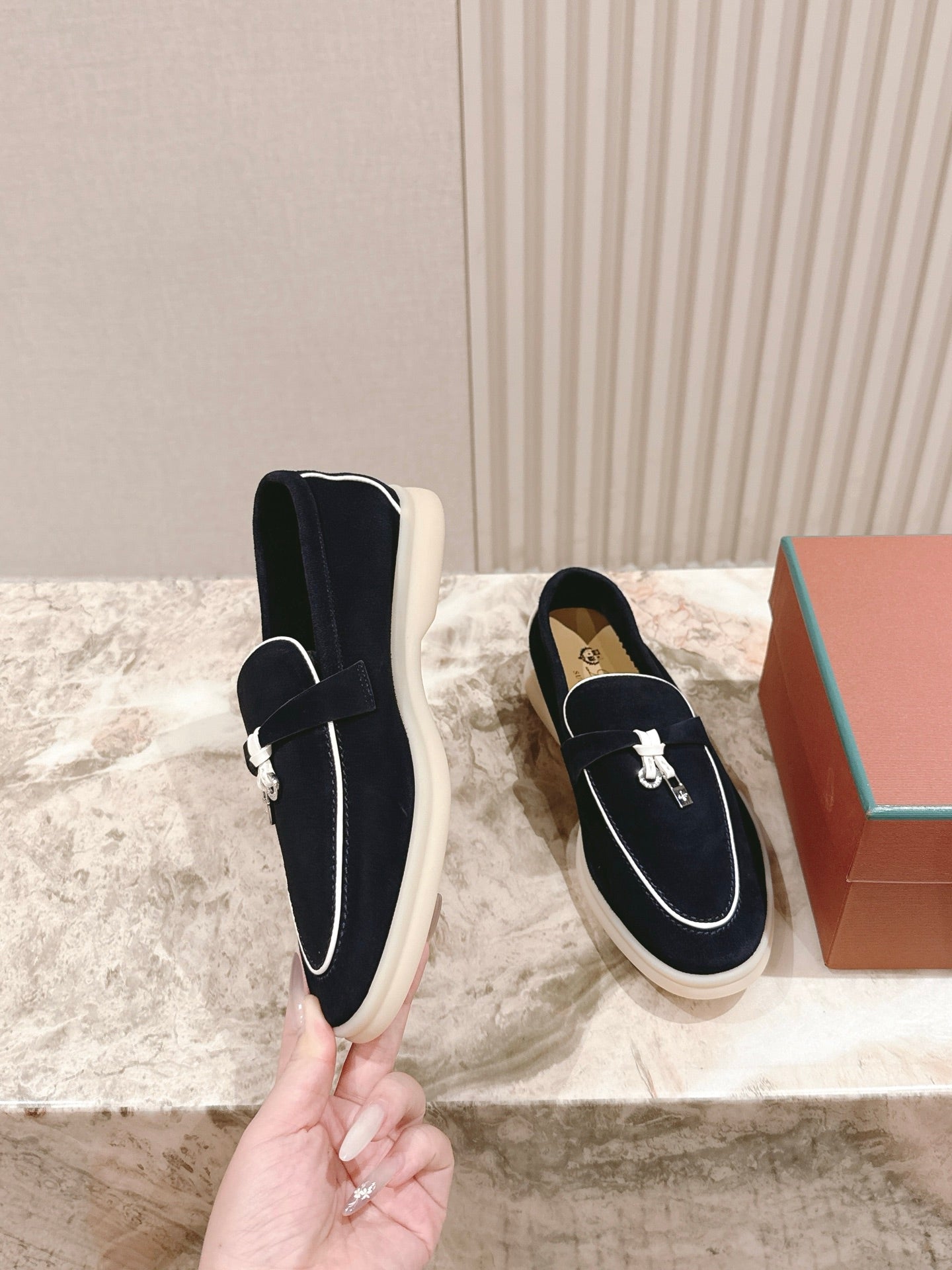 LP LOAFERS 25S IN CHARCOAL BLACK SUEDE WITH SILVER HARDWARE