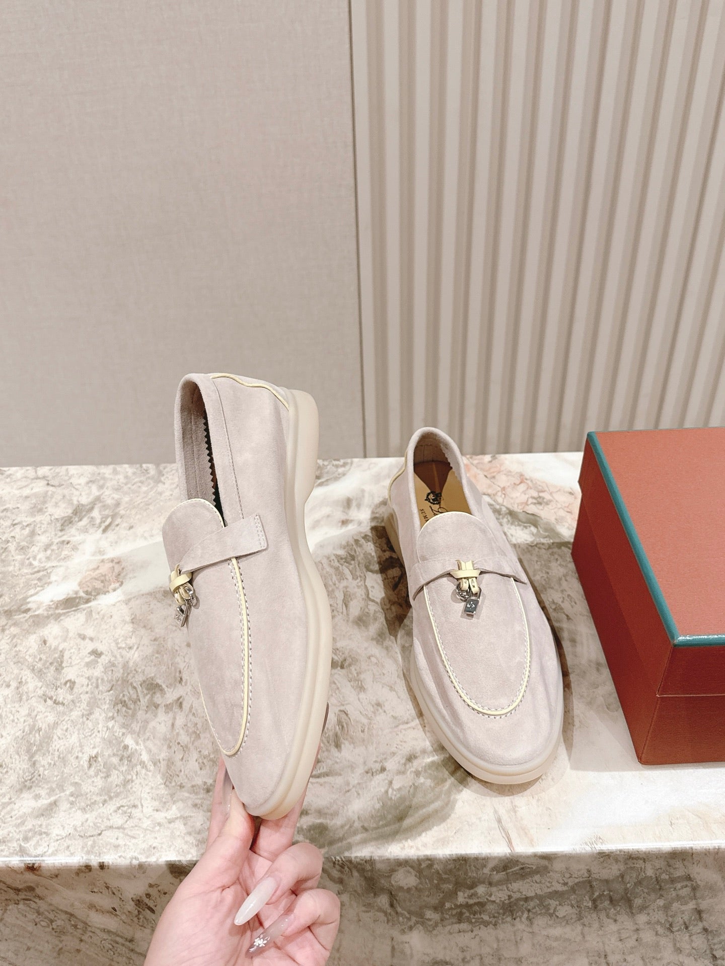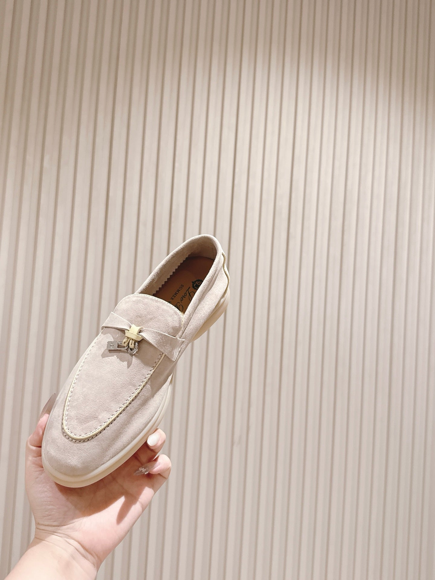 LP LOAFERS 25S IN DUSTY PINK SUEDE WITH SILVER HARDWARE