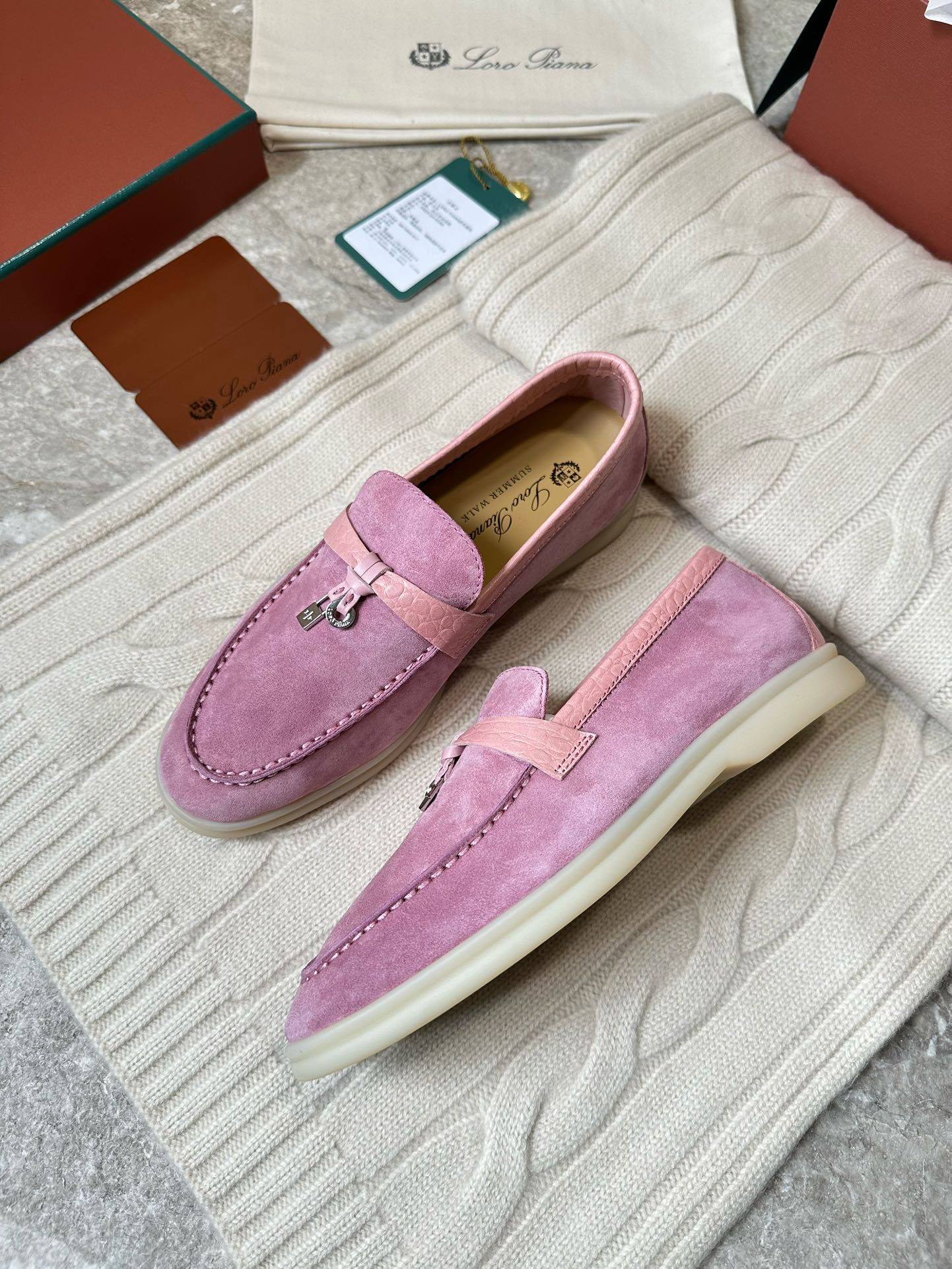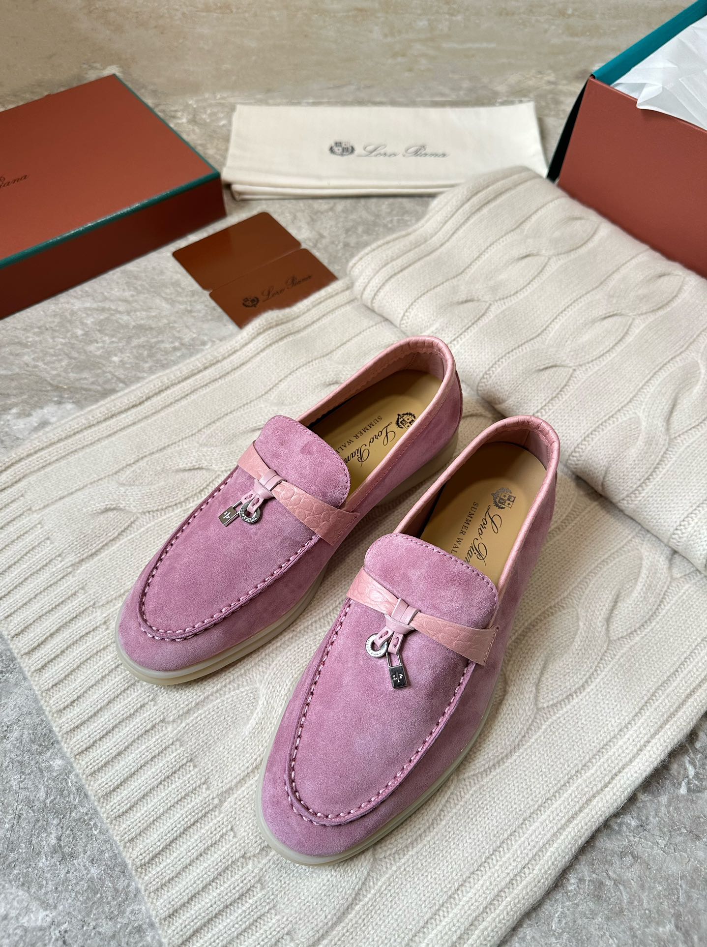 LP LOAFERS 25S IN MAUVE PINK SUEDE MIX LAMBSKIN