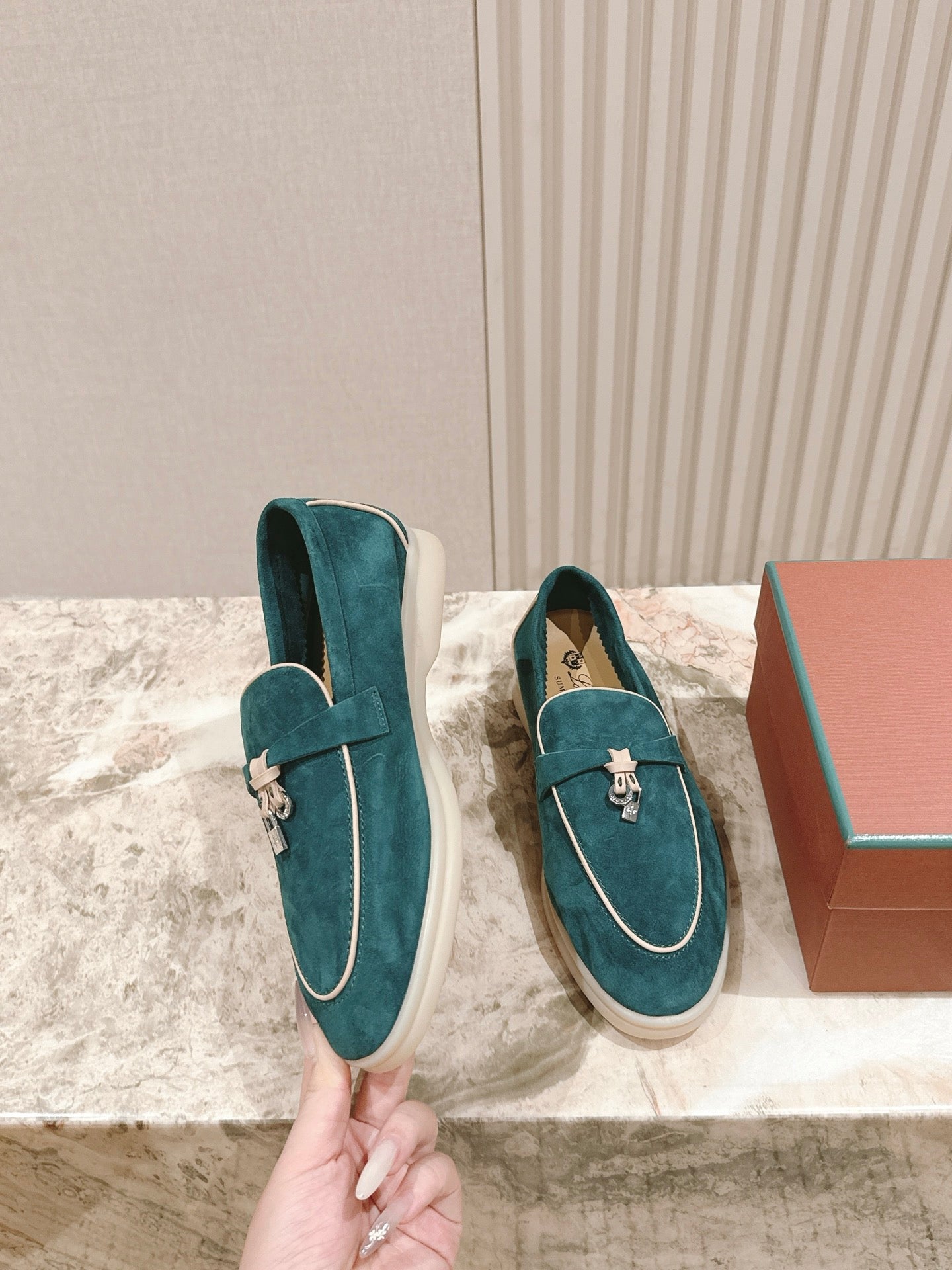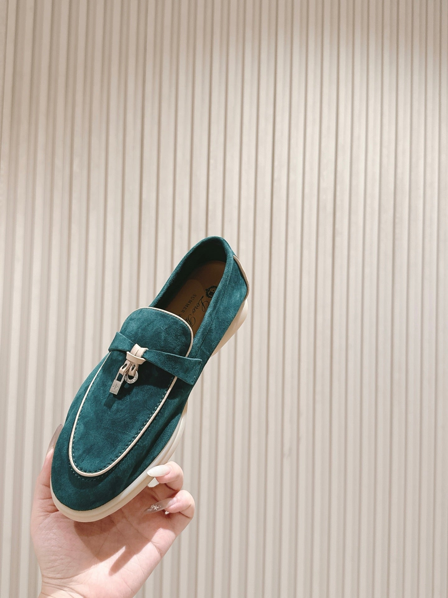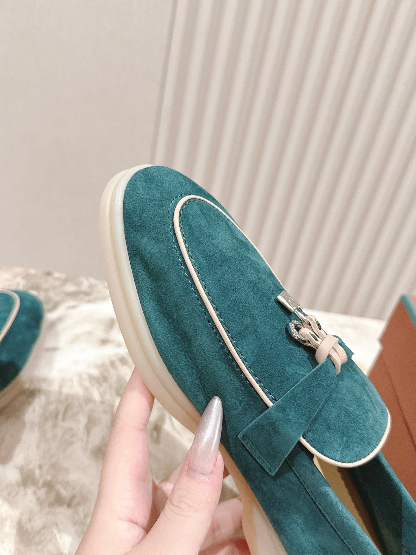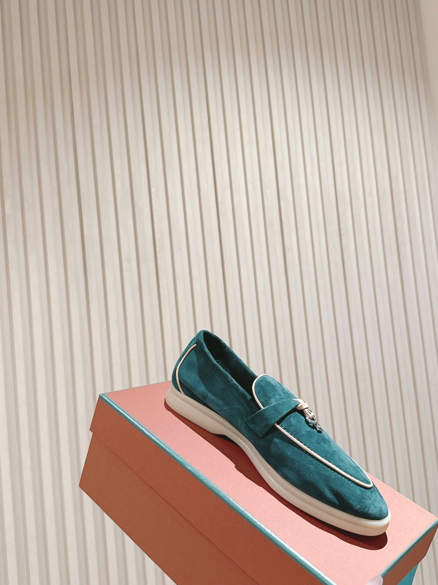 LP LOAFERS 25S IN OCEAN GREEN-BLUE SUEDE WITH SILVER HARDWARE