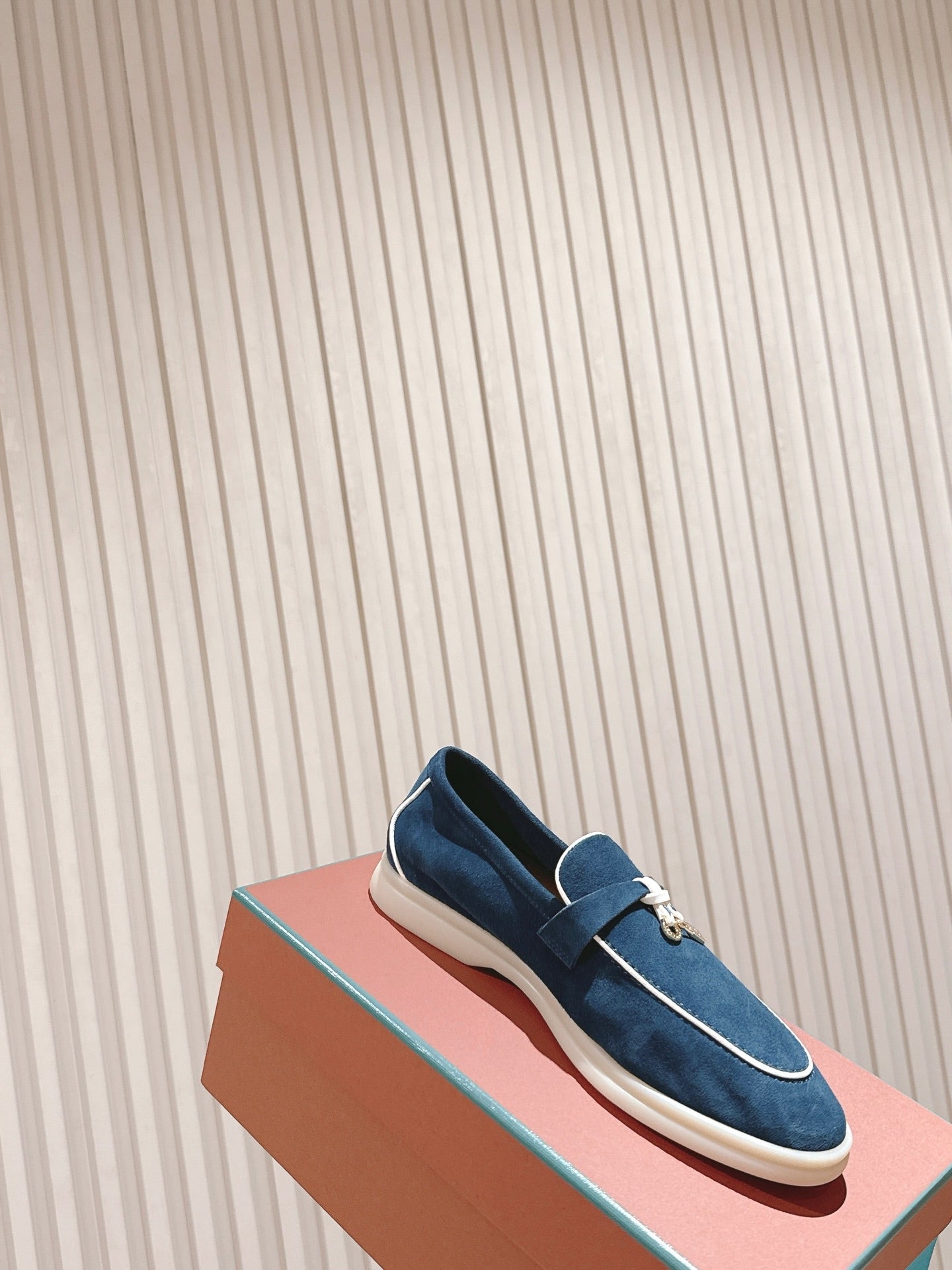 LP LOAFERS 25S IN STEEL BLUE SUEDE WITH SILVER HARDWARE