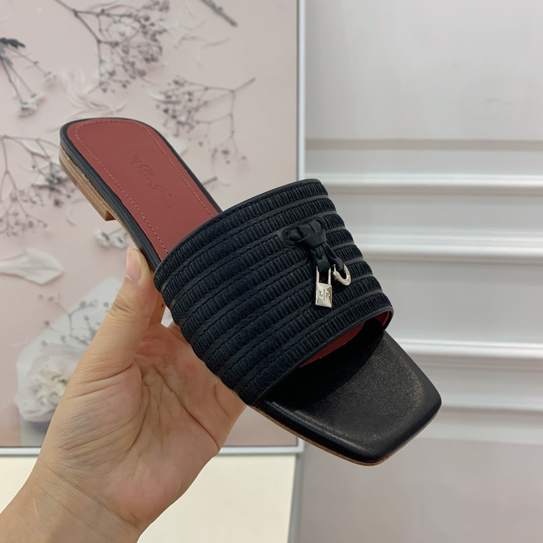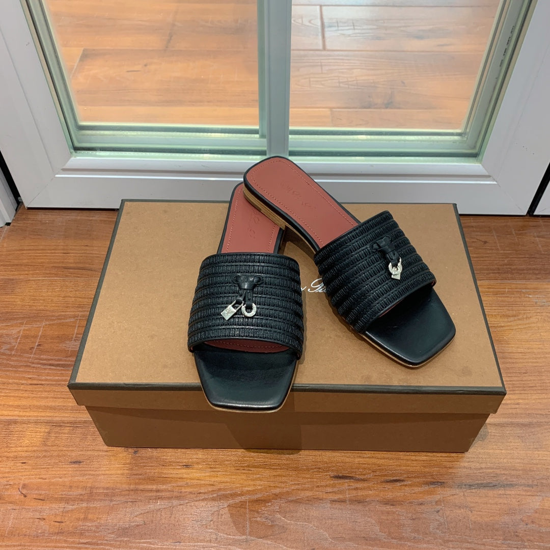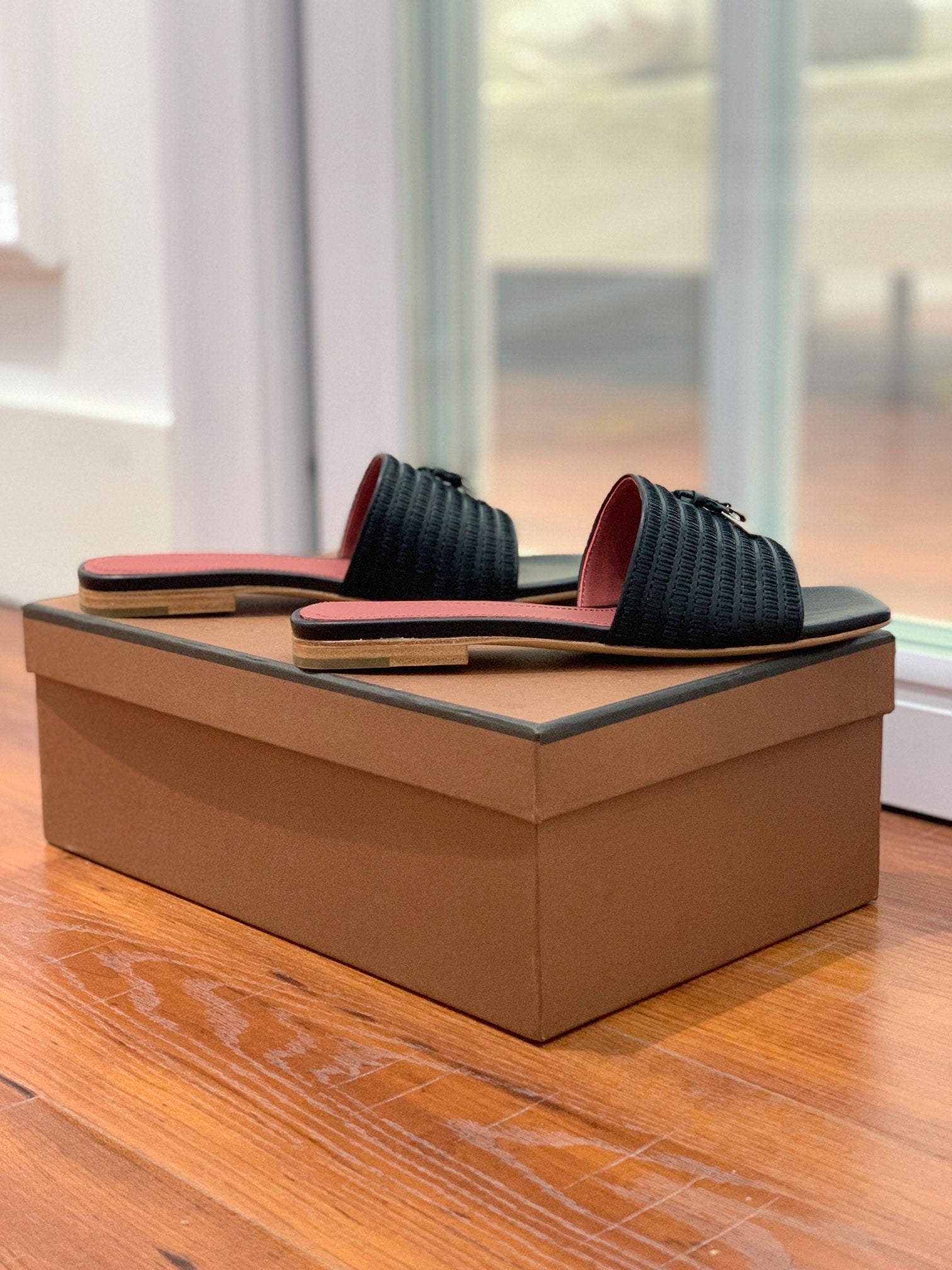 LP RAFFIA CHARMS FLATS SANDAL BLACK CALFSKIN