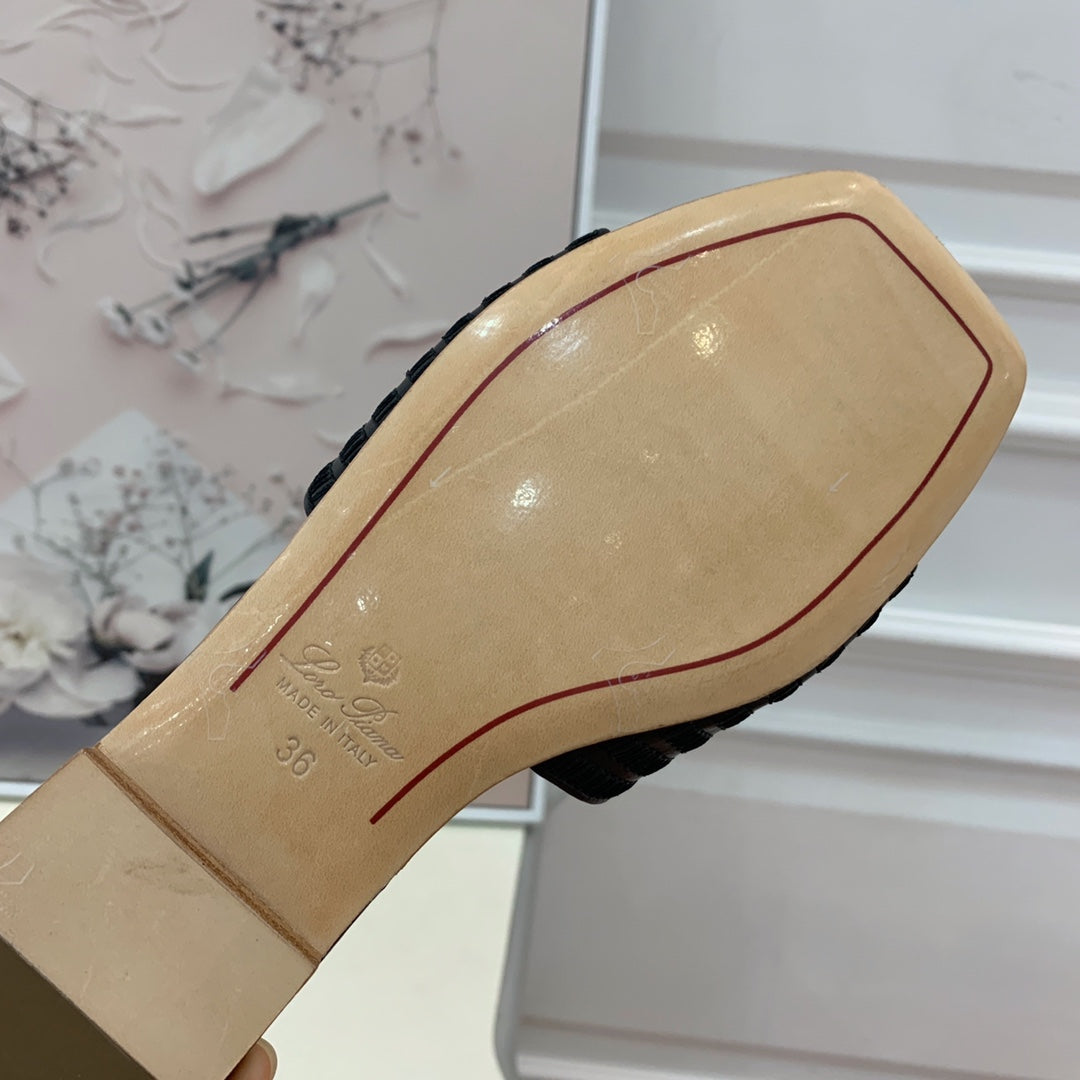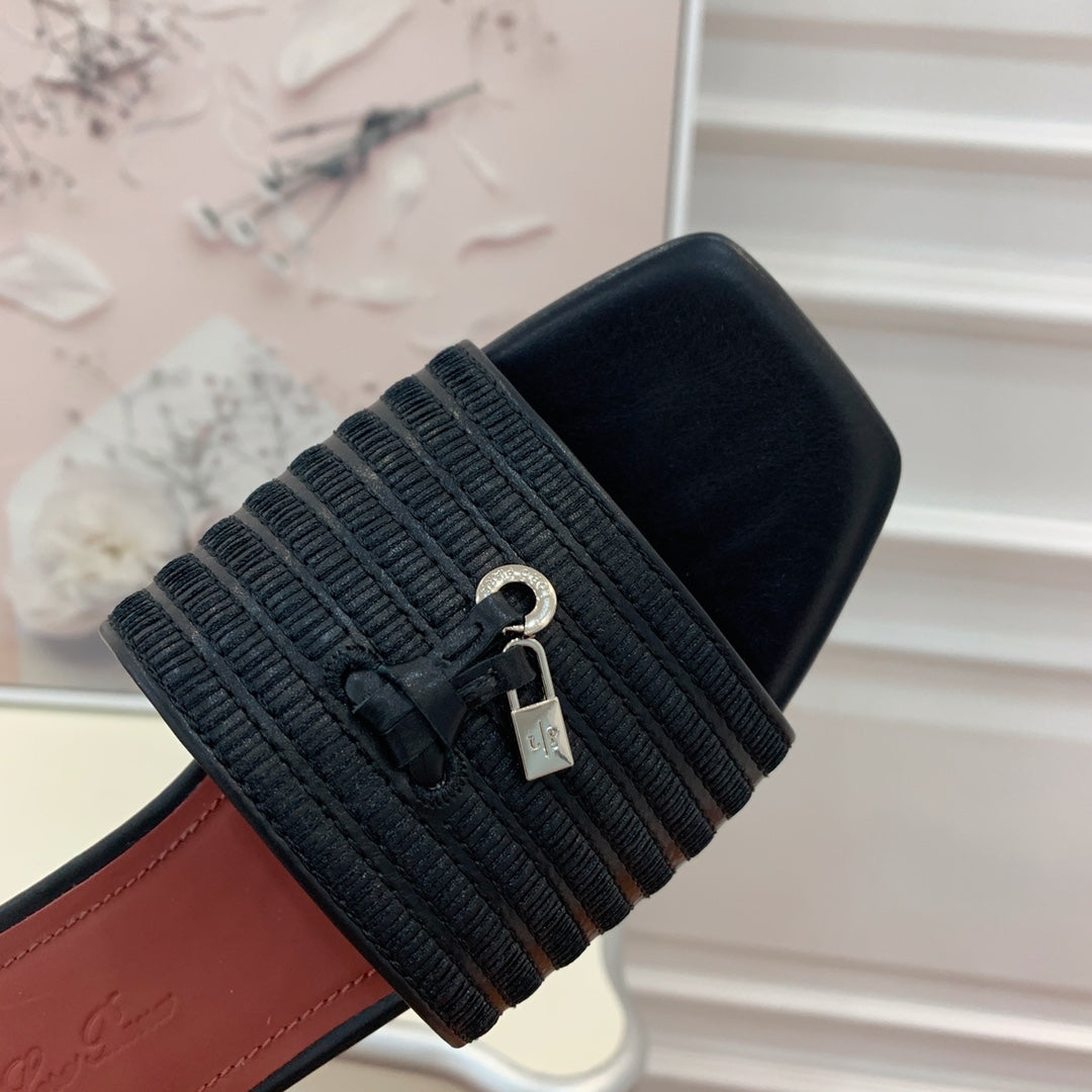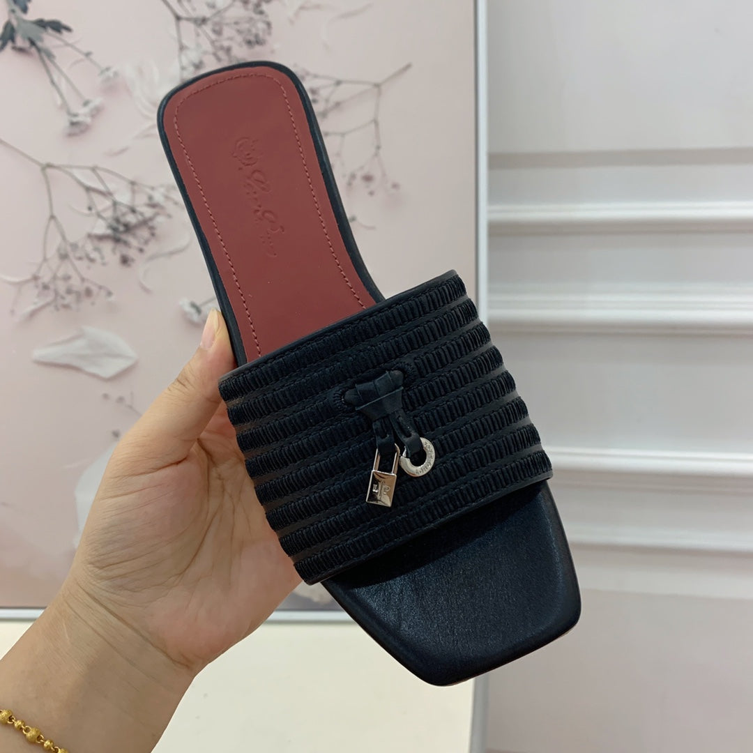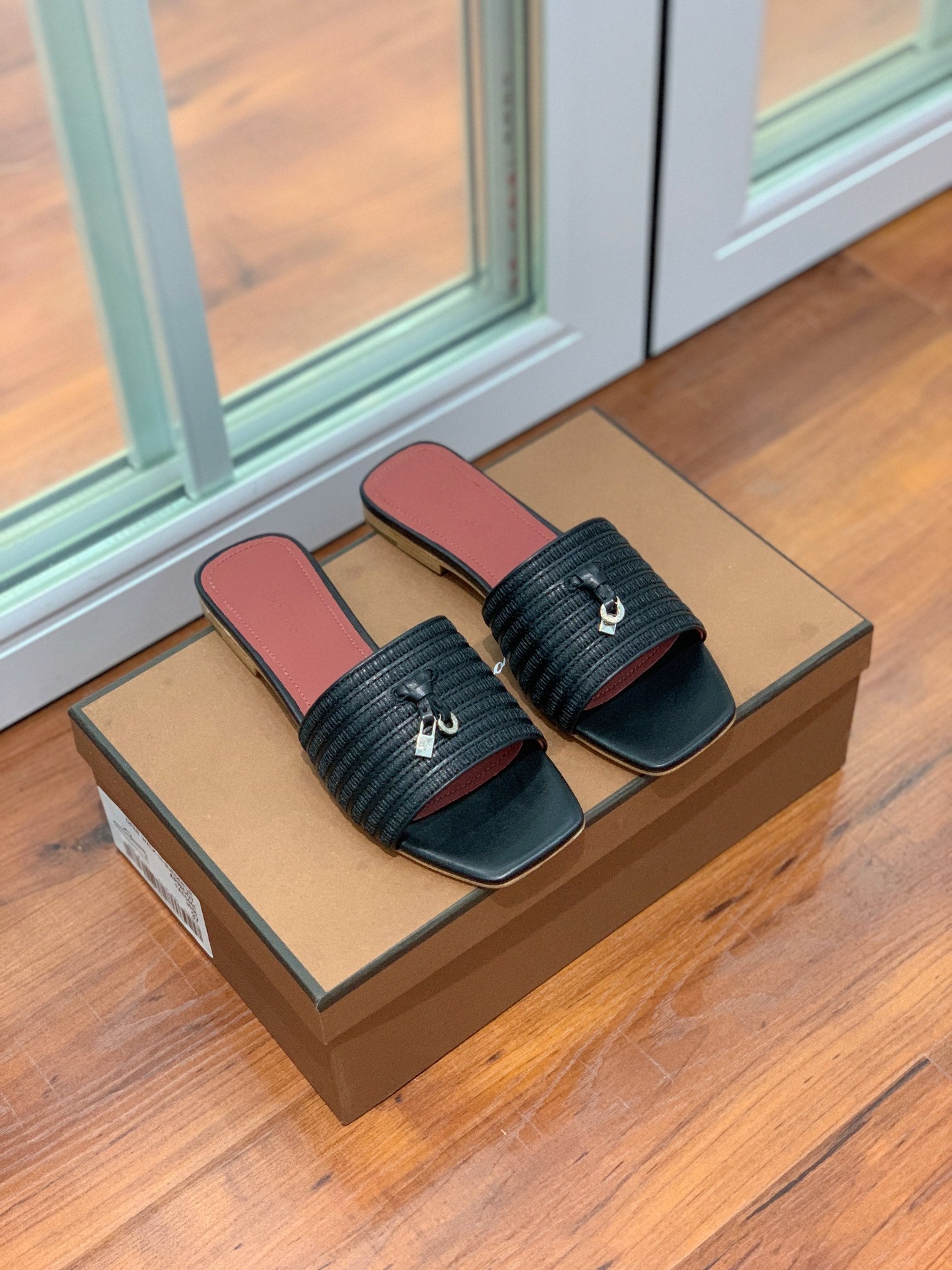 LP RAFFIA CHARMS FLATS SANDAL BLACK CALFSKIN