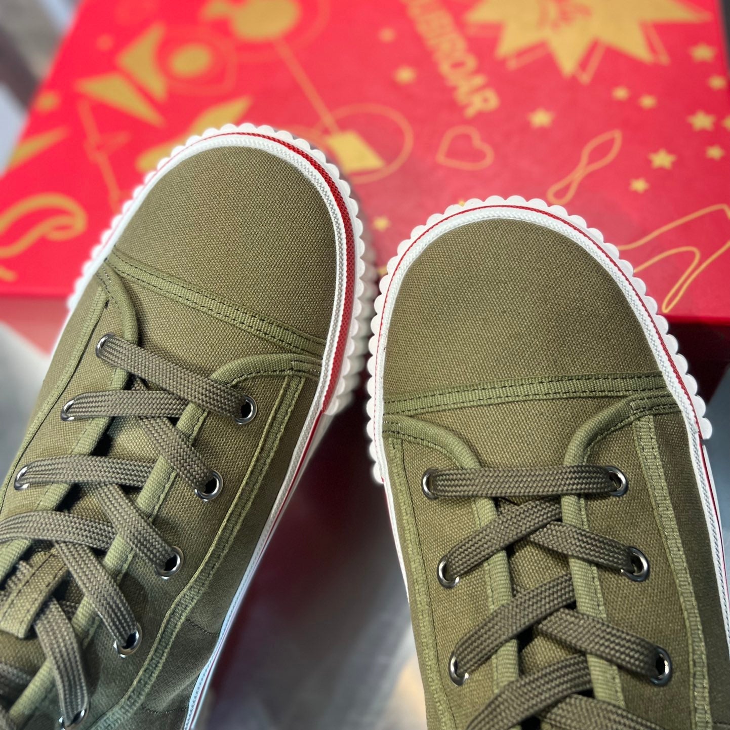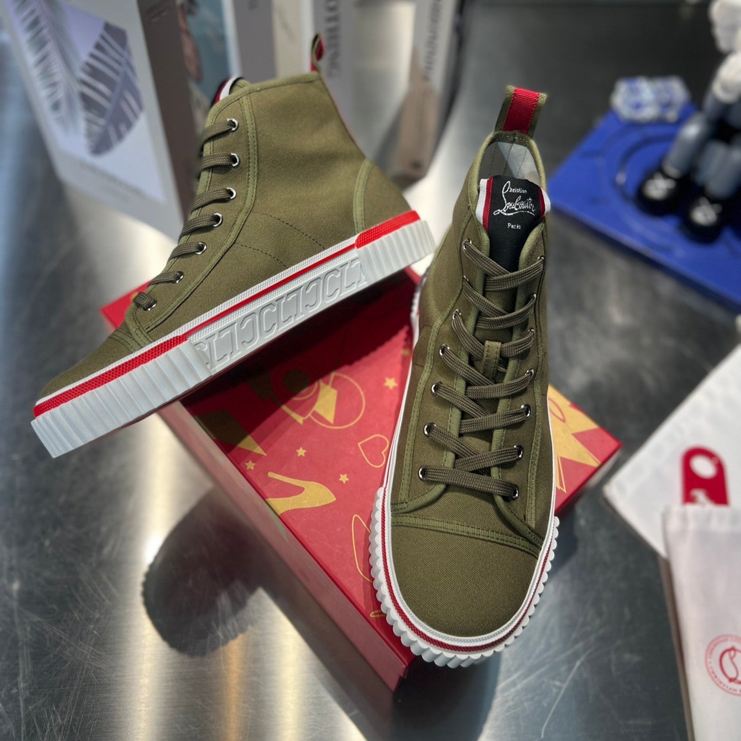 LUBOTING PEDRO HIGH-TOP SNEAKERS IN DARK GREEN MIX RED FABRIC