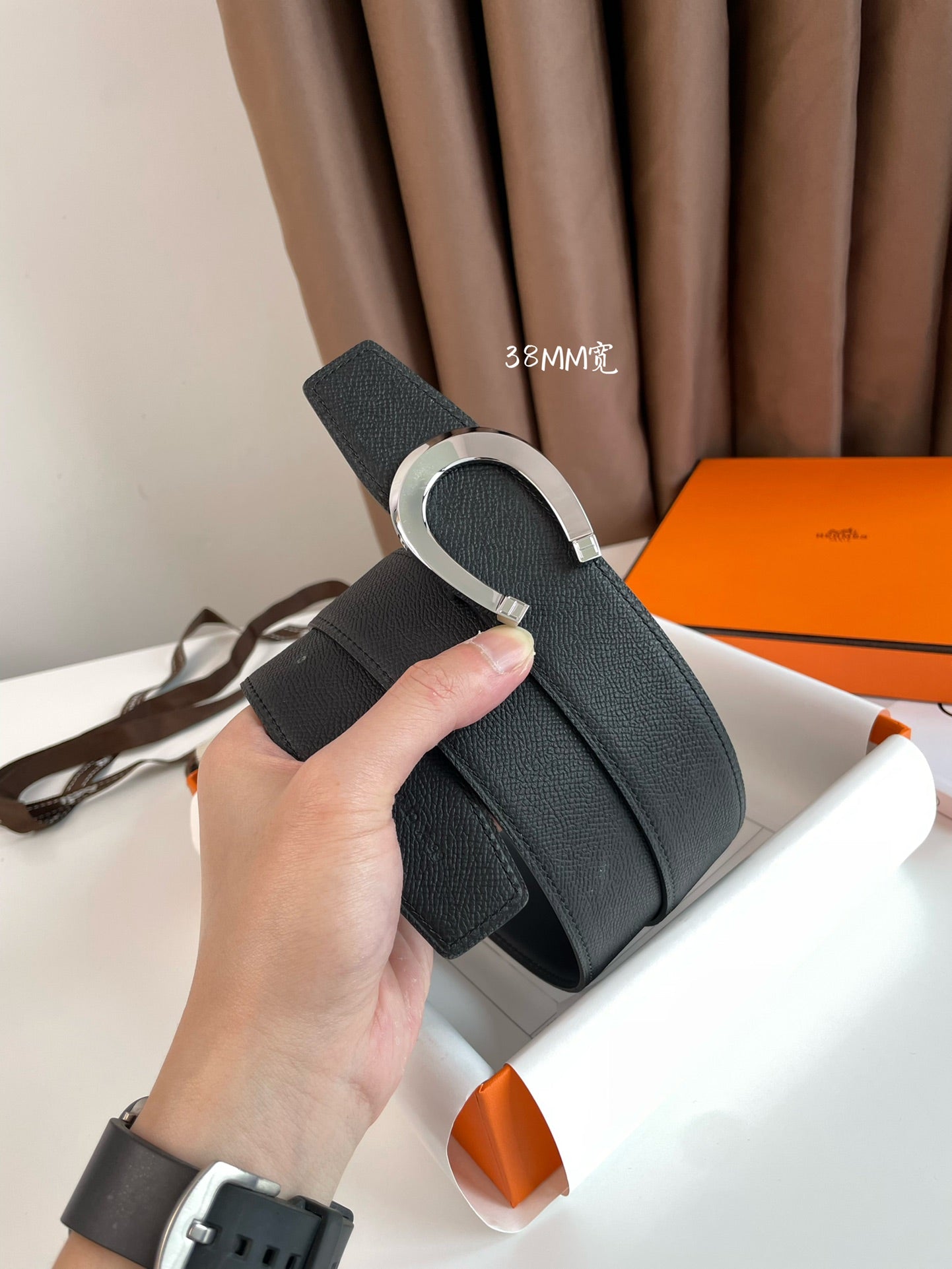 LUCK BELT BUCKLE & REVERSIBLE BLACK LEATHER STRAP 38MM SILVER HARDWARE