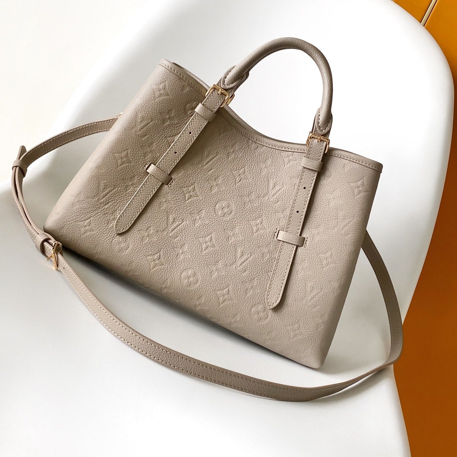 LV 25S BABYLONE TOTE BAG 32 IN TOURTERELLE GREY CALFSKIN GOLD HARDWARE
