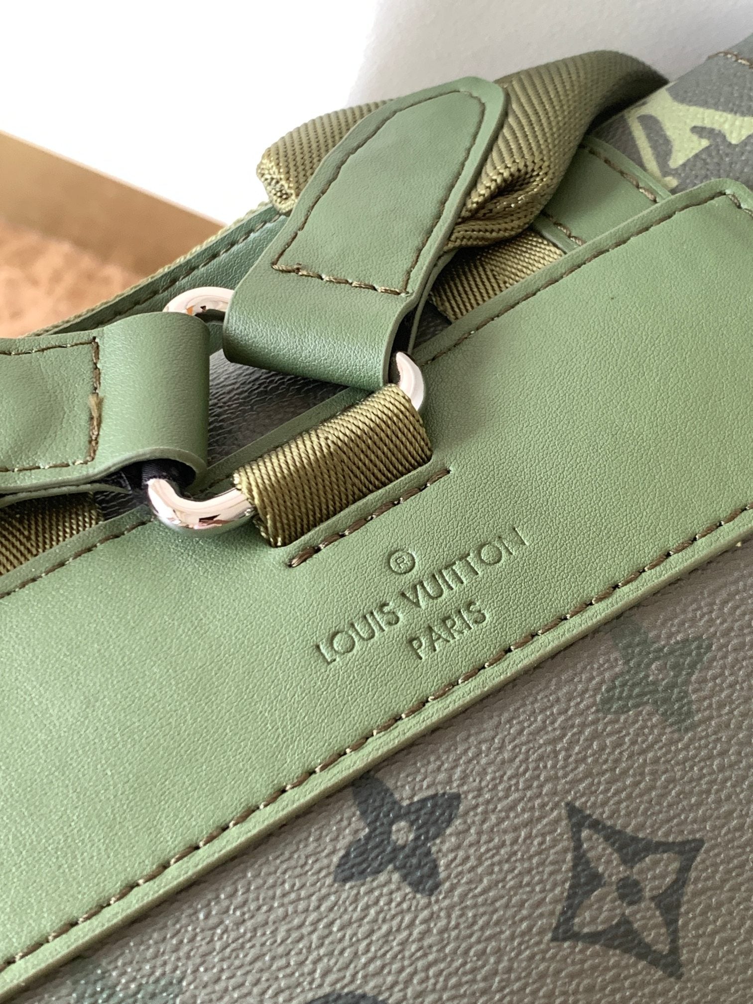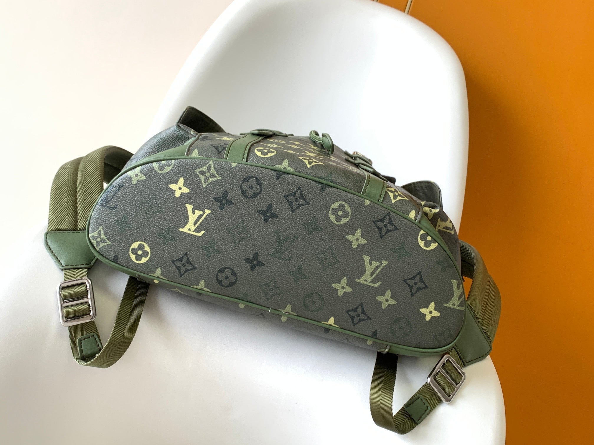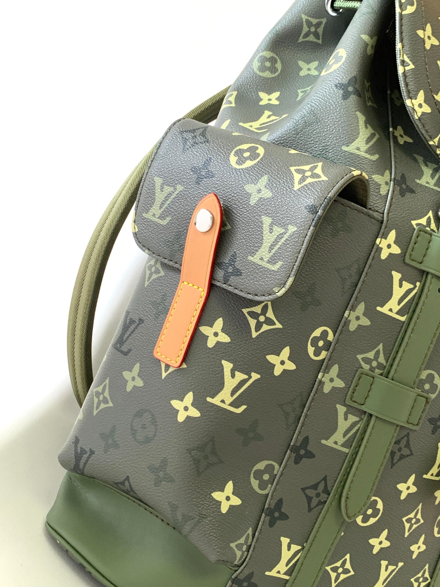 LV 25S CHRISTOPHER BACKPACK 48 IN ARMY GREEN CALFSKIN SILVER HARDWARE