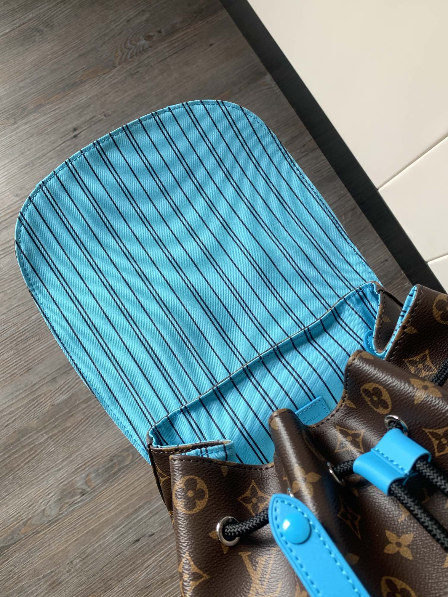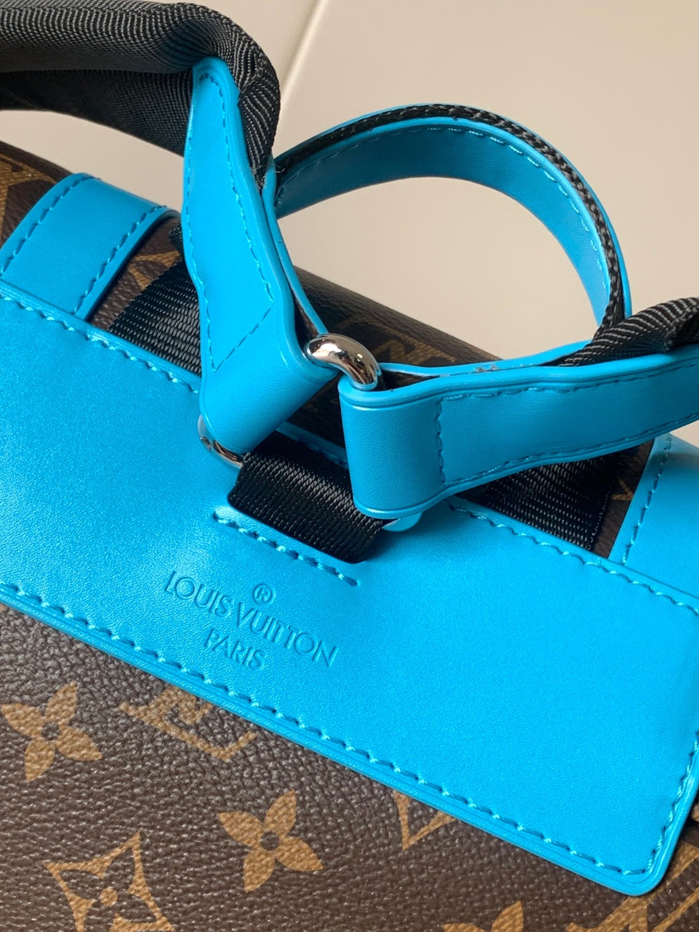 LV 25S CHRISTOPHER BACKPACK 48 IN BROWN AND CAPRI BLUE CANVAS MONOGRAM