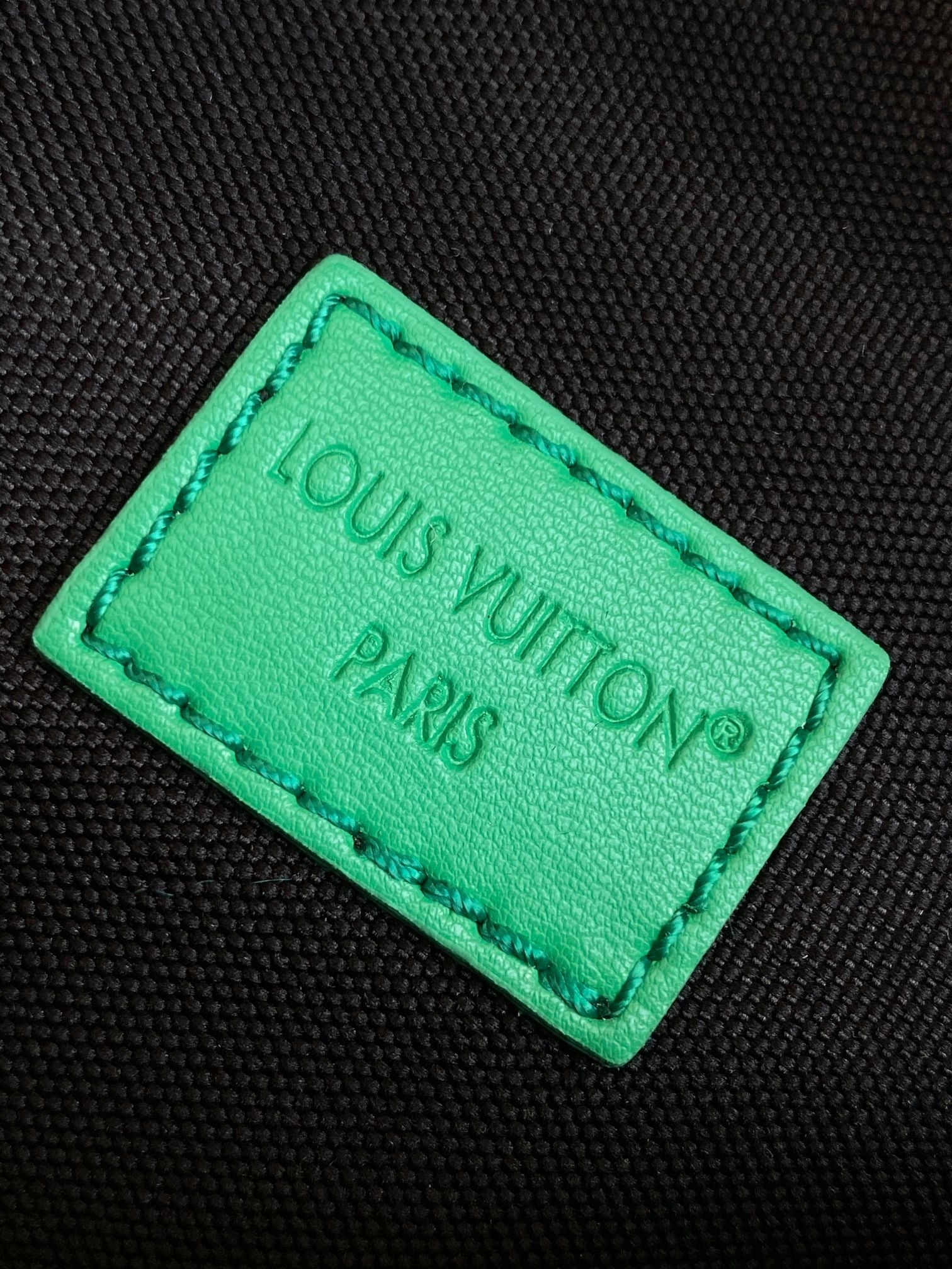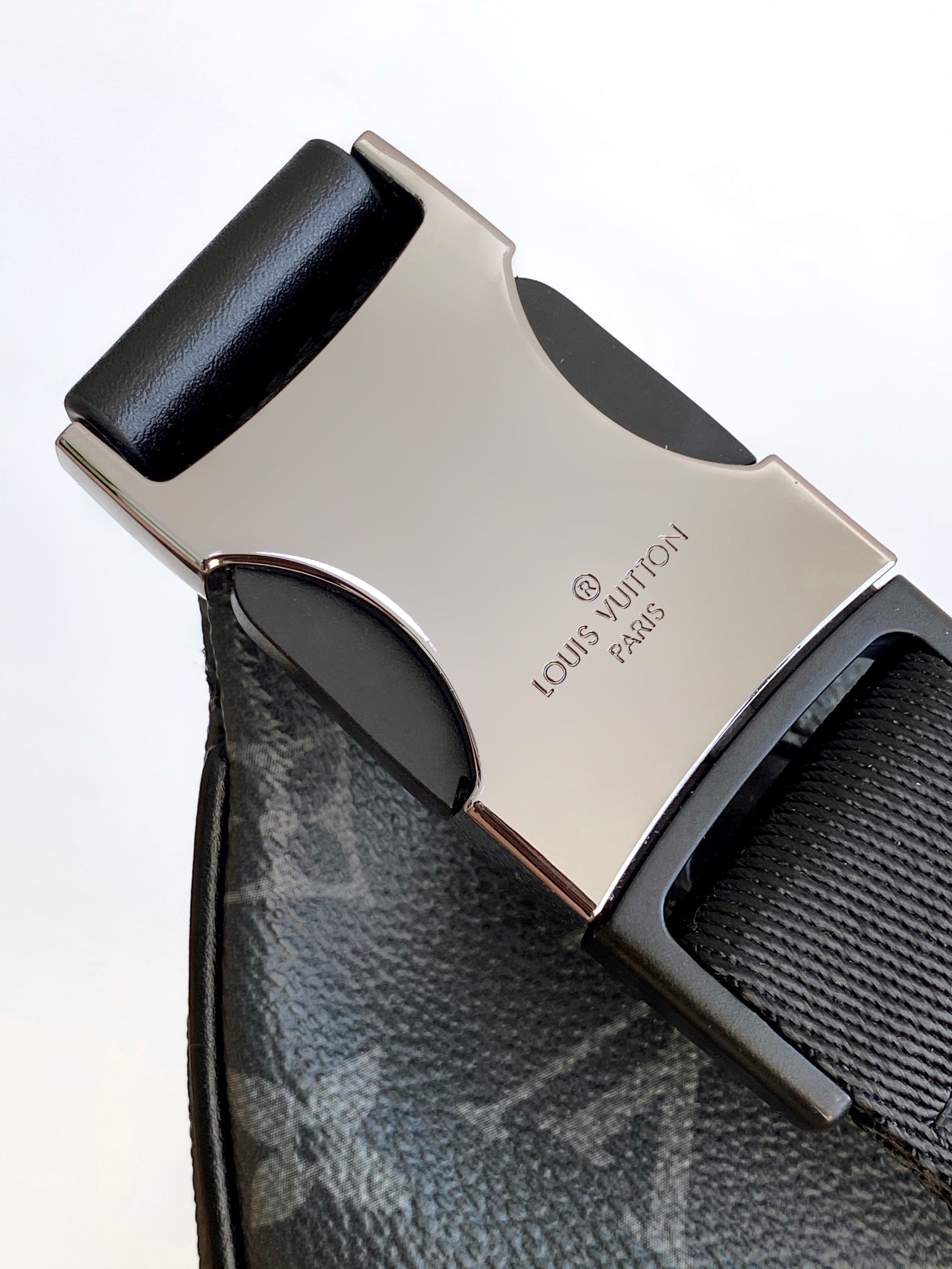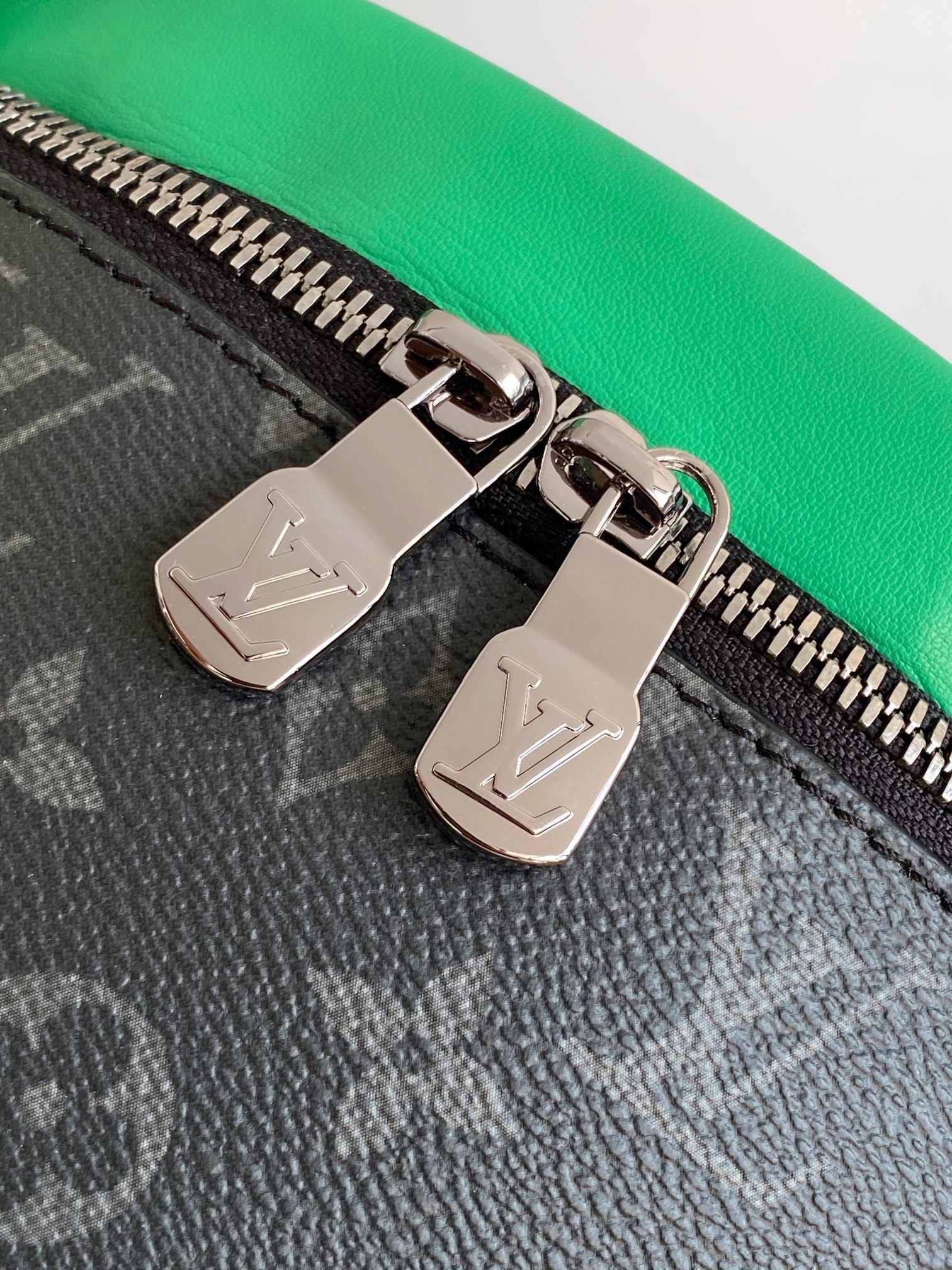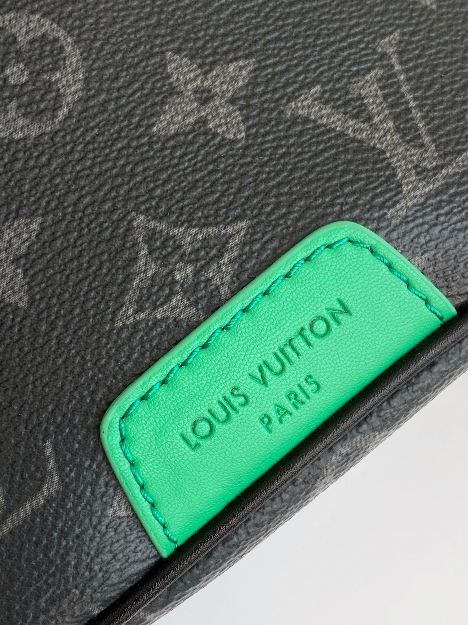 LV 25S DISCOVERY BUMBAG 44 IN BLACK NEON JADE MONOGRAM ECLIPSE CANVAS AND CALFSKIN