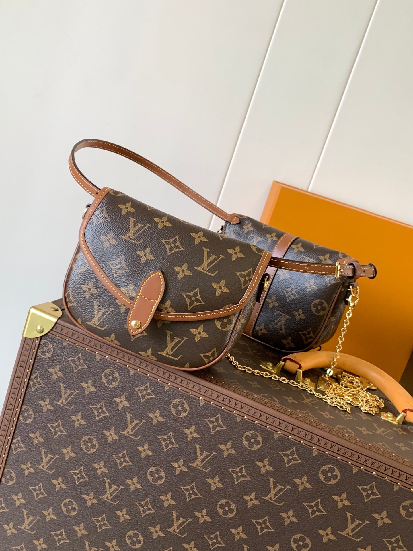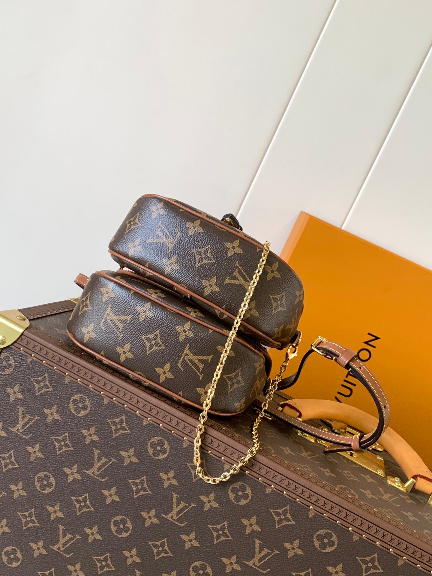 LV 25S DUO BB BAG 19 IN BROWN MONOGRAM COATED CANVAS AND CALFSKIN