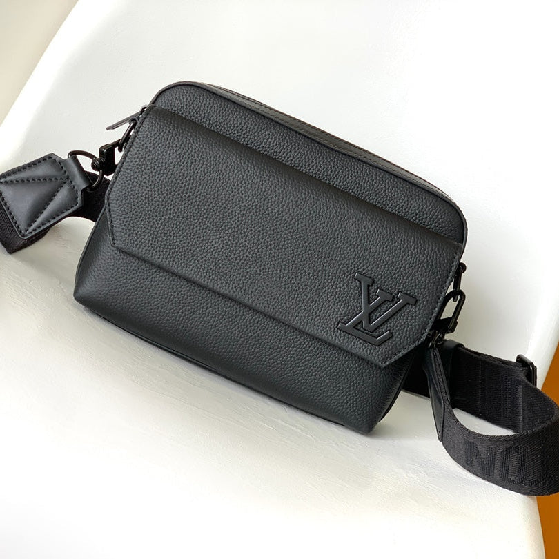 LV 25S FASTLINE MESSENGER BAG 23 IN BLACK CALFSKIN